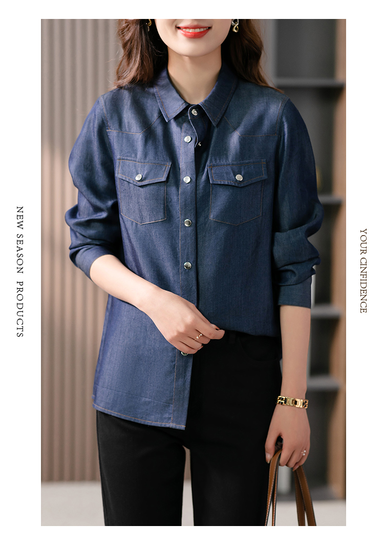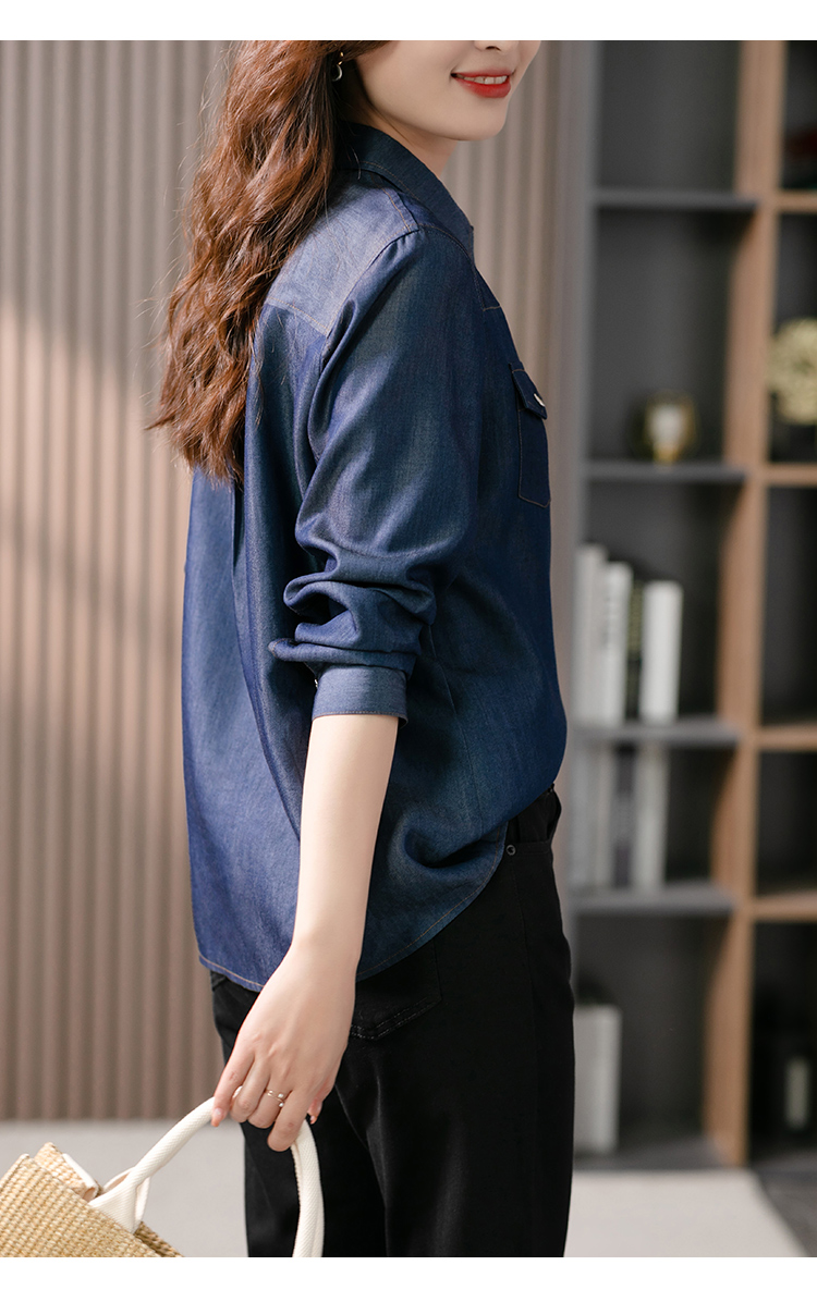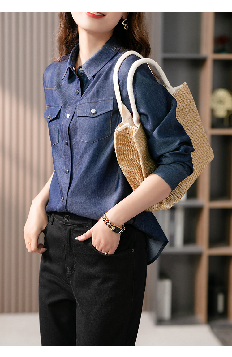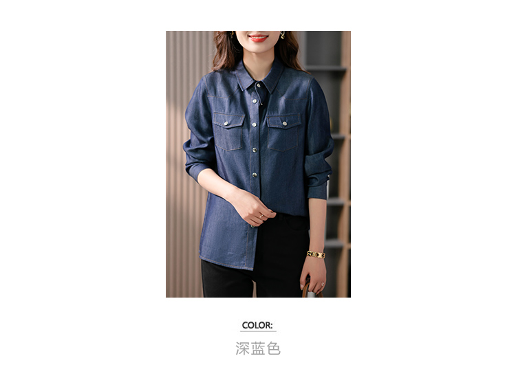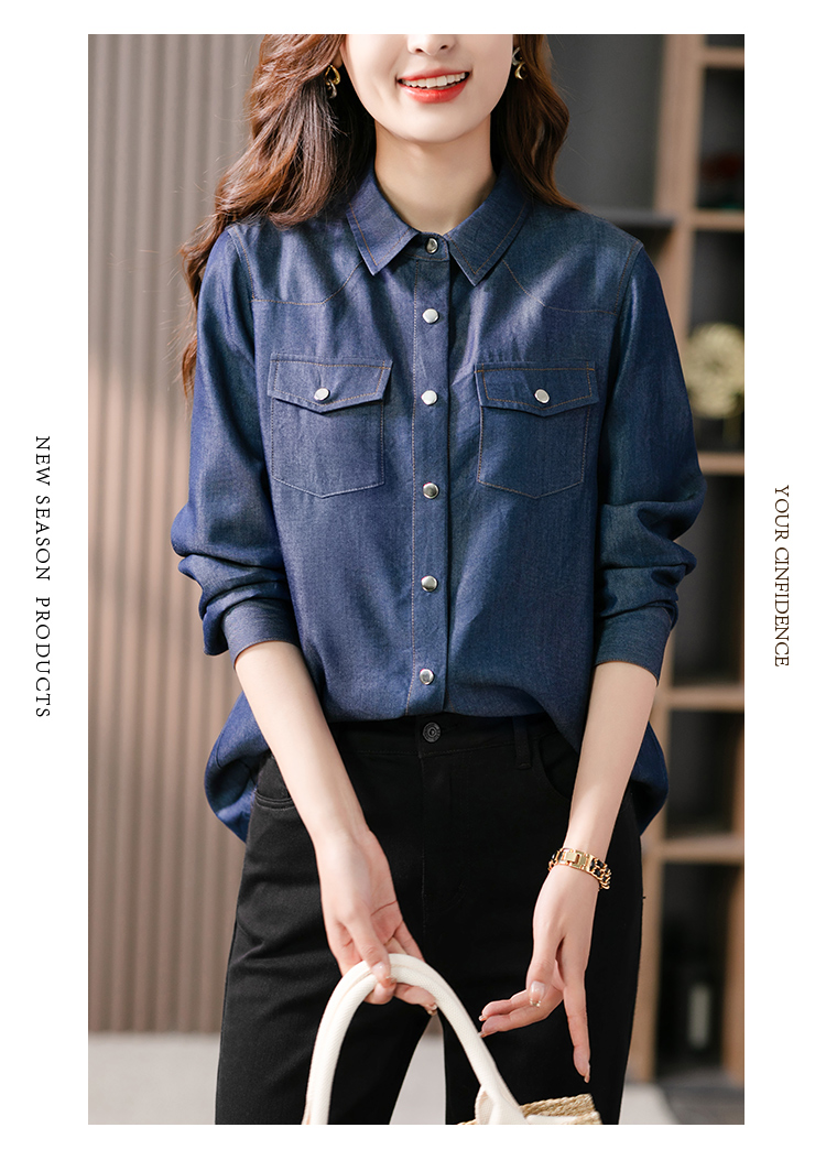 87283原形法式复古天丝牛仔衬衫女2024春季新款韩版时尚内搭小个子上衣