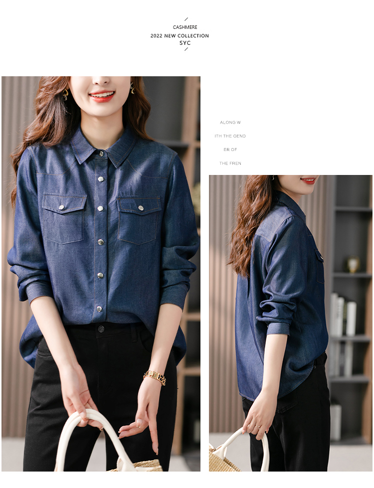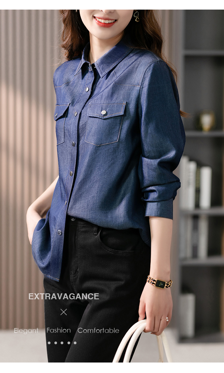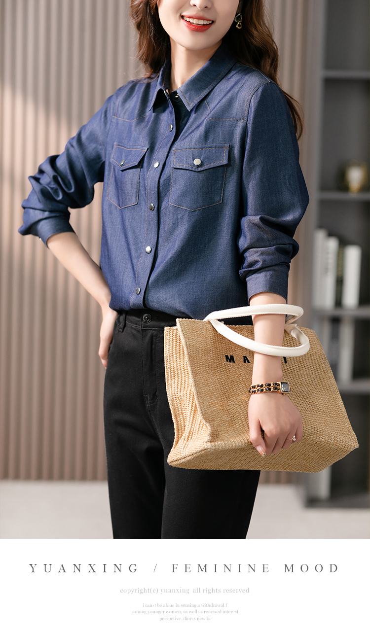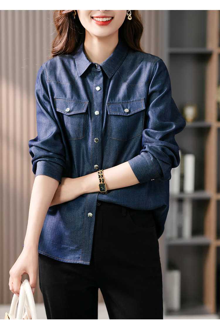 87283原形法式复古天丝牛仔衬衫女2024春季新款韩版时尚内搭小个子上衣