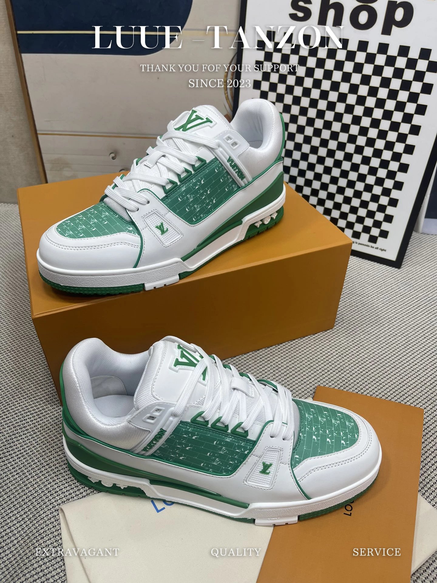 鞋面由意大利进口小牛皮拼接,侧边饰有品牌LOGO标志及签名,进口了透气网布内里,脚感超舒适。原厂原版双色TPU吸模大底。套包工艺 固特异缝合锁边