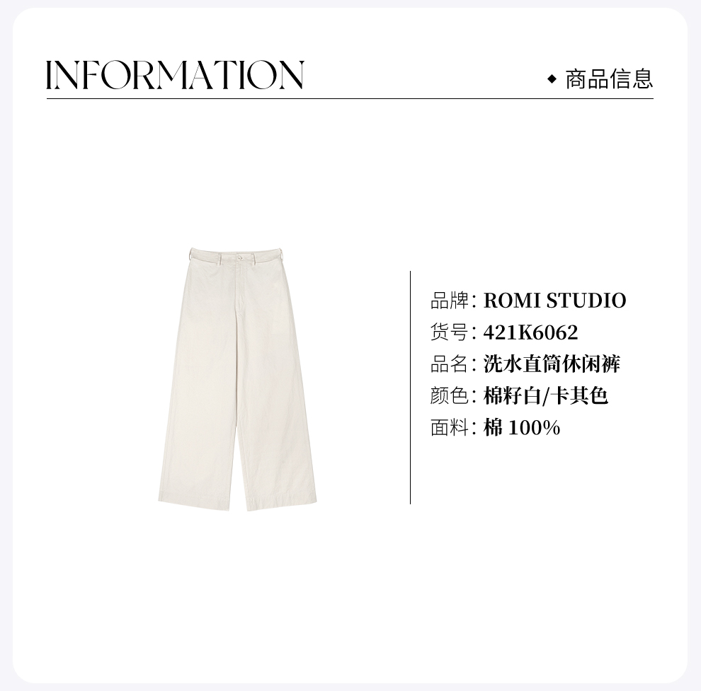 ROMI STUDIO “自在分寸” 100%洗水棉重酵洗水直筒休闲裤 421K6062