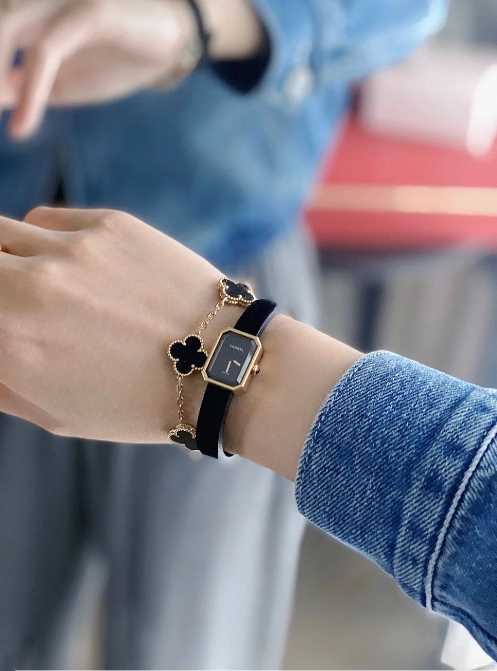 香奈儿Chanel黑金小方糖女士石英腕表