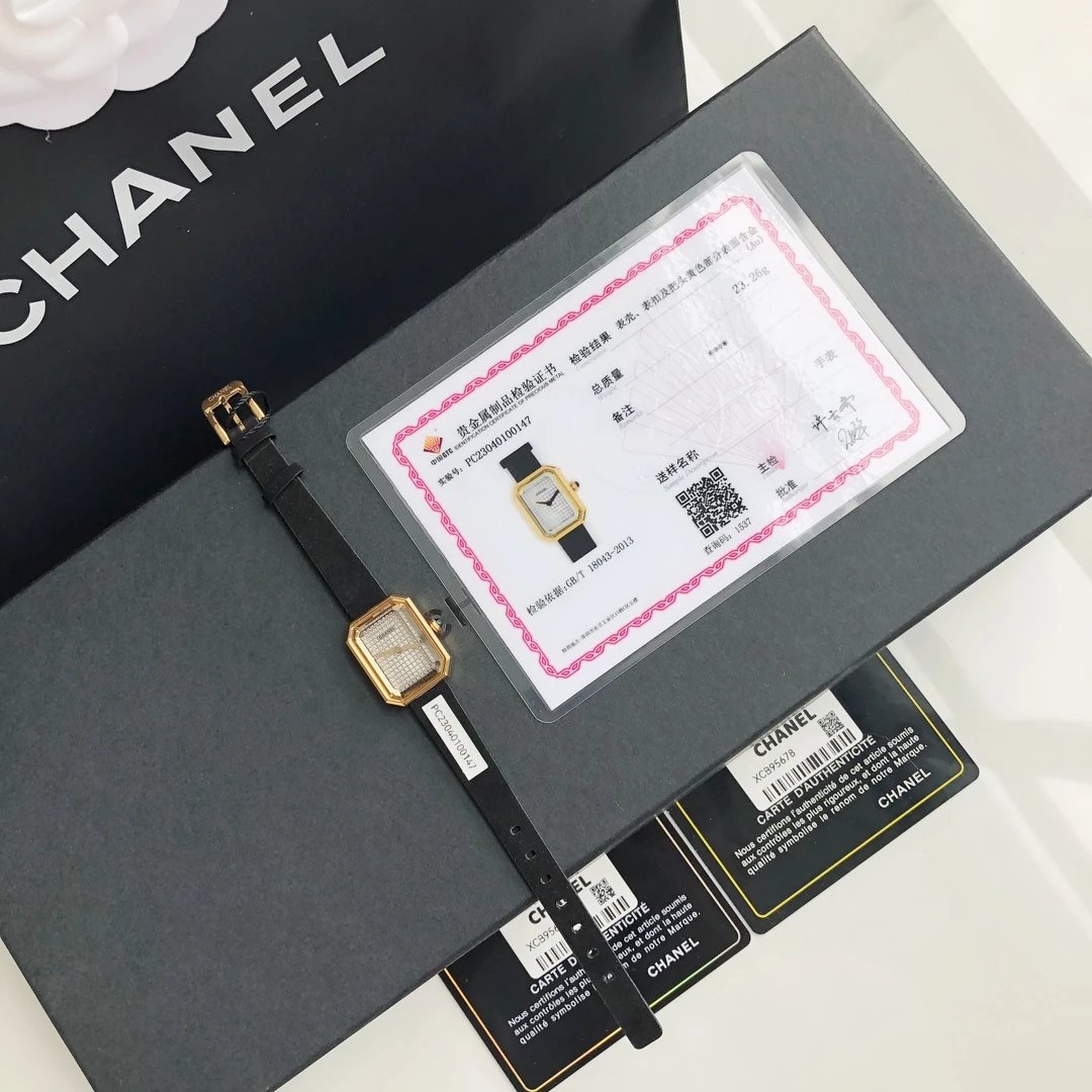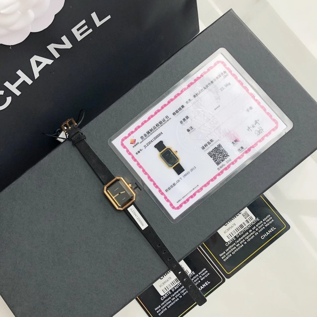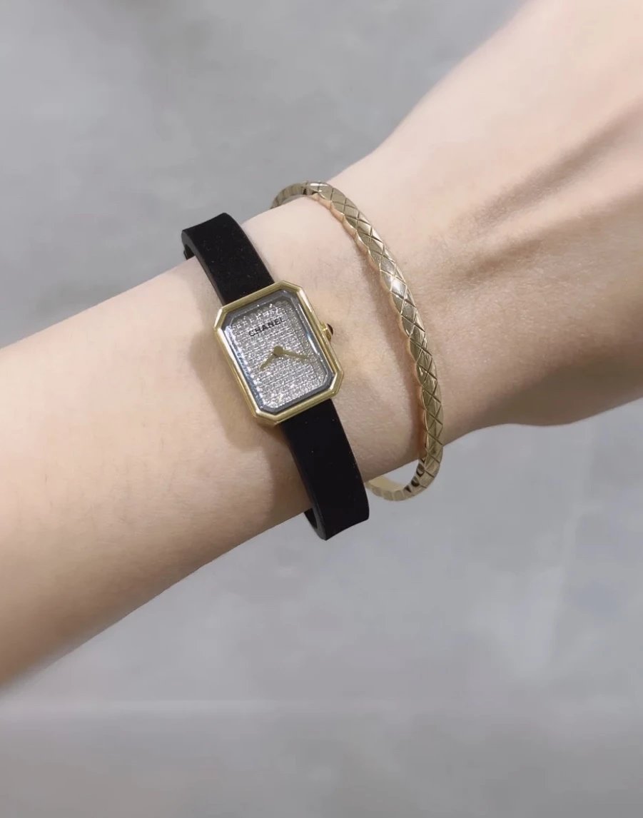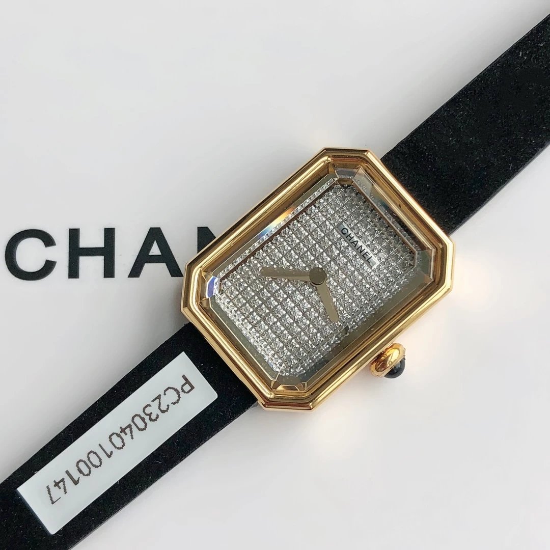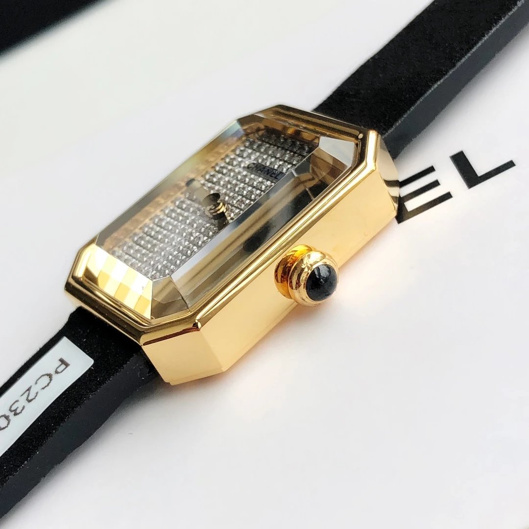 真正18k包金工艺,配备国检证书,一表一码,支持复检!表壳和表扣采用的炉内真空镀金技术,整面18K金覆盖厚度为8咪,腕表尺寸19.7✖️15.2mm.搭载进口原装石英机芯,方形多边形大切边蓝宝石玻璃镜面,钻石切割工艺,始终保持无痕清透,搭配丝绒质感橡胶表带,上手柔软舒适,质感上佳。这款腕表是coco邀请好莱坞女星GretaGarbo设计,作为香奈儿的第一款腕表,非常具有premiere(首次露面)的意义,表壳配八角形蓝宝石玻璃的灵感来源于N°5香水的瓶盖以及coco家附近的巴黎芳登广场,因为这个外形很像方糖也被大家称之为方糖腕表。就是一款你穿什么衣服戴它都立刻提高时尚度的腕表。中古表里的万人迷复古优雅,表盘上没有秒针没有数字也没有时标让你随心感觉时间,与众不同为各种造型平添前卫时尚感。