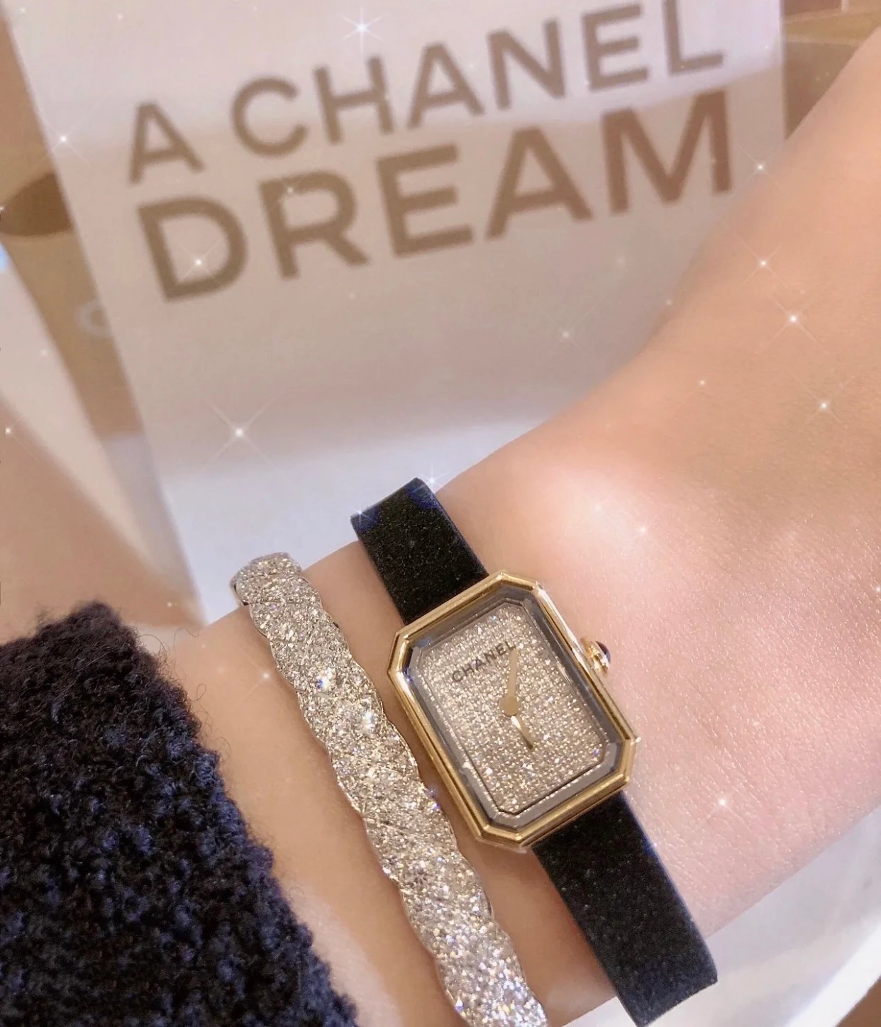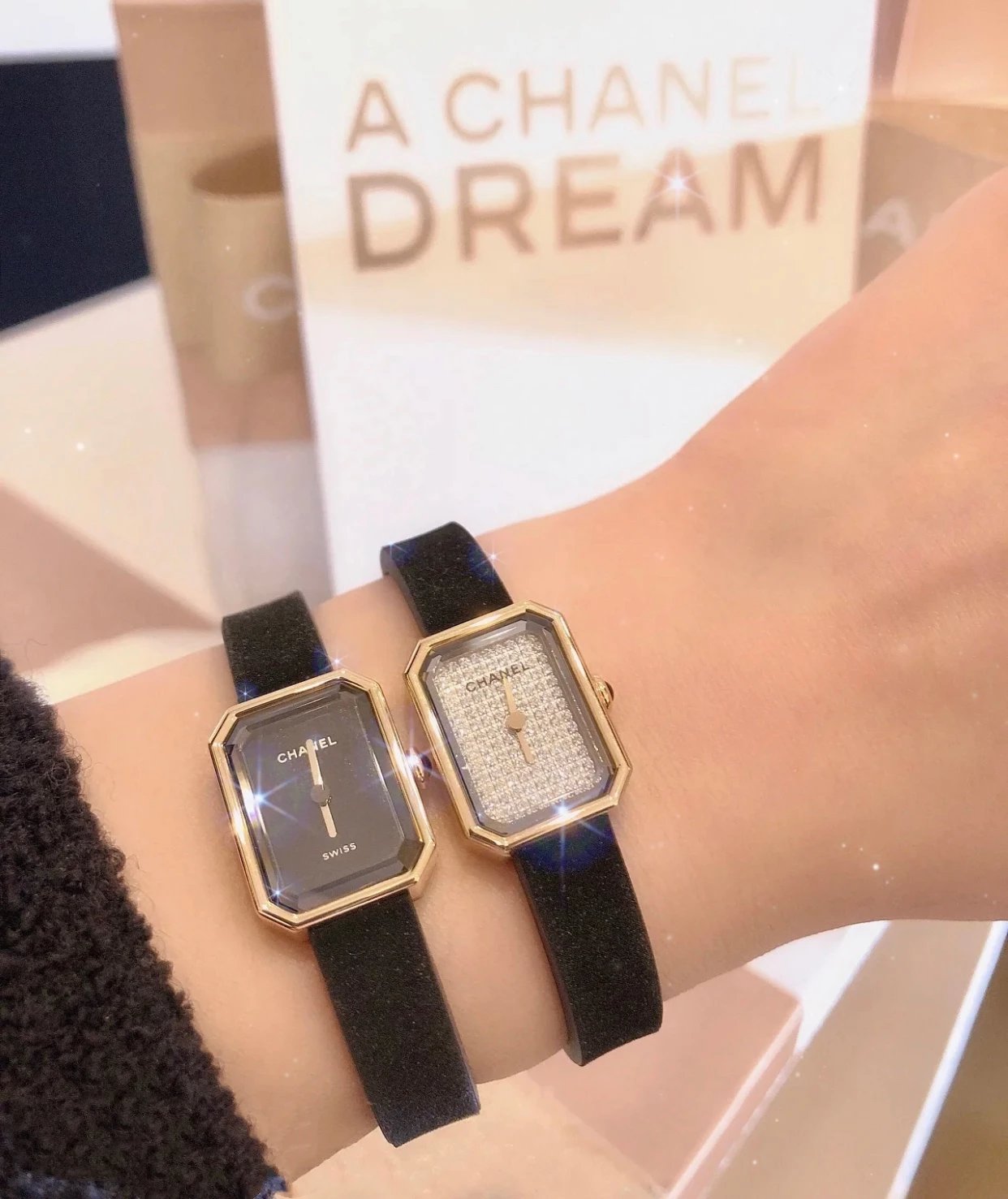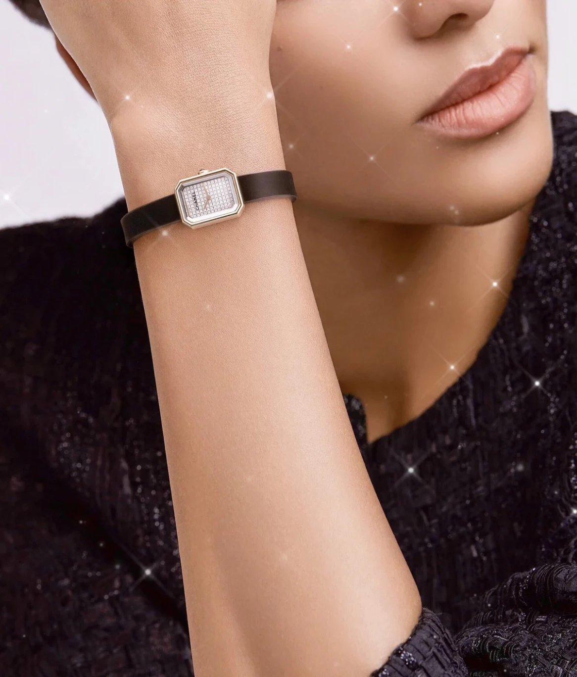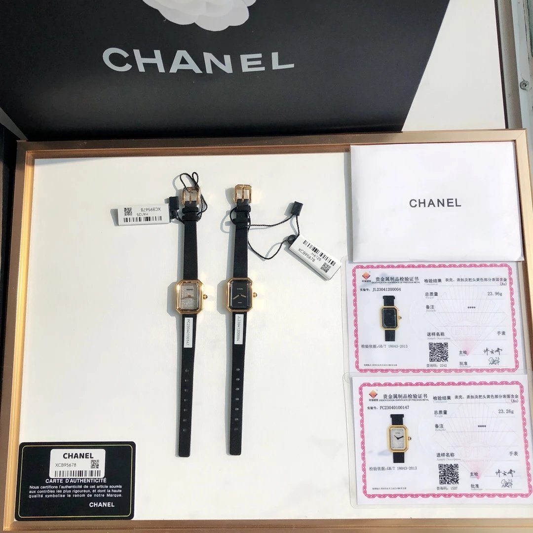 真正18k包金工艺,配备国检证书,一表一码,支持复检!表壳和表扣采用的炉内真空镀金技术,整面18K金覆盖厚度为8咪,腕表尺寸19.7✖️15.2mm.搭载进口原装石英机芯,方形多边形大切边蓝宝石玻璃镜面,钻石切割工艺,始终保持无痕清透,搭配丝绒质感橡胶表带,上手柔软舒适,质感上佳。这款腕表是coco邀请好莱坞女星GretaGarbo设计,作为香奈儿的第一款腕表,非常具有premiere(首次露面)的意义,表壳配八角形蓝宝石玻璃的灵感来源于N°5香水的瓶盖以及coco家附近的巴黎芳登广场,因为这个外形很像方糖也被大家称之为方糖腕表。就是一款你穿什么衣服戴它都立刻提高时尚度的腕表。中古表里的万人迷复古优雅,表盘上没有秒针没有数字也没有时标让你随心感觉时间,与众不同为各种造型平添前卫时尚感。