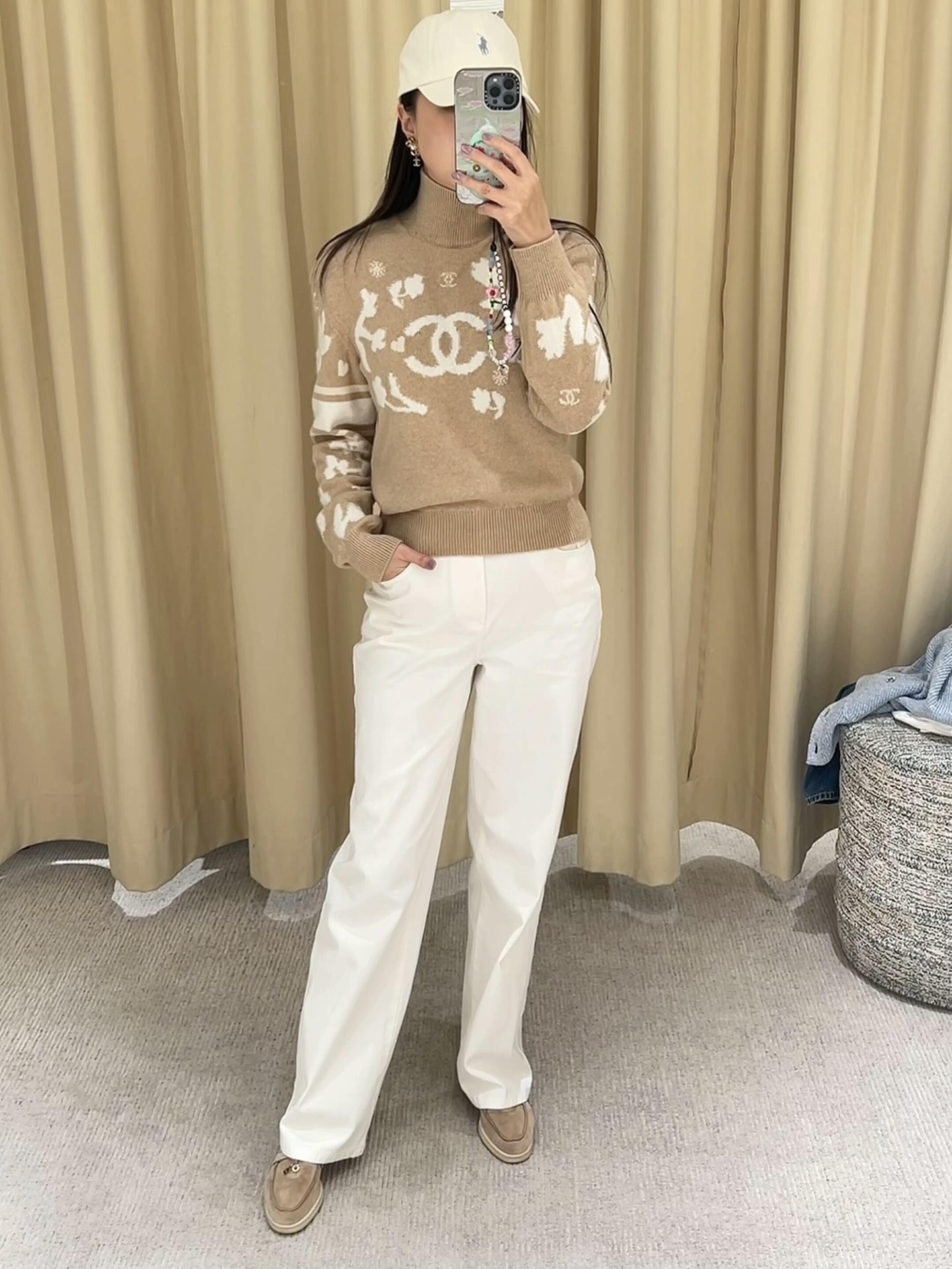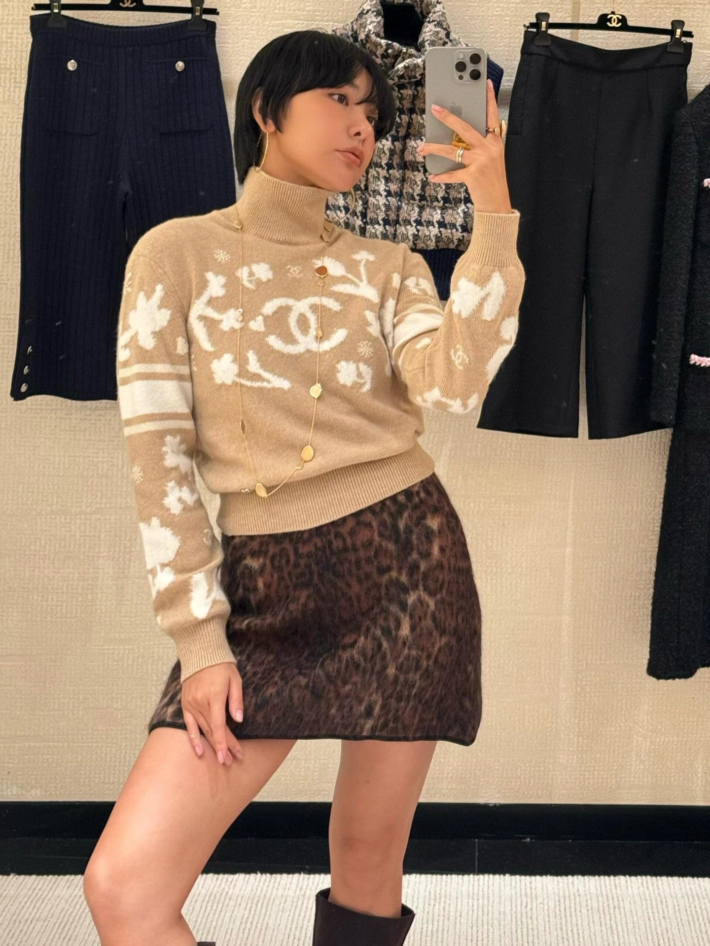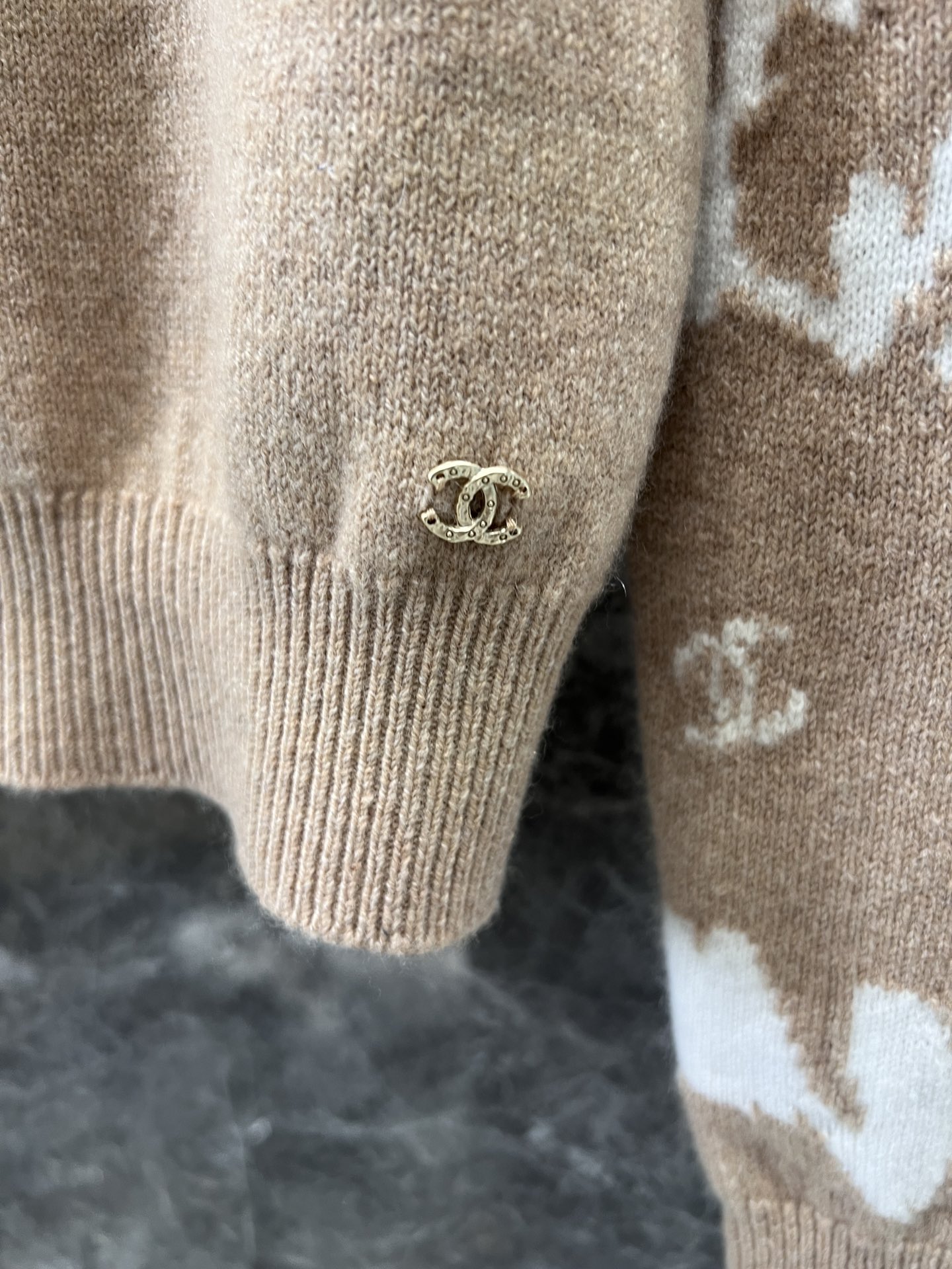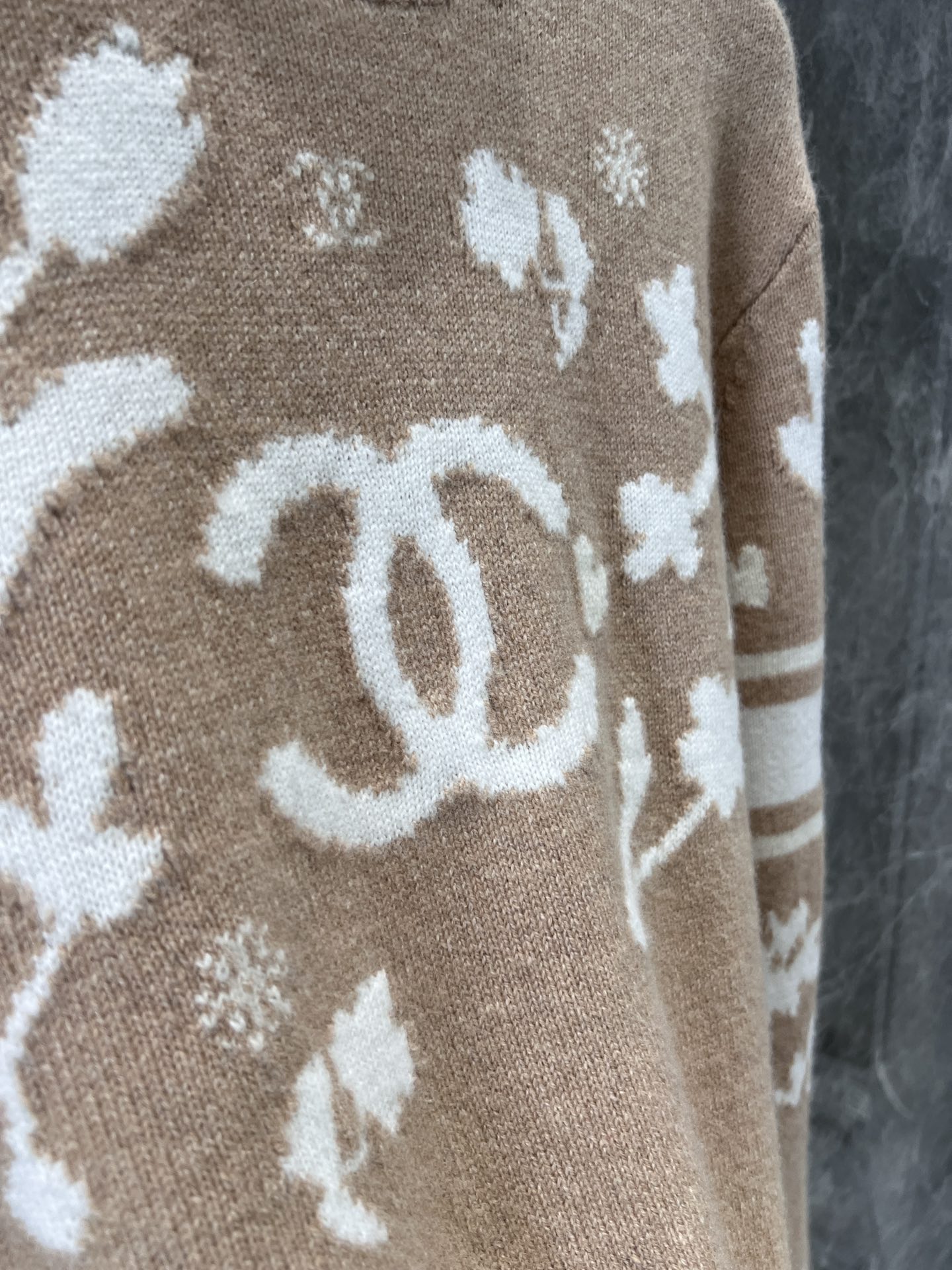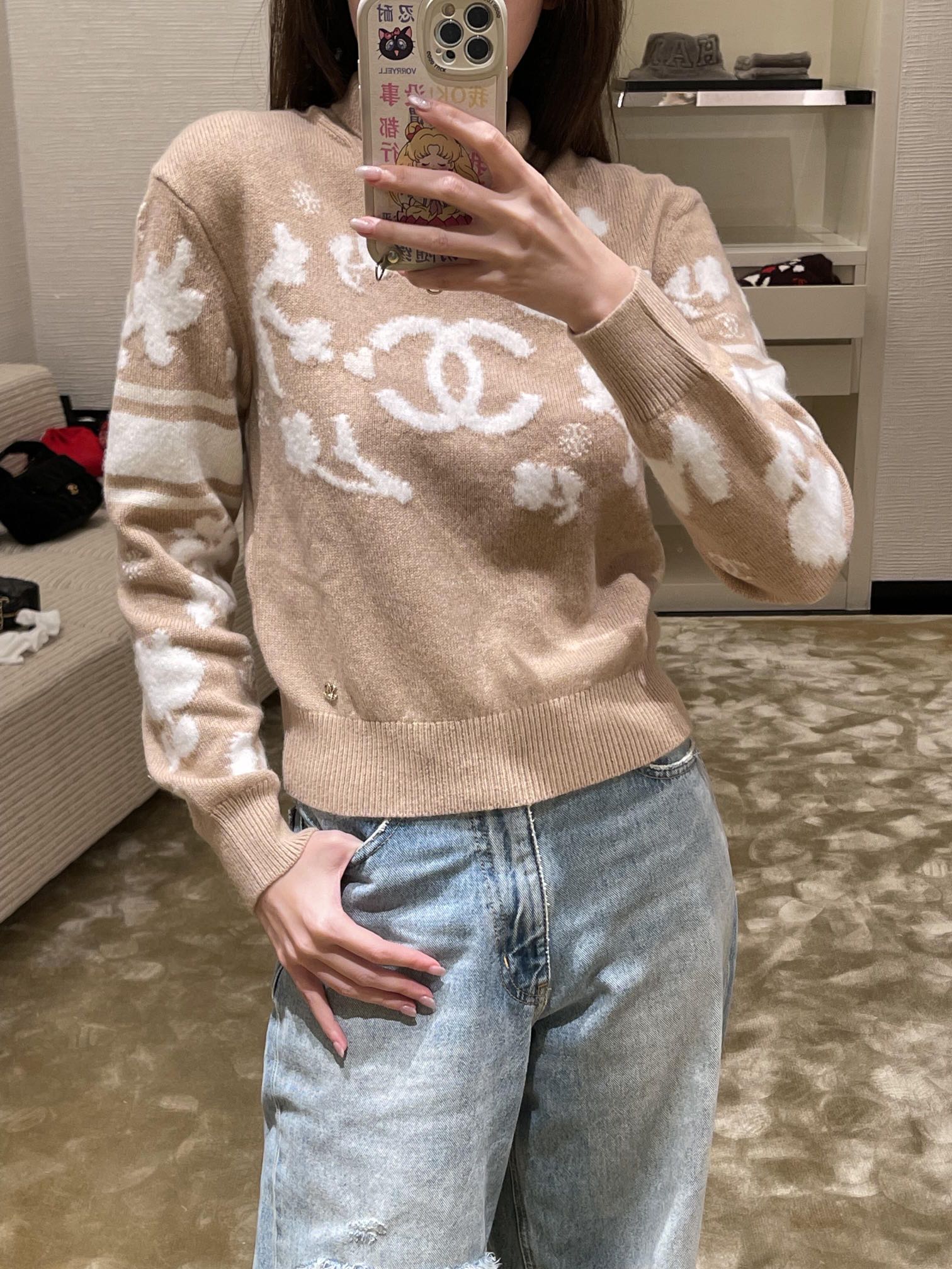 定制YB进口羊毛材质 质感舒适柔软 精致撞色提花 肌理纹路呈现 成衣气质高雅 下角双C小配件 整体优雅有小细节 常规高领毛衣剪裁