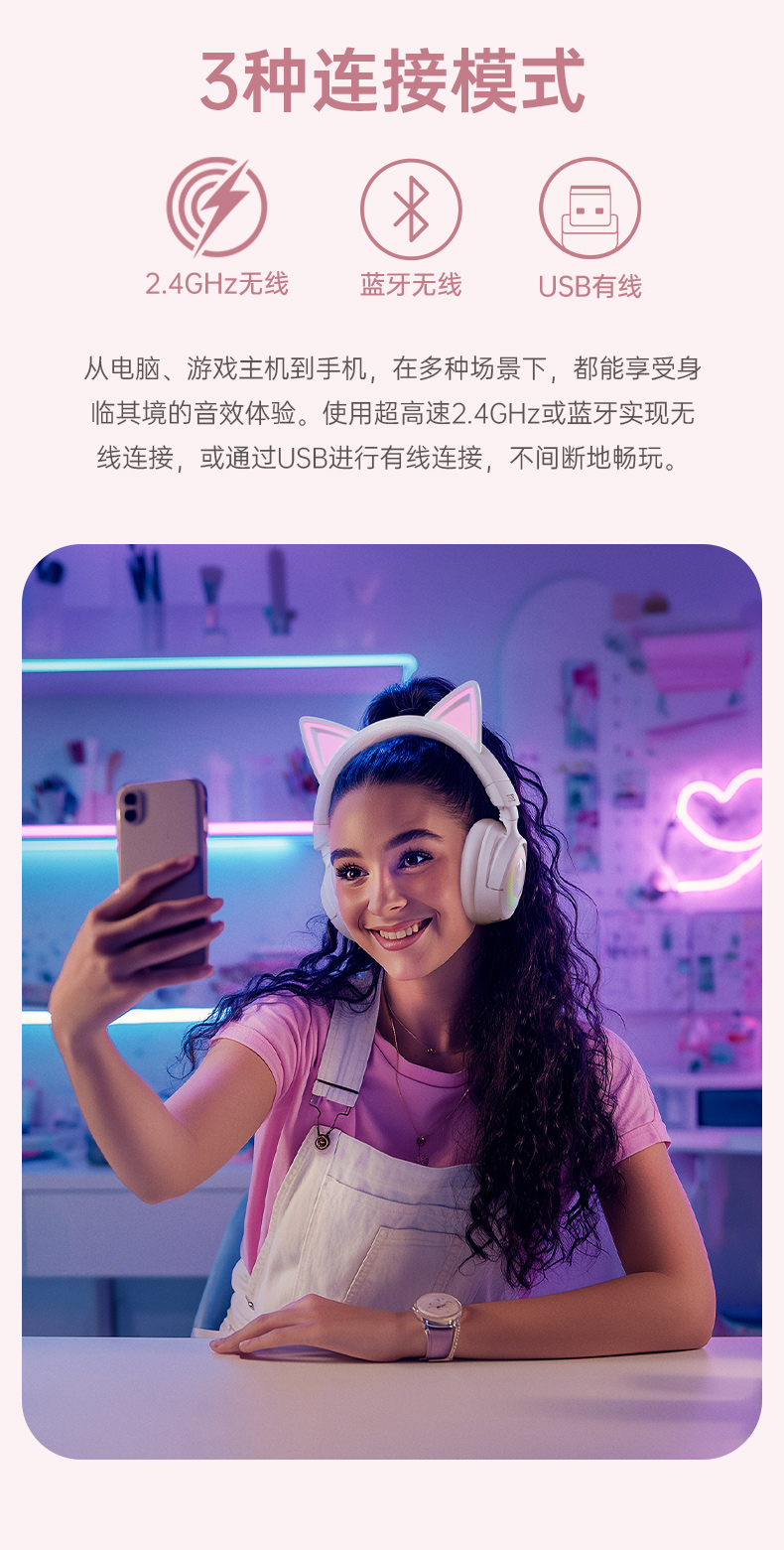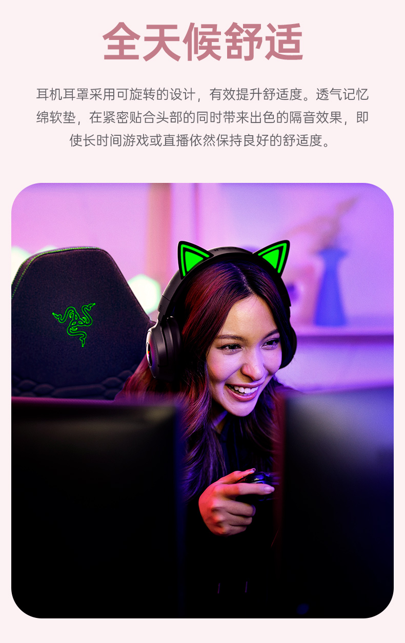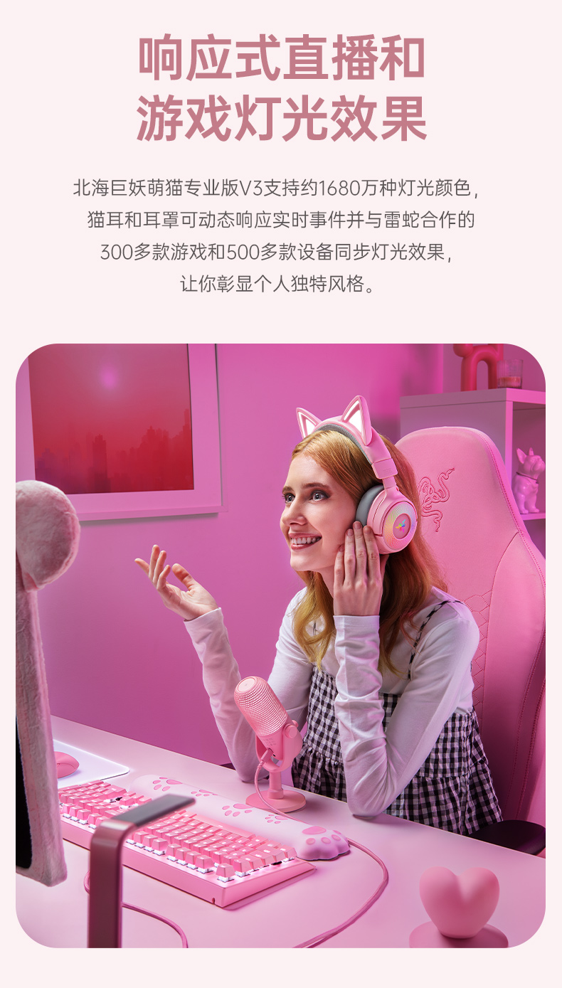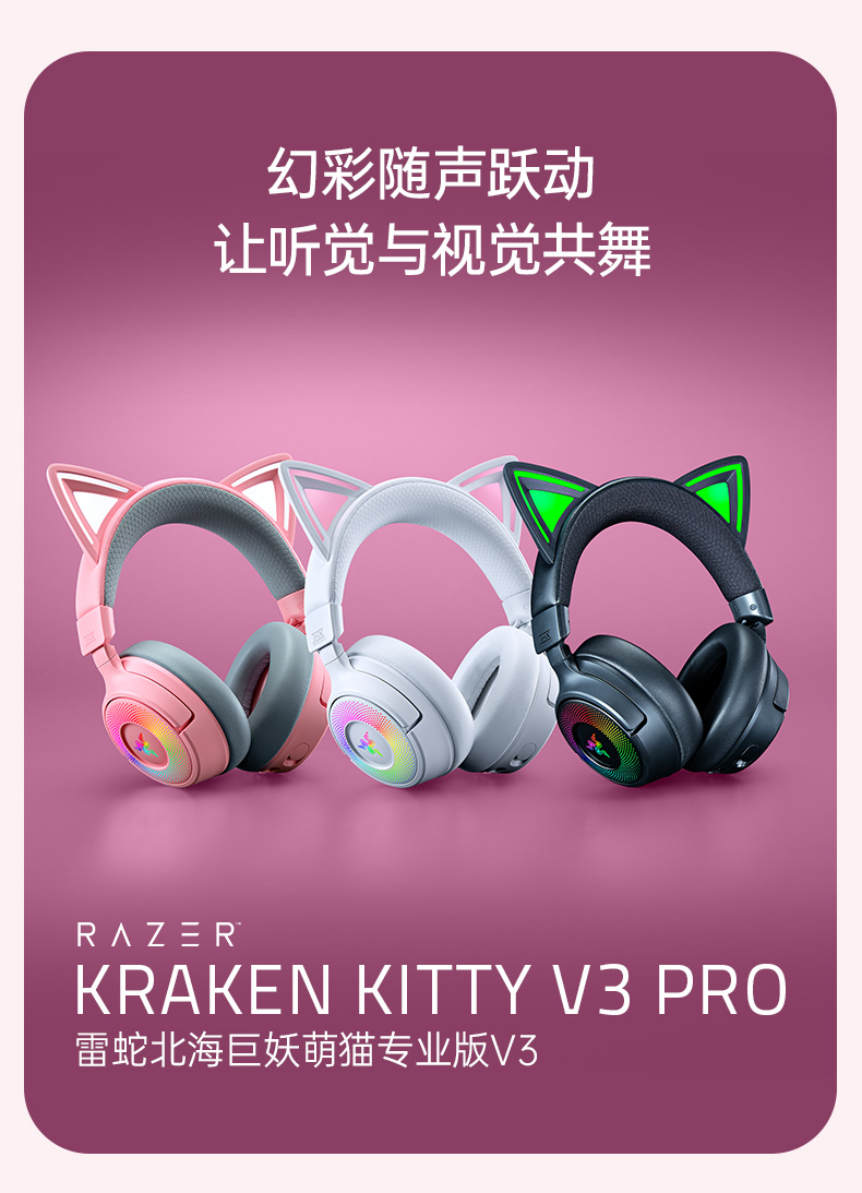 Razer雷蛇 北海巨妖萌猫专业版V3 三模无线耳机【雷蛇官方直营,3年有限质保】