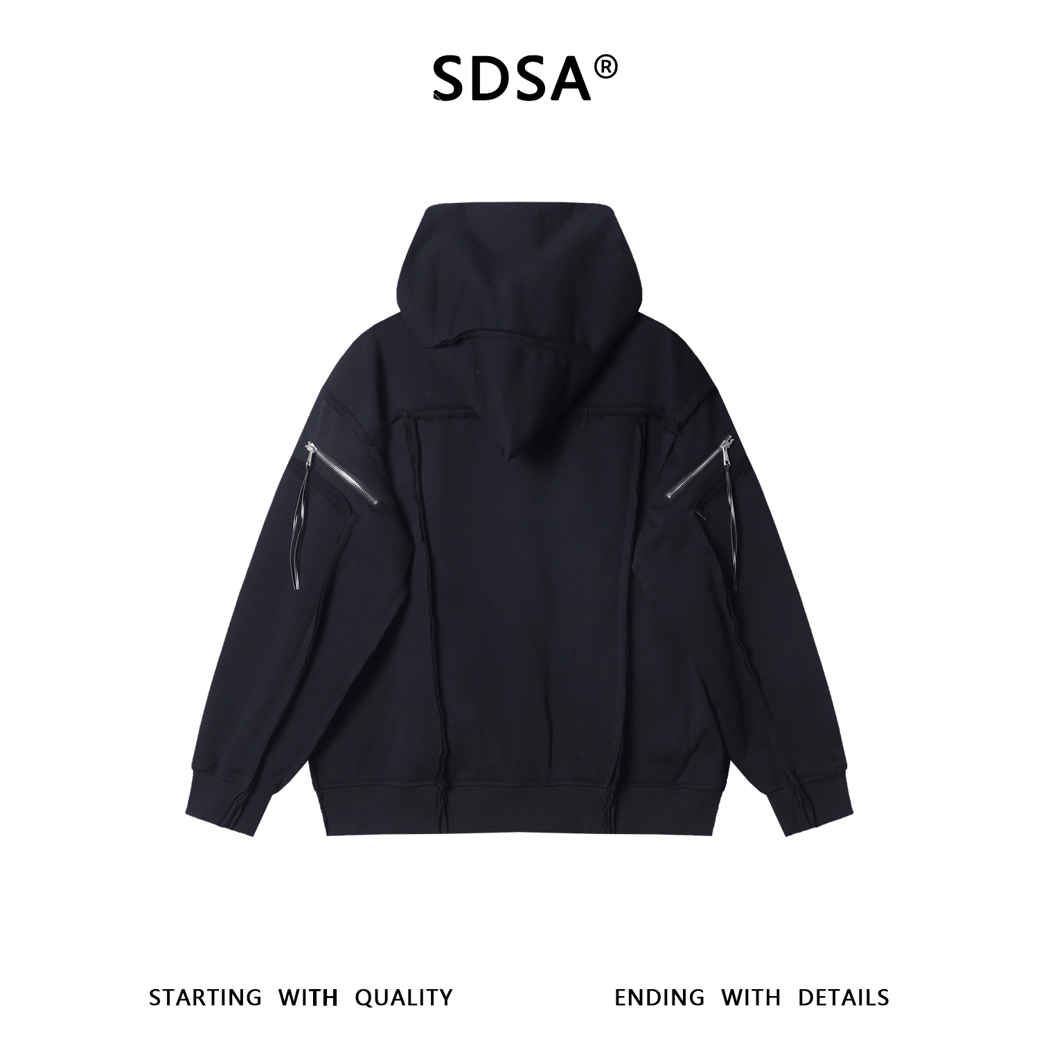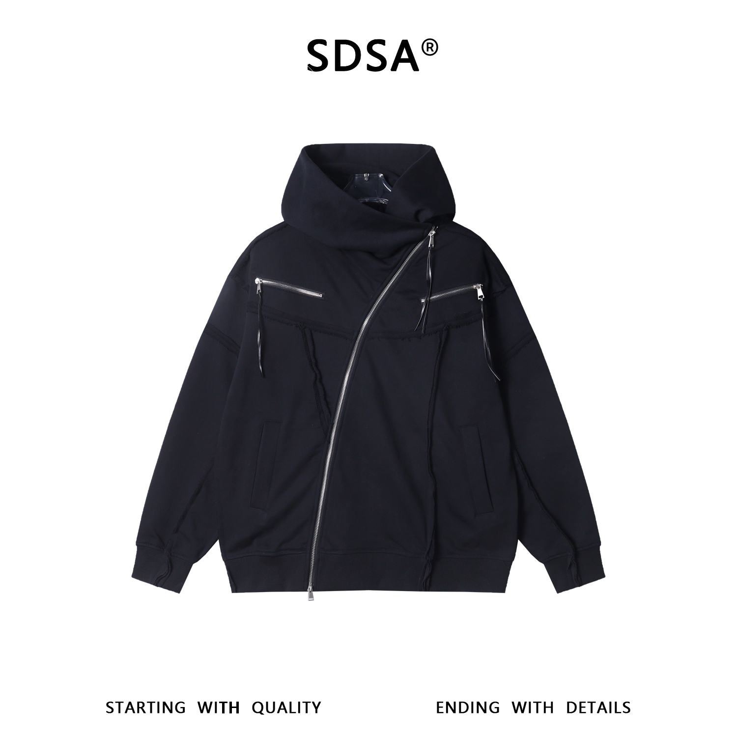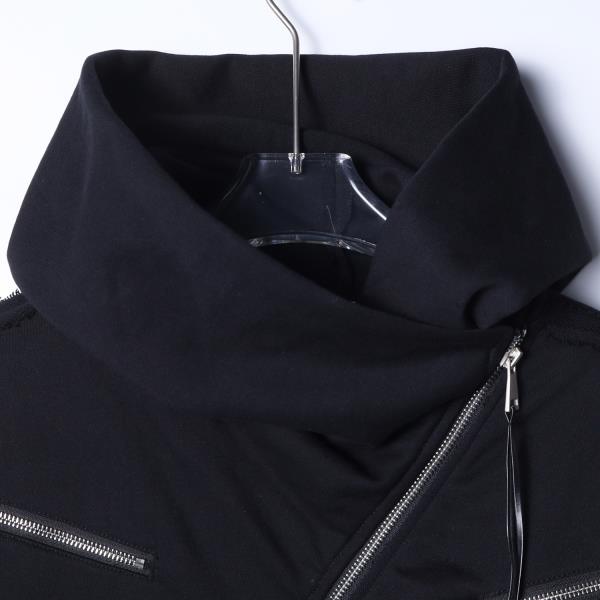 WT364SDSA男士秋冬新款痞帅男装潮牌磨边斜拉链设计连帽卫衣纯色百搭