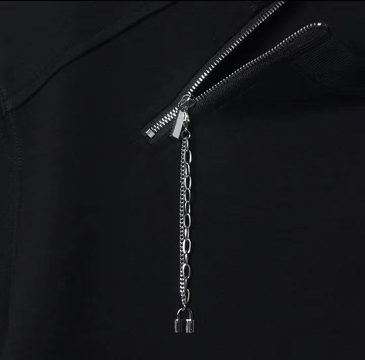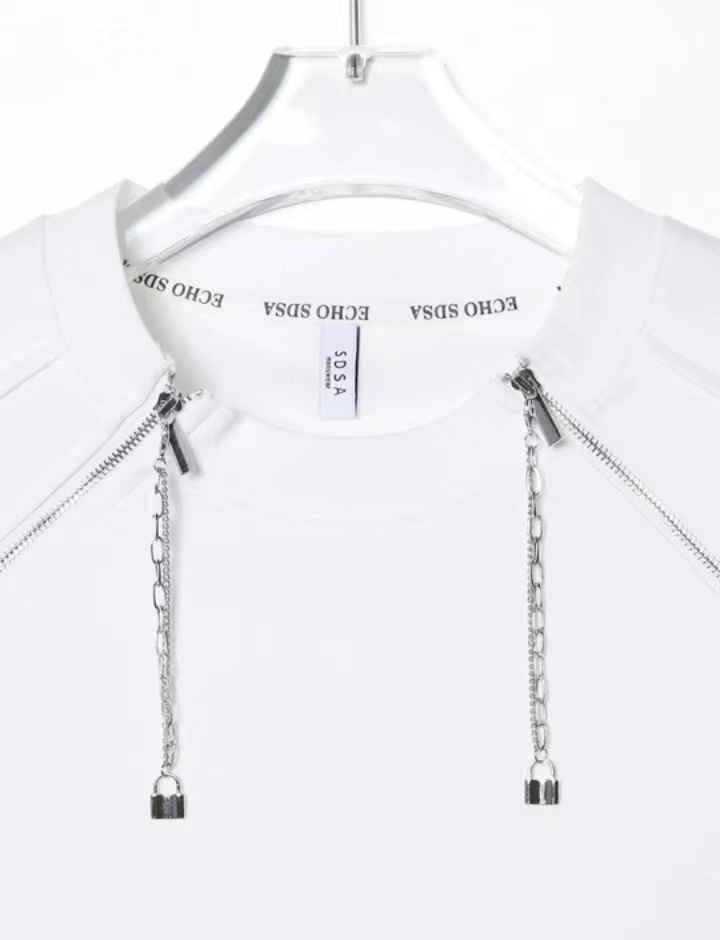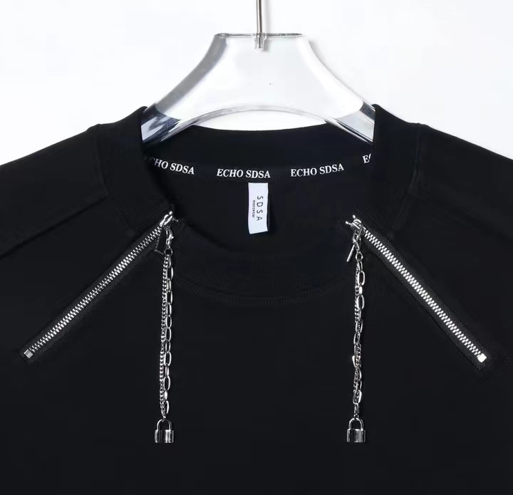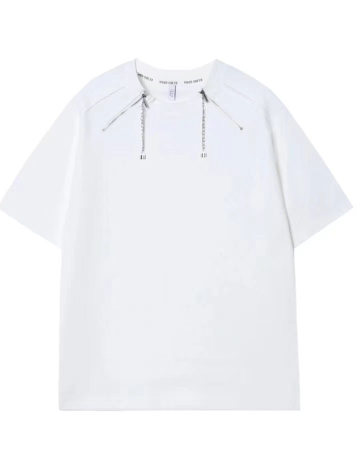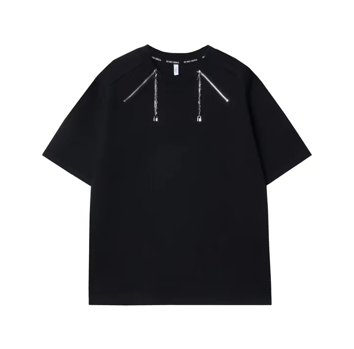 T555春夏男士短袖欧美潮牌小众设计感侧拉链重磅休闲圆领半袖上衣