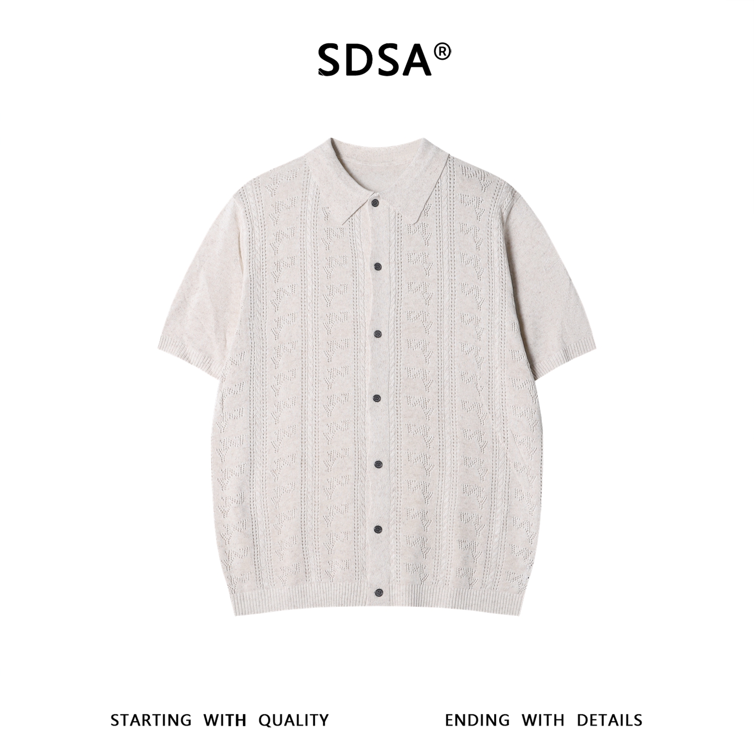 SDSA男装2026新款高贵轻奢复古镂空针织纽扣翻领短袖T恤百搭休闲