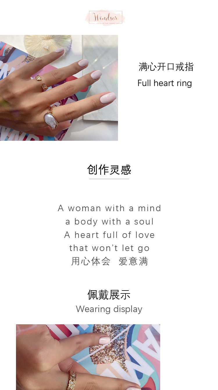 LHWINDSOR 满心开口戒指Full heart ringins素圈心形叠戴指环