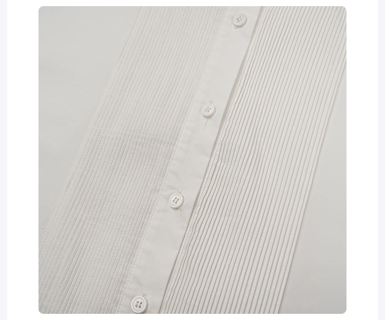 ROMI STUDIO“法式优雅”100%棉简约休闲独特压褶小翻领衬衣T3188