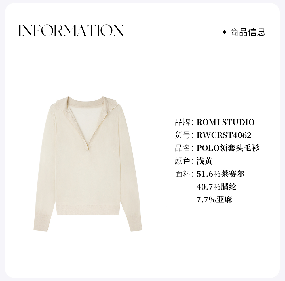 ROMI STUDIO“法式慵懒”莱赛尔亚麻混纺轻薄翻领针织衫 RWCRST4062