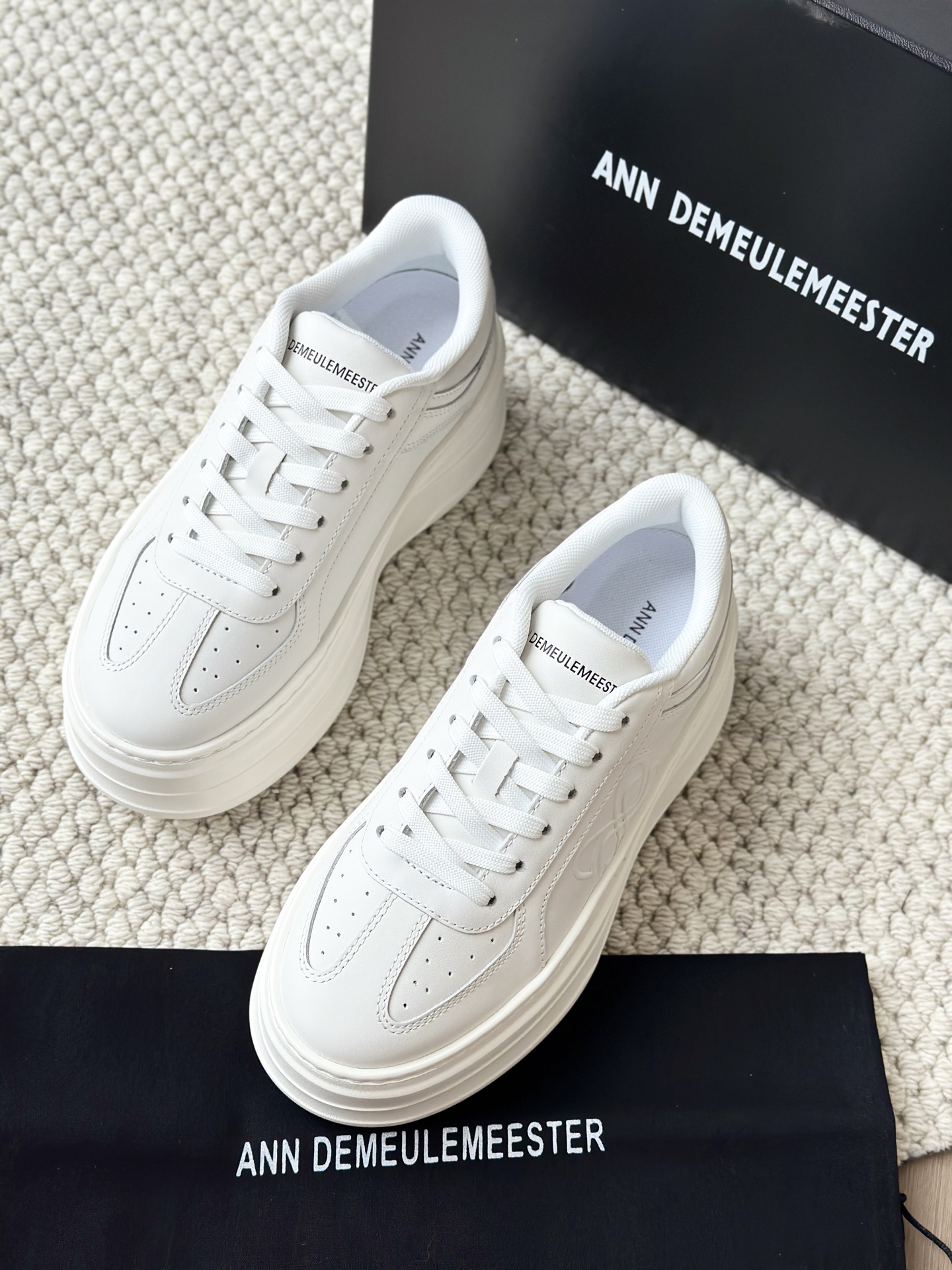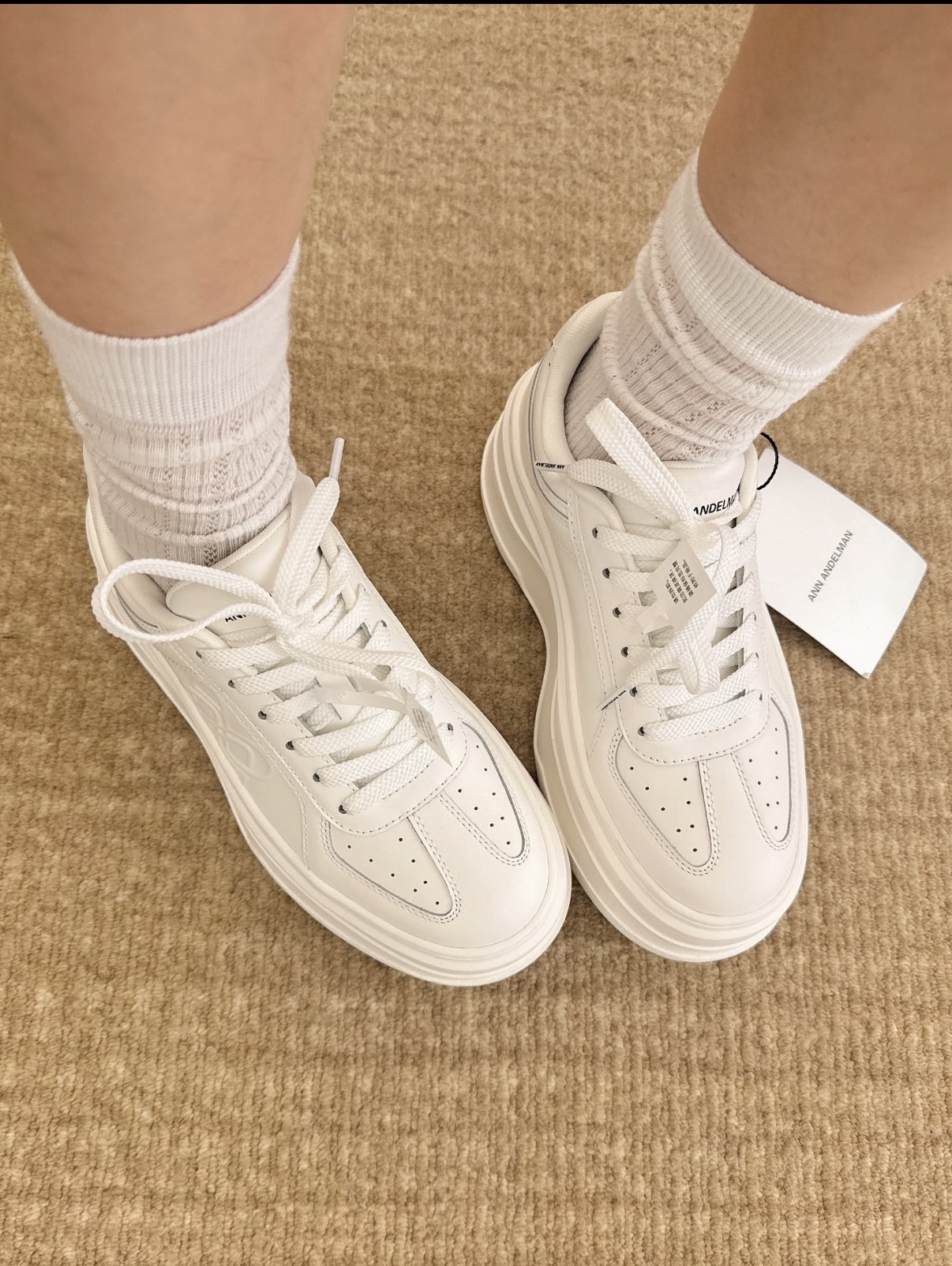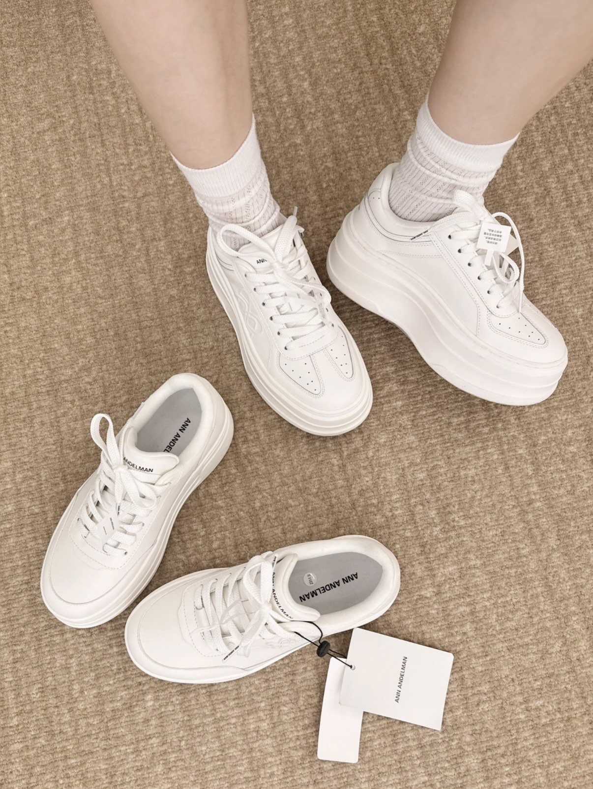 ANN同款 最新款厚底小白鞋‼️ 说起ANN家的东西,鞋子就没有踩雷的!就像今天这款小白鞋一样,越看越喜欢!想必已经有不少小姐姐己经被 微博 小红书上动辄几十页的分享推介 深深的种草! 等了个把月,终于拿到手了!老渠道,ANN同家的鞋咱也不是第一次上,出口海外的订单,品质杠杠滴! 相比烂大街AJ,ANN小白鞋有它自己独特的设计,皮革鞋面非常好打理,款式设计独出心裁,别具一格,鞋舌的LOGO让他简单又不失调性!鞋面进囗小牛皮,撞色的拼接设计实在是太爱了,夏天穿真的太有活力了。原厂T P U大底加上厚厚的乳胶鞋垫,脚感可以想象到的舒适!5cm厚底,配色清新时髦,属于四季都可以穿的款式,上脚显阳光活力,行走间展现青春时髦范~ 尺码:34/35/36/37/38/39