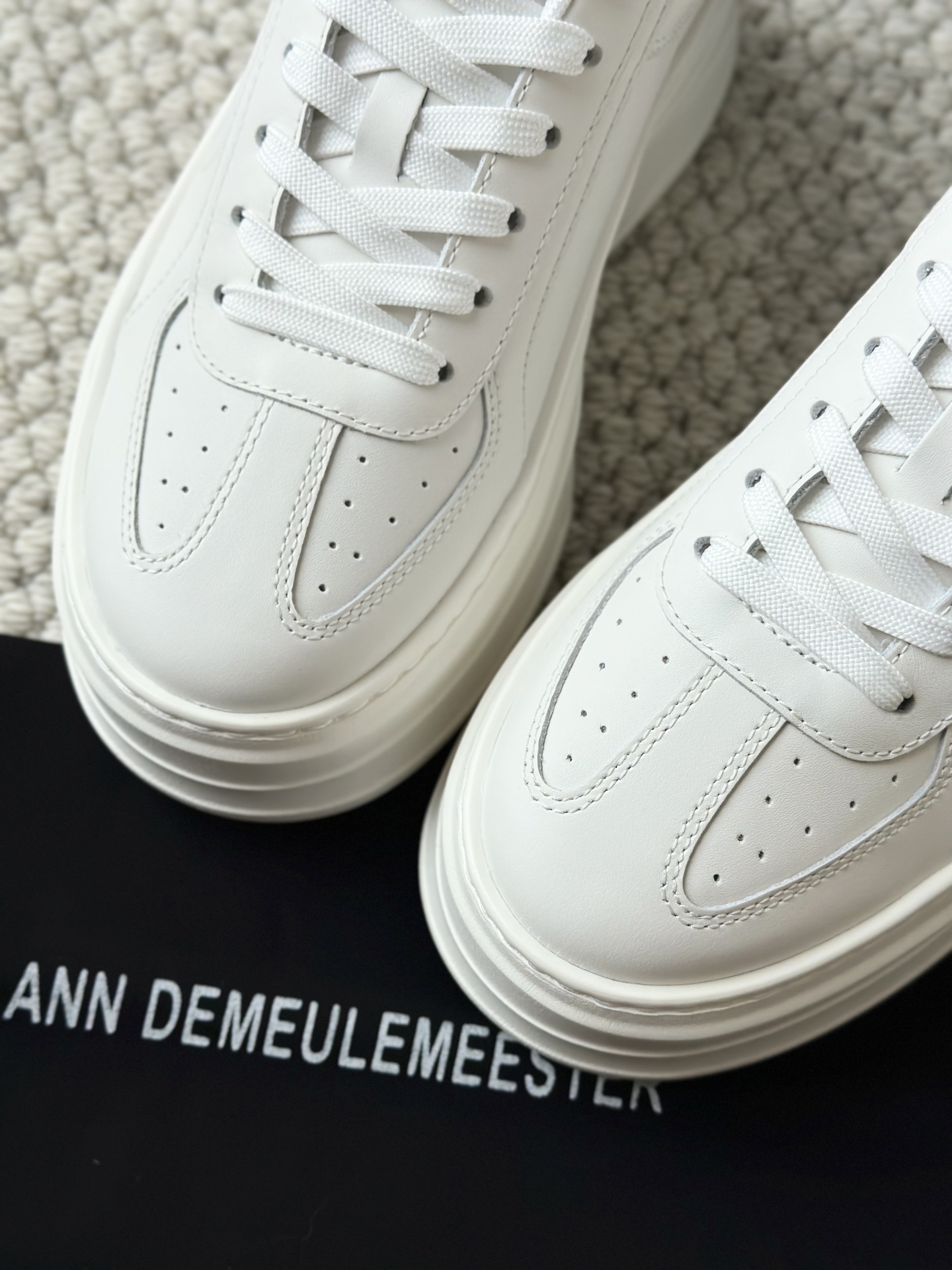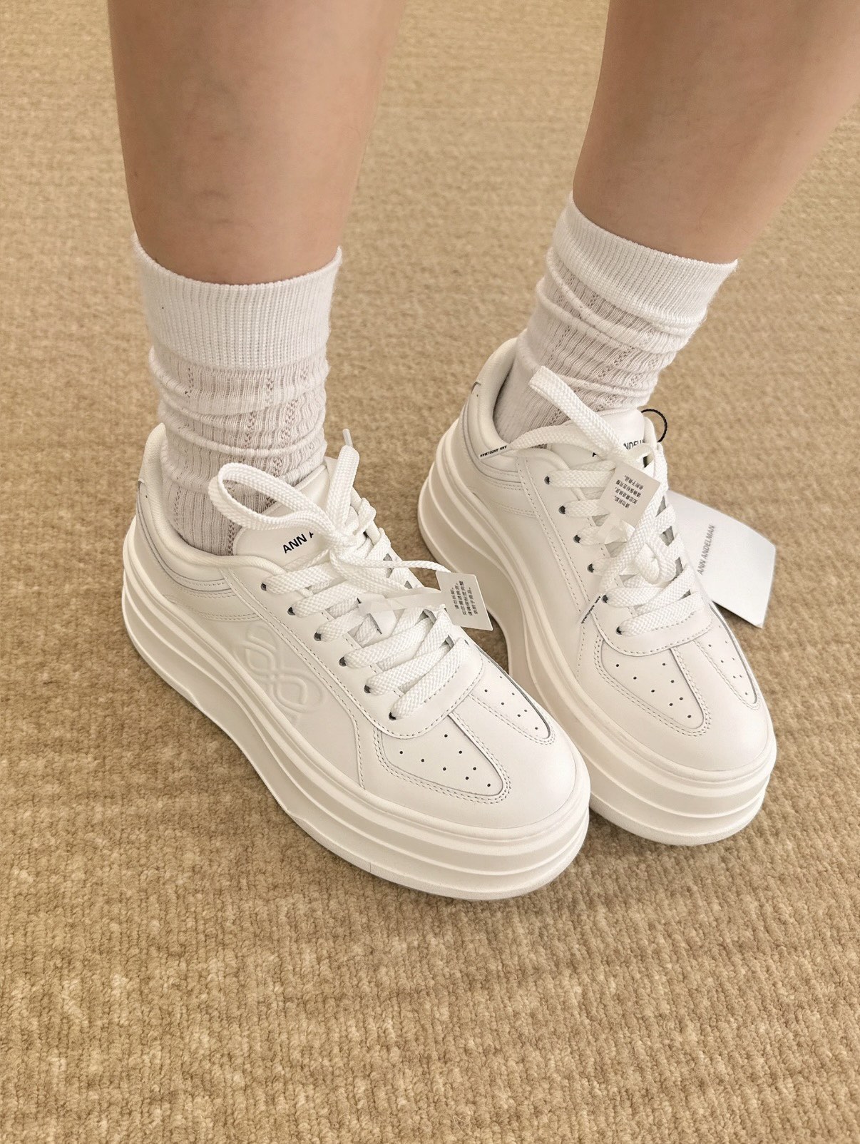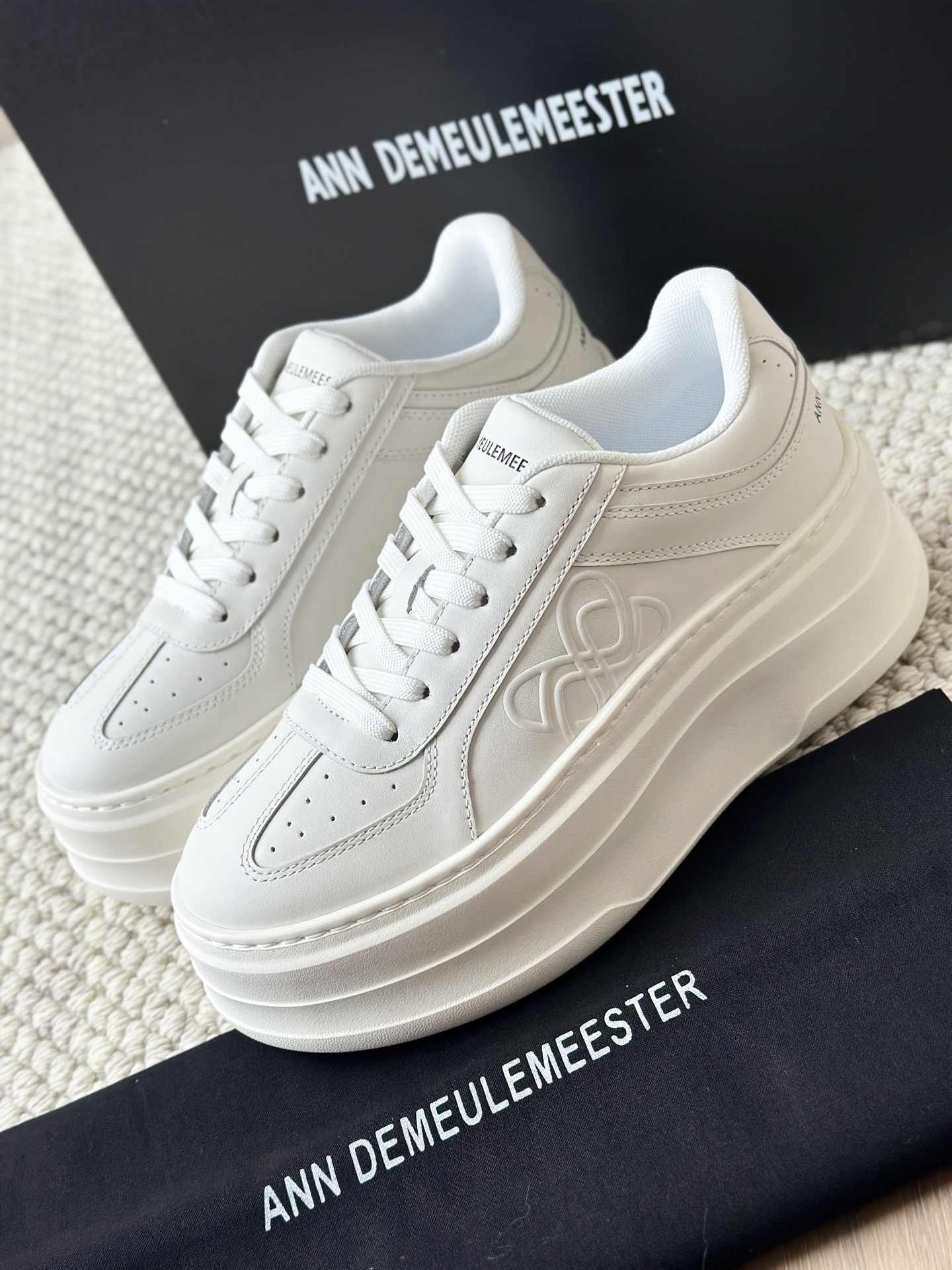 ANN同款 最新款厚底小白鞋‼️ 说起ANN家的东西,鞋子就没有踩雷的!就像今天这款小白鞋一样,越看越喜欢!想必已经有不少小姐姐己经被 微博 小红书上动辄几十页的分享推介 深深的种草! 等了个把月,终于拿到手了!老渠道,ANN同家的鞋咱也不是第一次上,出口海外的订单,品质杠杠滴! 相比烂大街AJ,ANN小白鞋有它自己独特的设计,皮革鞋面非常好打理,款式设计独出心裁,别具一格,鞋舌的LOGO让他简单又不失调性!鞋面进囗小牛皮,撞色的拼接设计实在是太爱了,夏天穿真的太有活力了。原厂T P U大底加上厚厚的乳胶鞋垫,脚感可以想象到的舒适!5cm厚底,配色清新时髦,属于四季都可以穿的款式,上脚显阳光活力,行走间展现青春时髦范~ 尺码:34/35/36/37/38/39