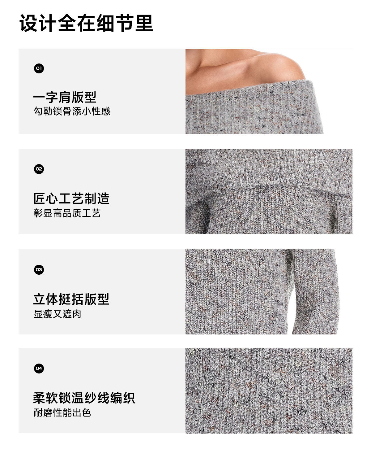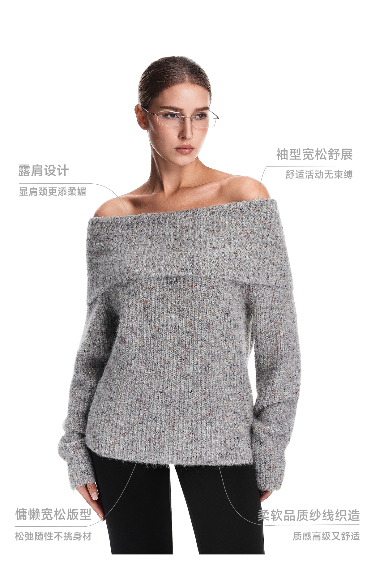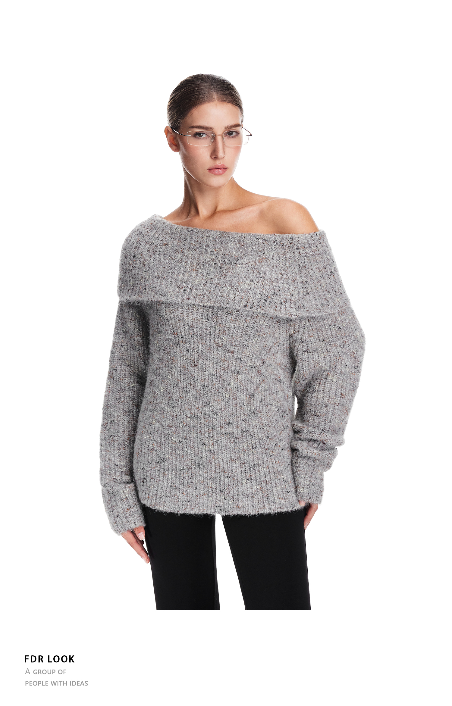 FDR官方店 辣妹一字肩慵懒氛围感露肩毛衣女秋季斜肩针织衫上衣