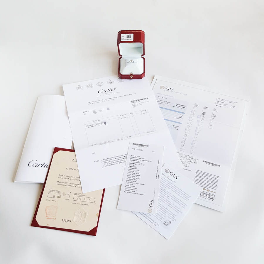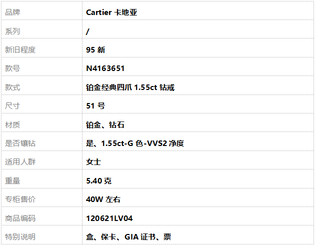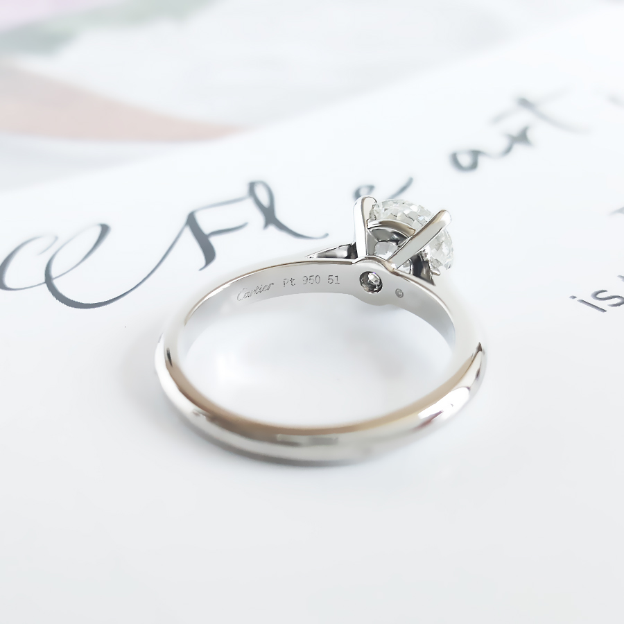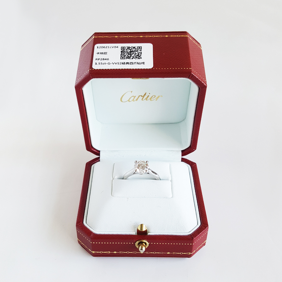 【95新正品】Cartier卡地亚1895铂金经典四爪镶钻戒指N4163651 1.55CT-G-VVS 戒圈51号 120621LV04+