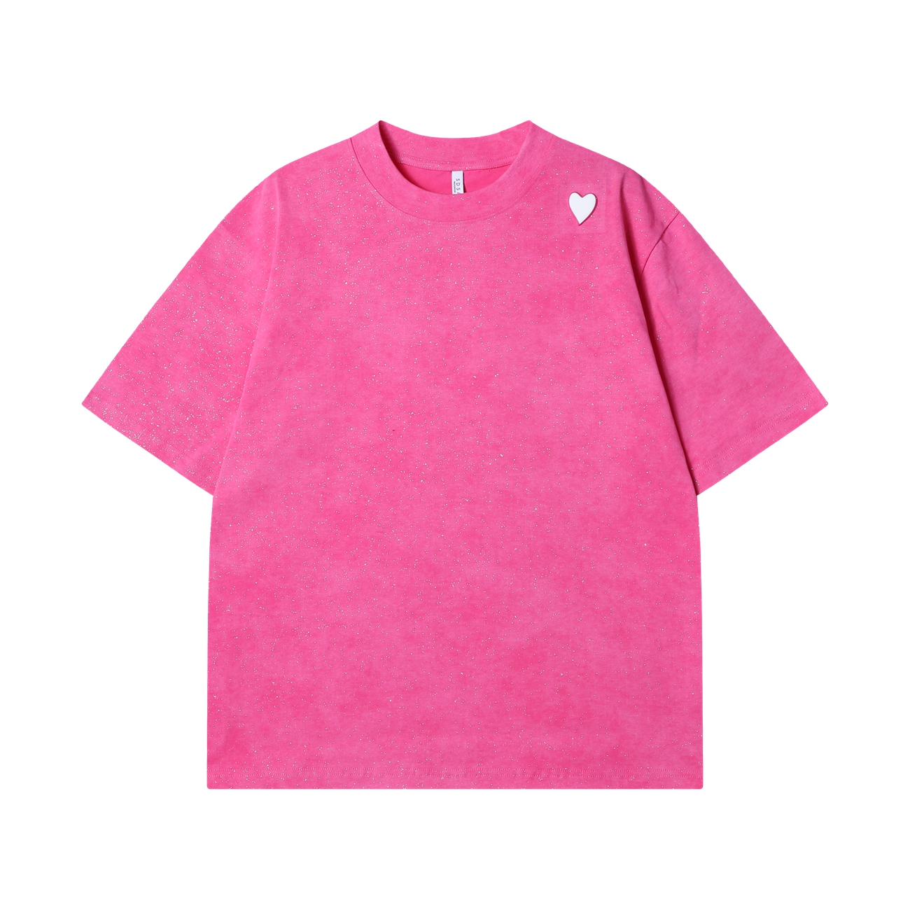 T2928夏季高级感新款净版扎染立体爱心短袖T恤情侣潮流宽松套头上衣