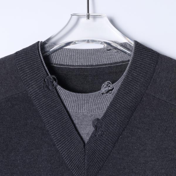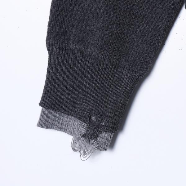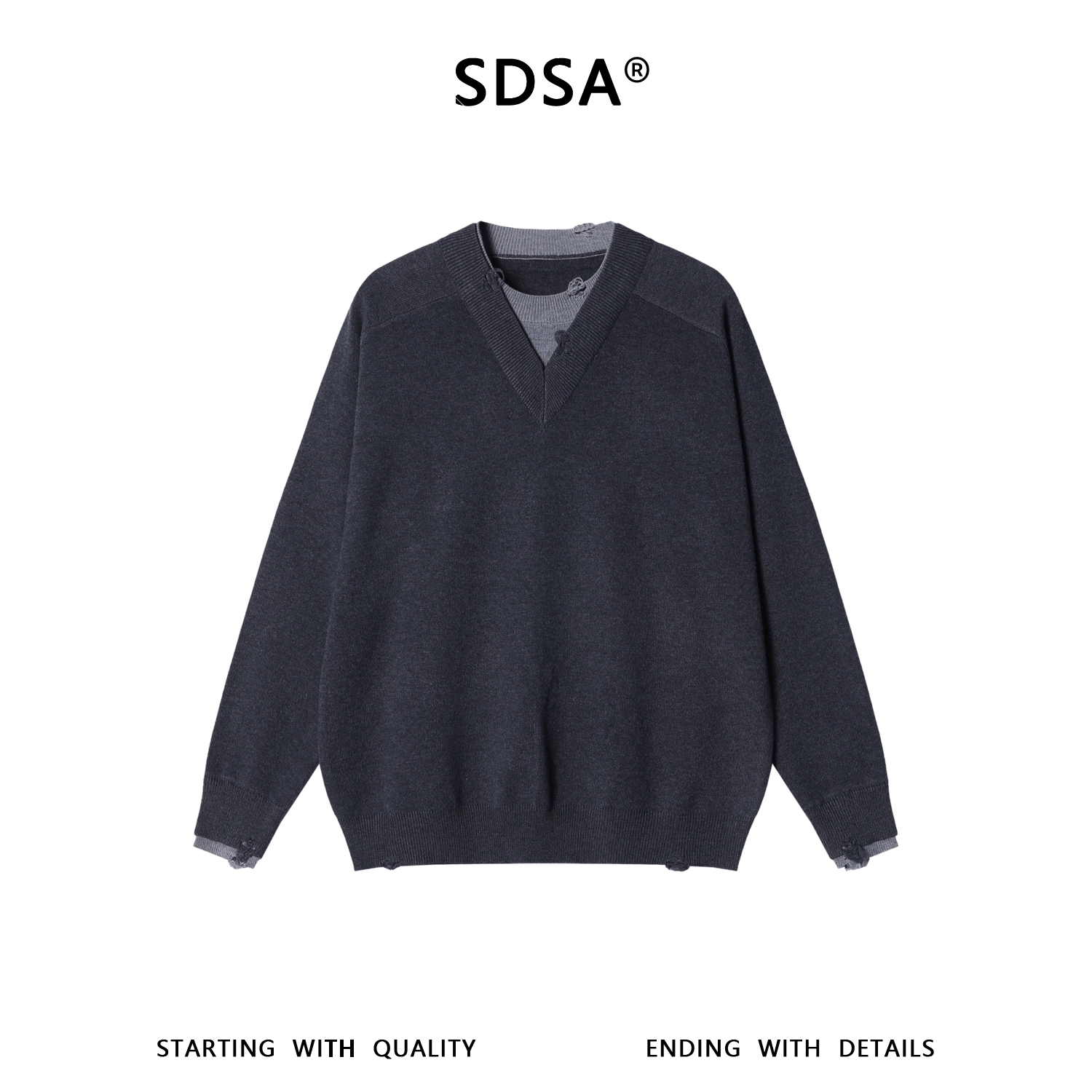 SDSA男士秋冬新款痞帅男装韩版拼接撞色勾破圆领毛衣百搭时尚上衣