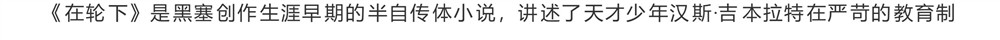 在轮下(德)赫尔曼·黑塞 著 姜乙德文直译 控诉教育体制 反内卷 外国小说