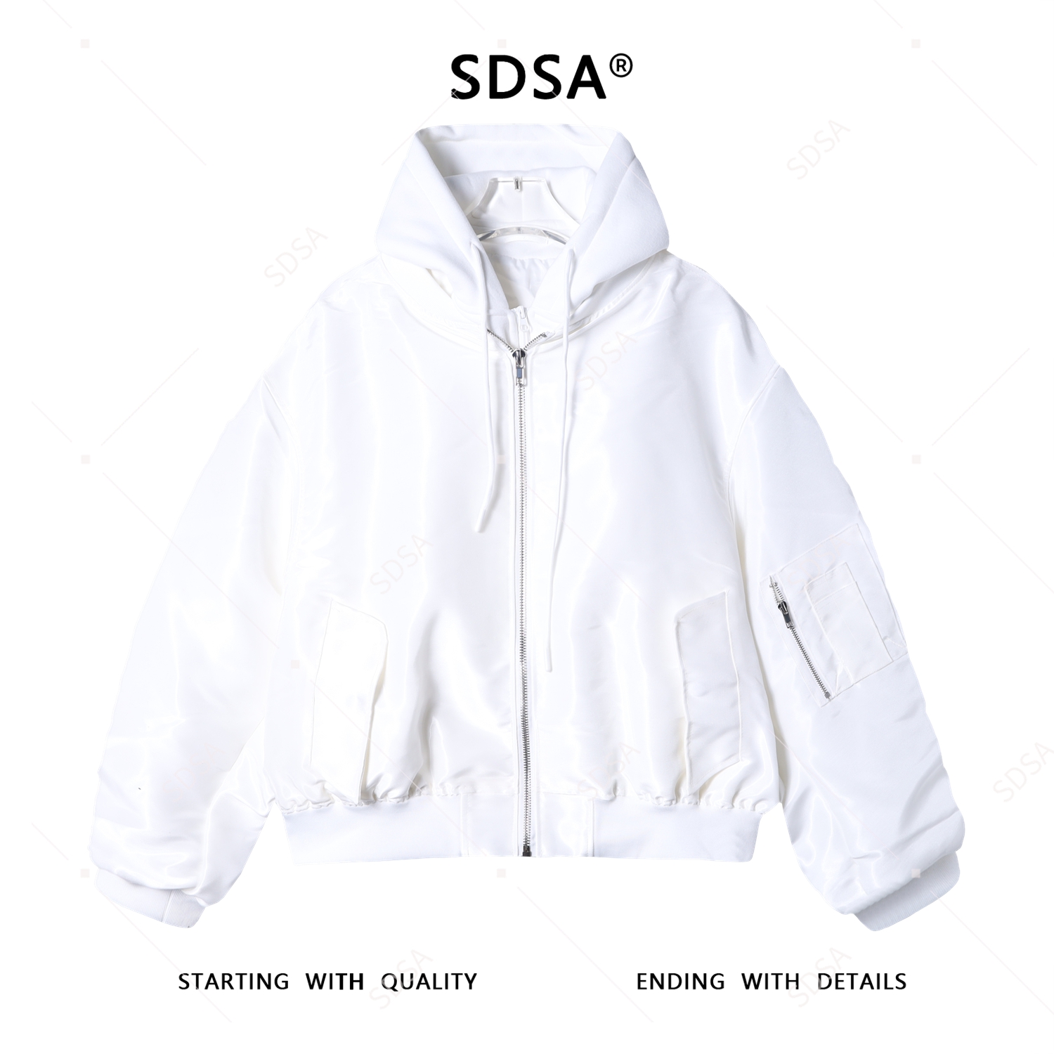 25188SDSA男士秋冬新款痞帅男装极简风纯色拉链拼接连帽假两件夹克外套
