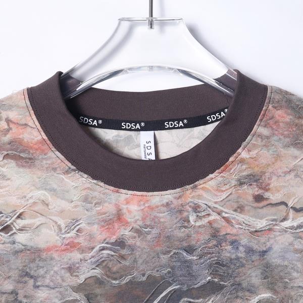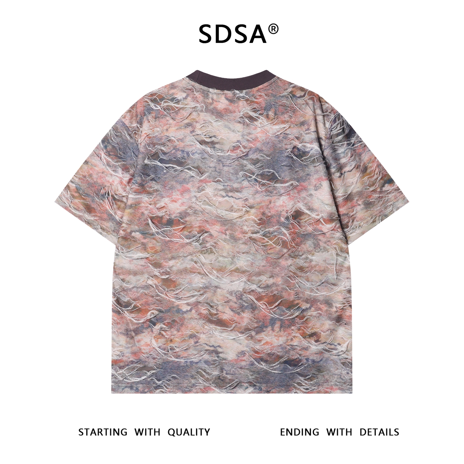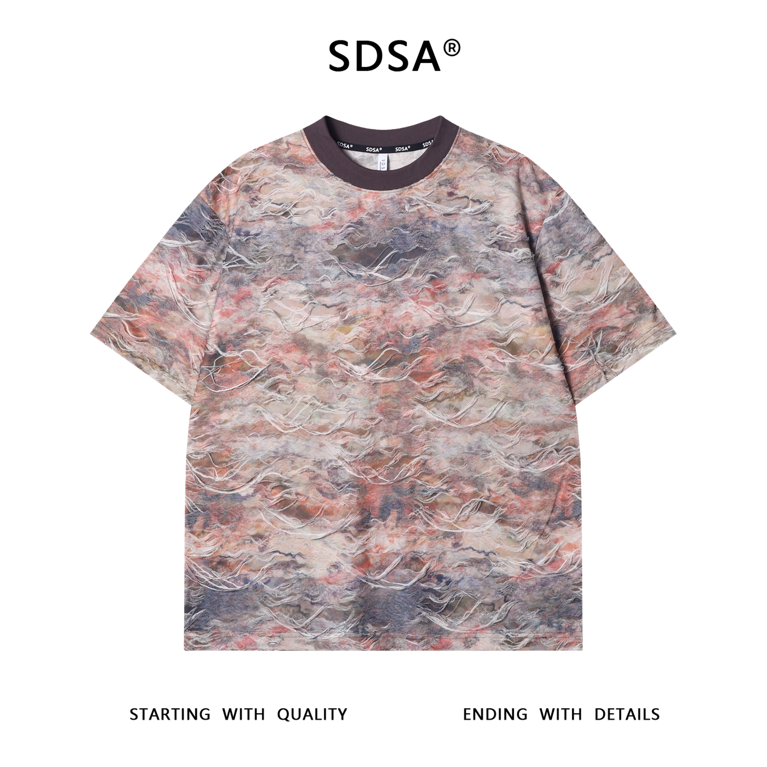 T3543夏季高级感新款男士美式扎染破烂设计圆领短袖T恤高街时尚上衣