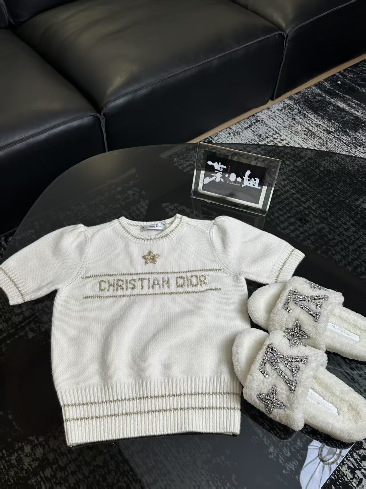 D家 新款提花字母logo星星💫圆领短袖针织衫毛衣