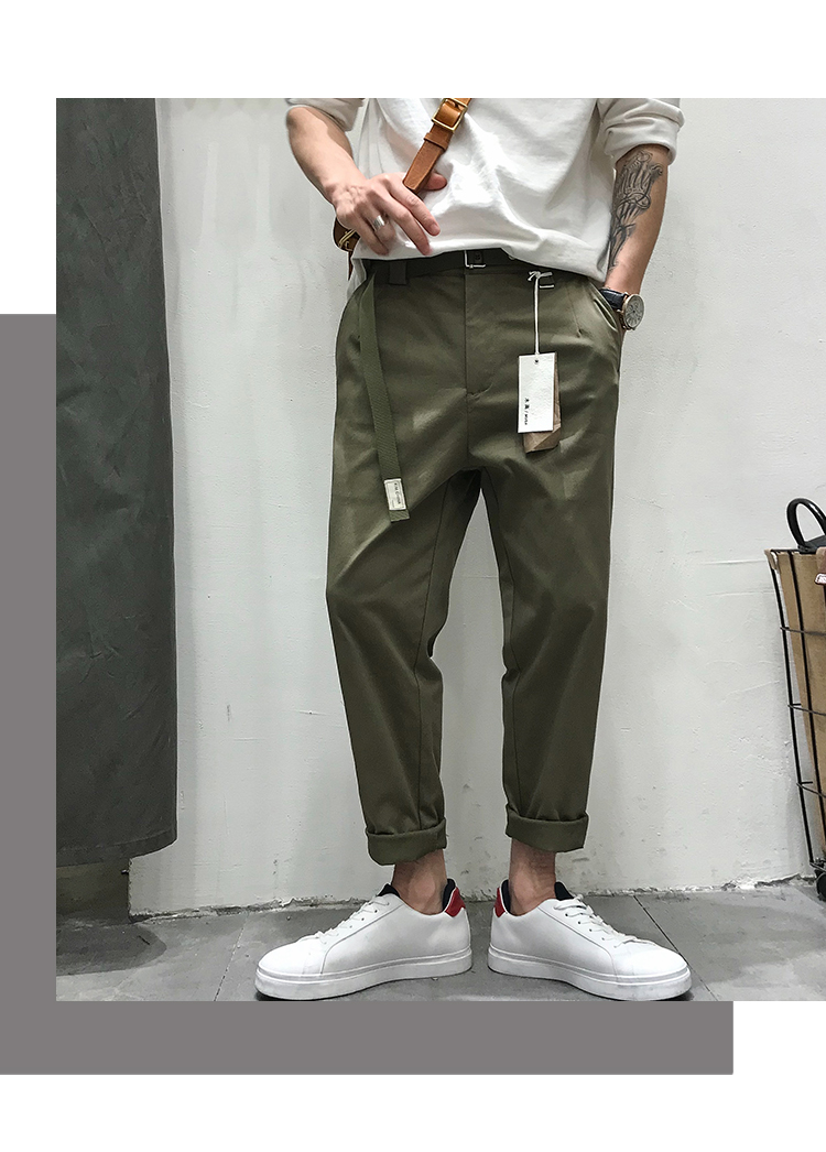 徐太浪美式休闲简约男士九分裤春秋潮流纯色水洗运动百搭哈伦裤男