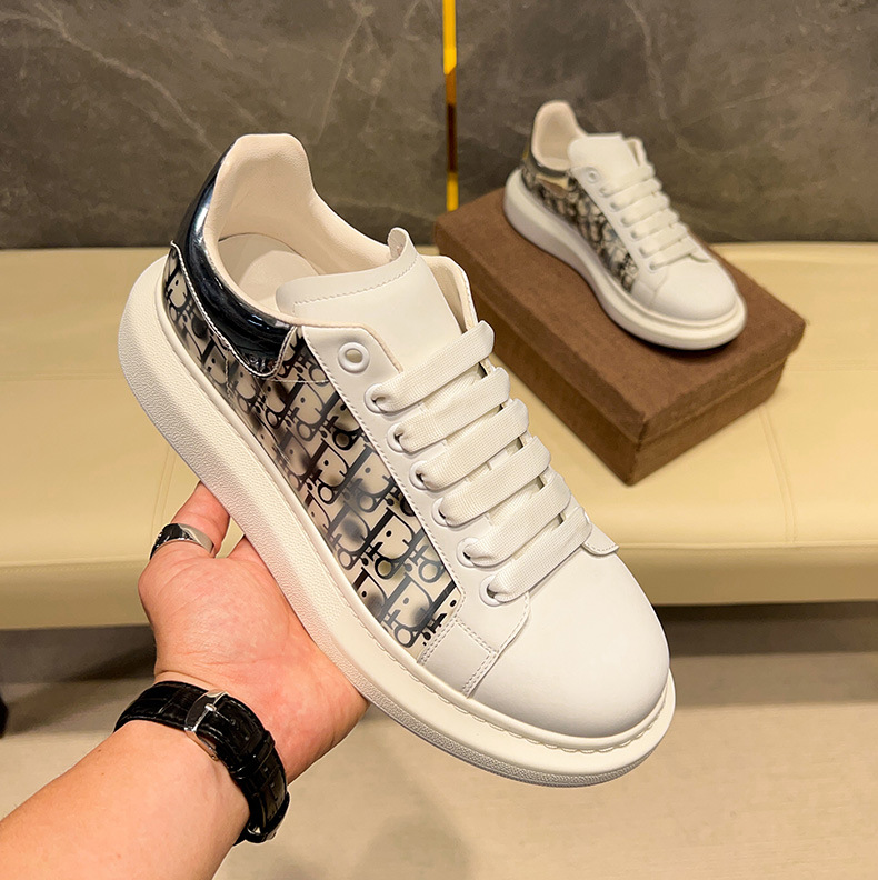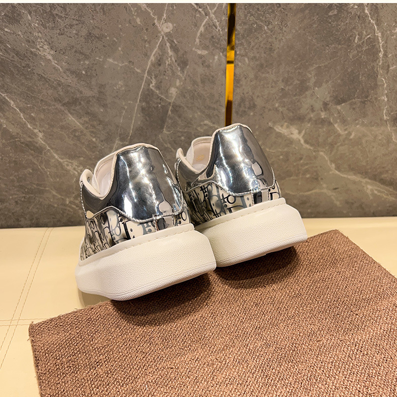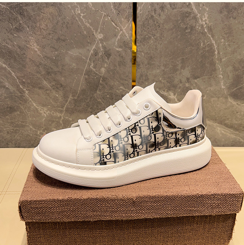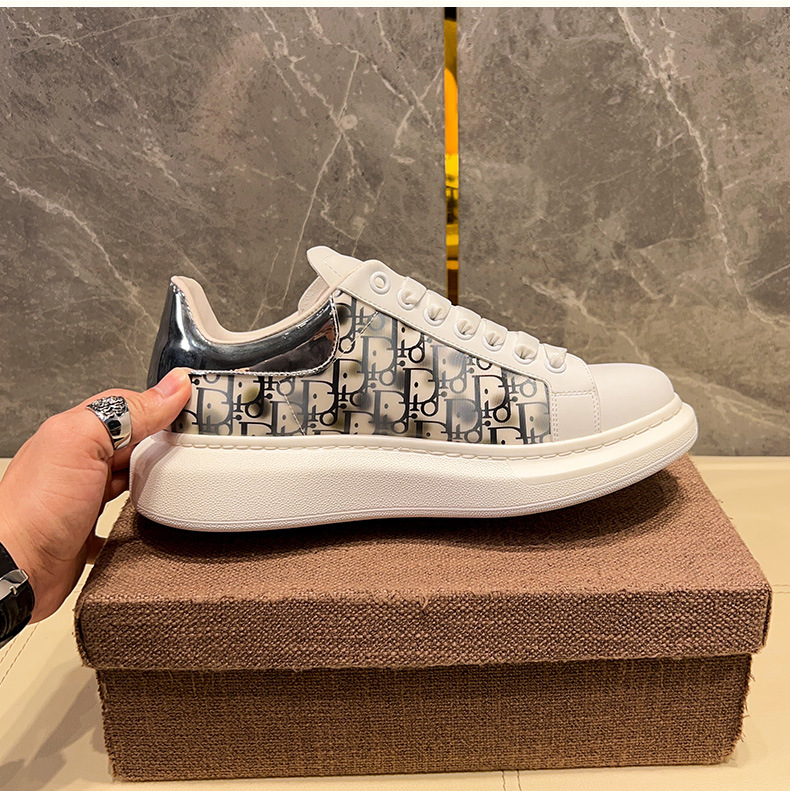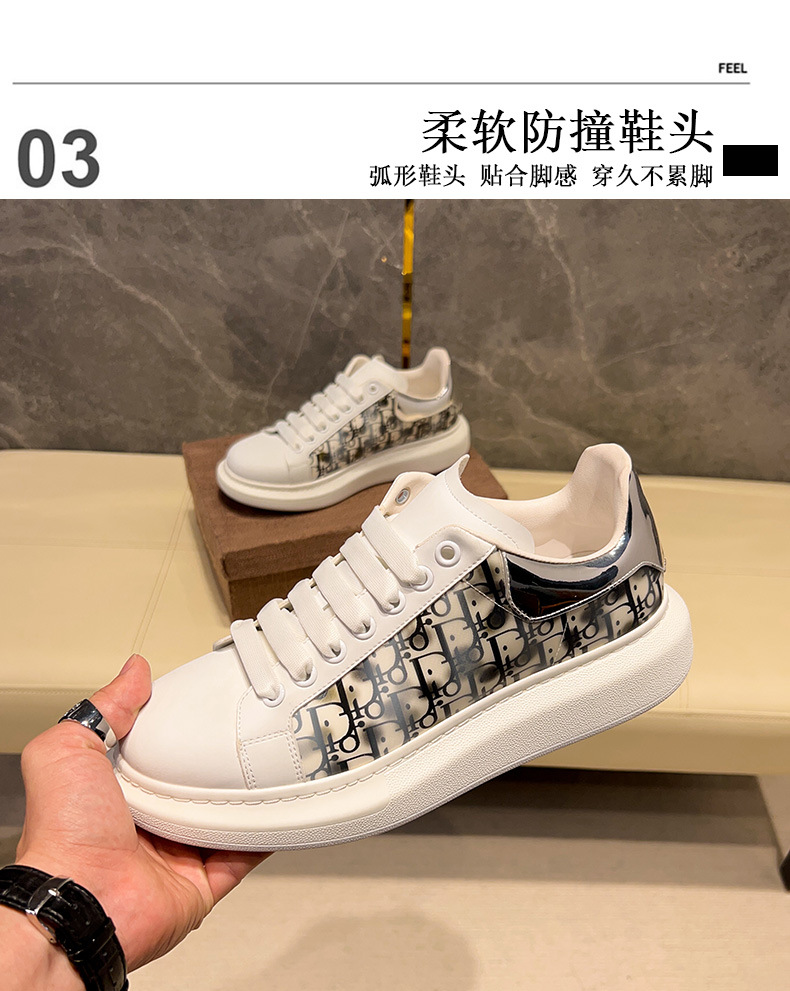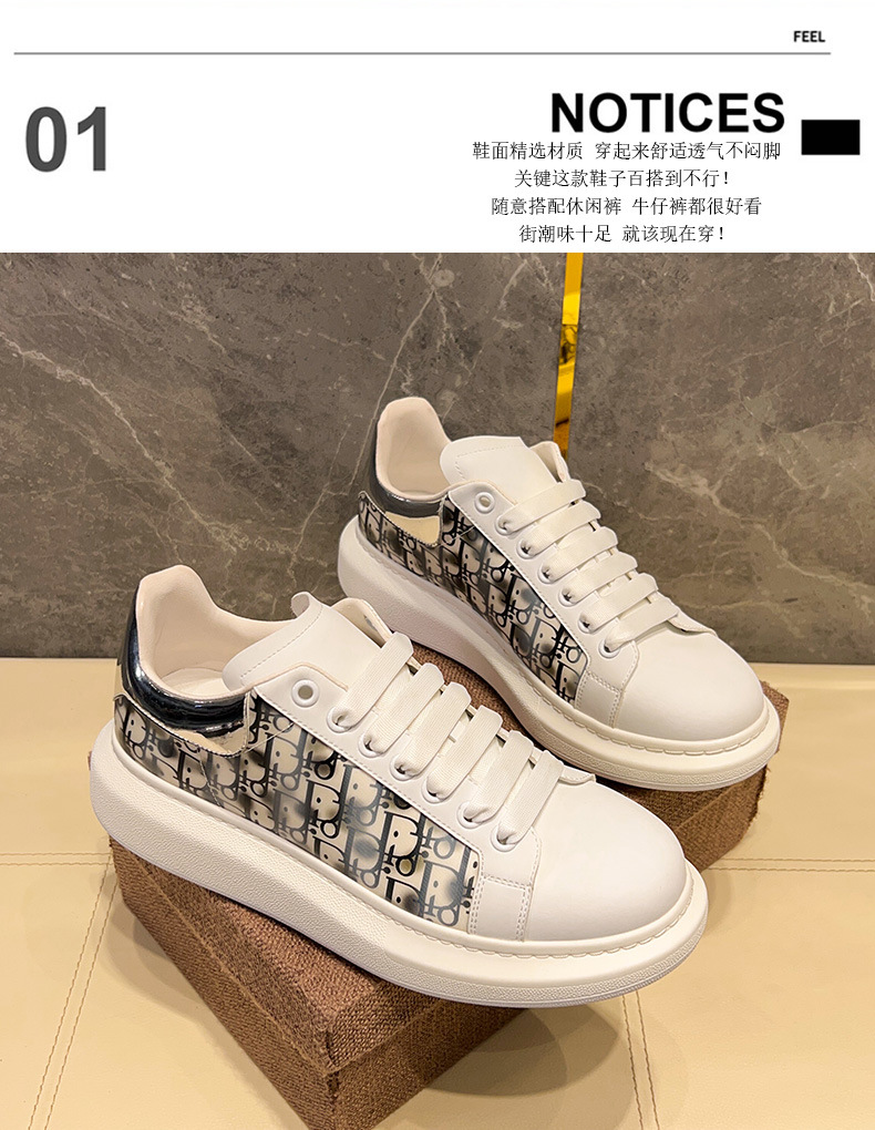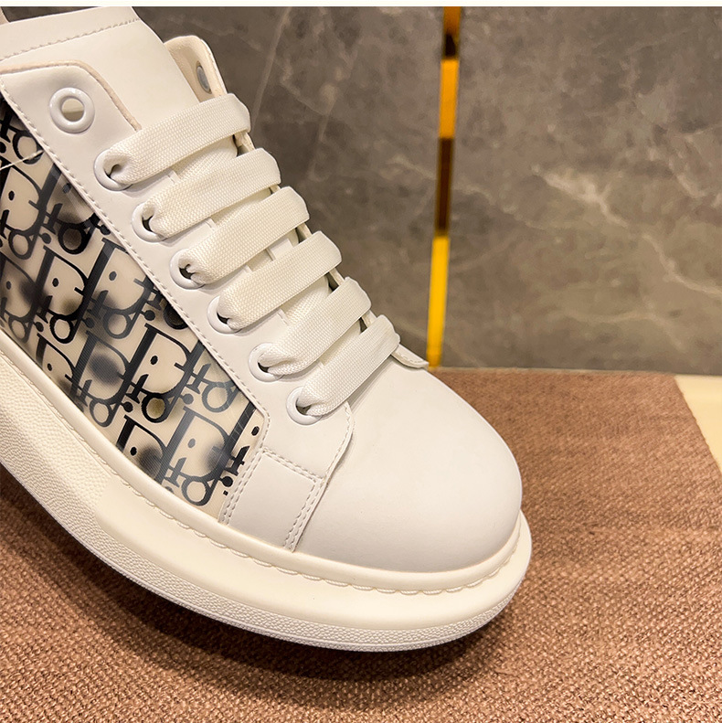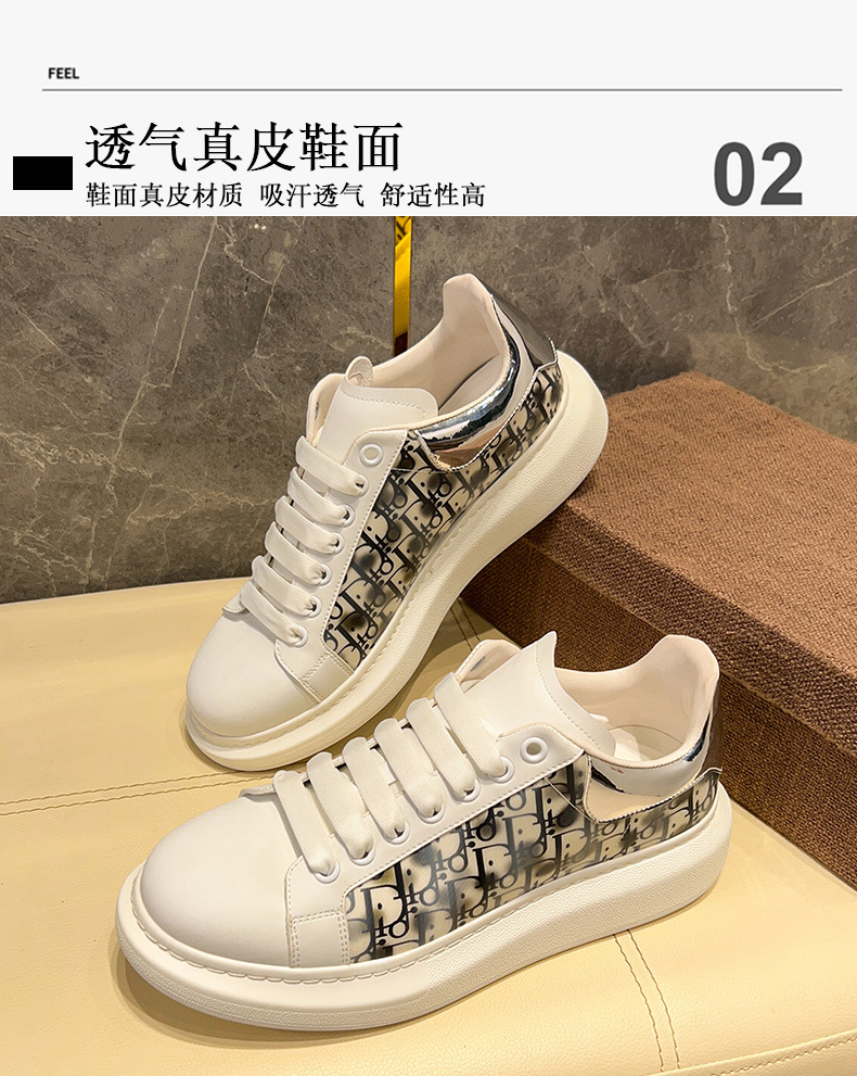 D-格子小白鞋男款2025春季新款潮流真皮透气板鞋时尚百搭厚底休闲鞋