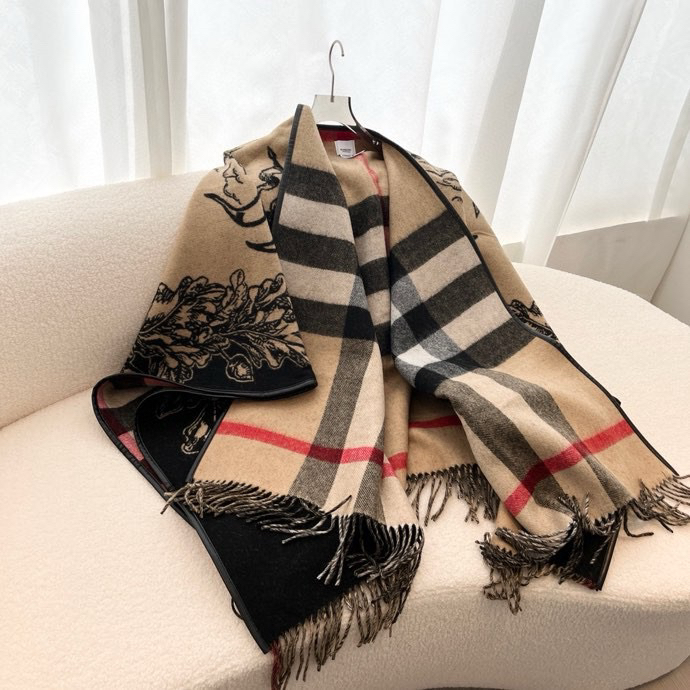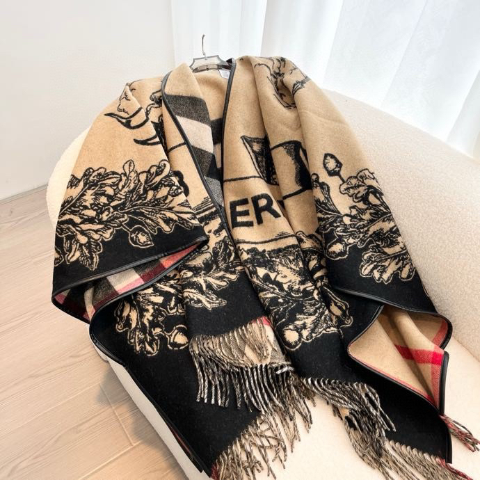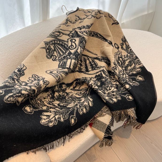 爆款斗篷🔥 冬日必备!精致小羊皮锁边-两面风格 一面战马刺绣图案搭配一面经典格纹,融入创新 比起单一的格纹Logo 更特别一些,美拉德深秋氛围感十足,百搭减龄