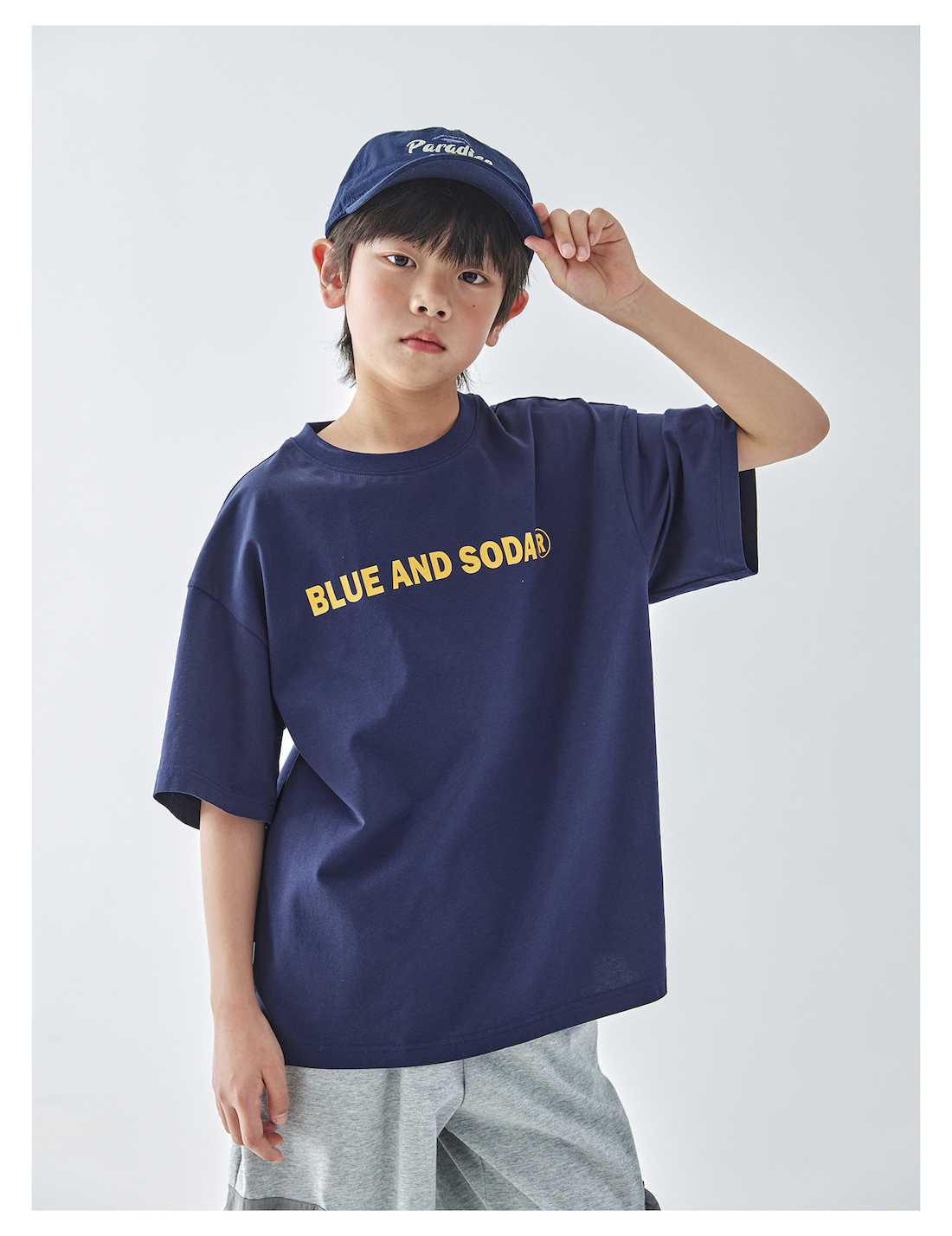 蓝汽水 2025春夏第二波新品简约撞色LOGO印花短袖806B256033JX