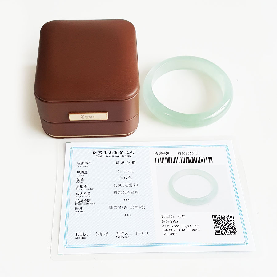 名称 | 天然收藏级细腻无纹裂正桩58号冰种晴水翡翠手镯 |