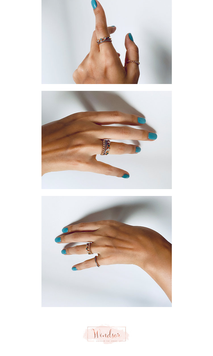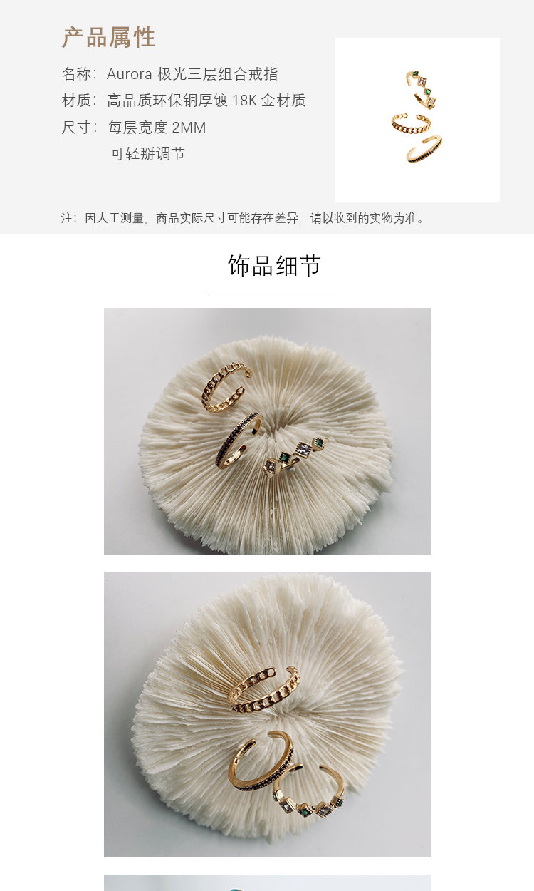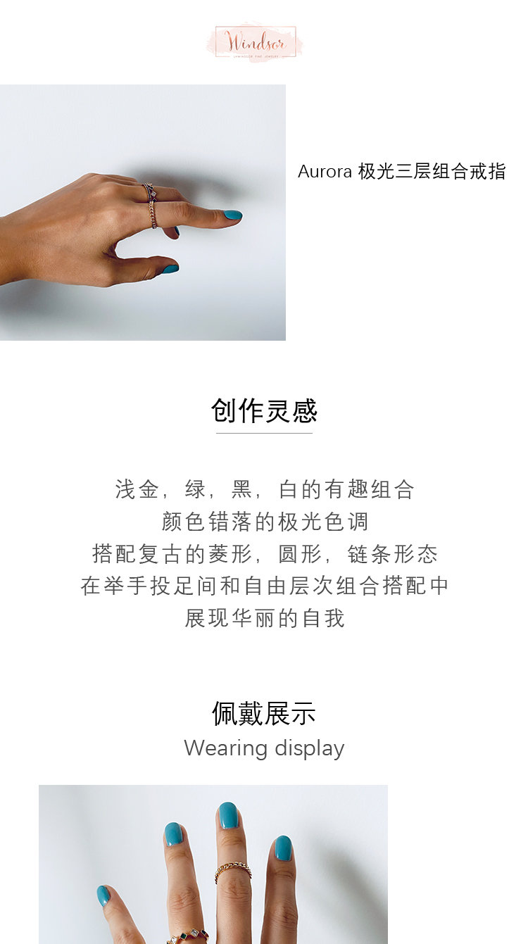 LHWINDSOR Aurora极光三层组合戒指原创设计时尚开口可调节指环