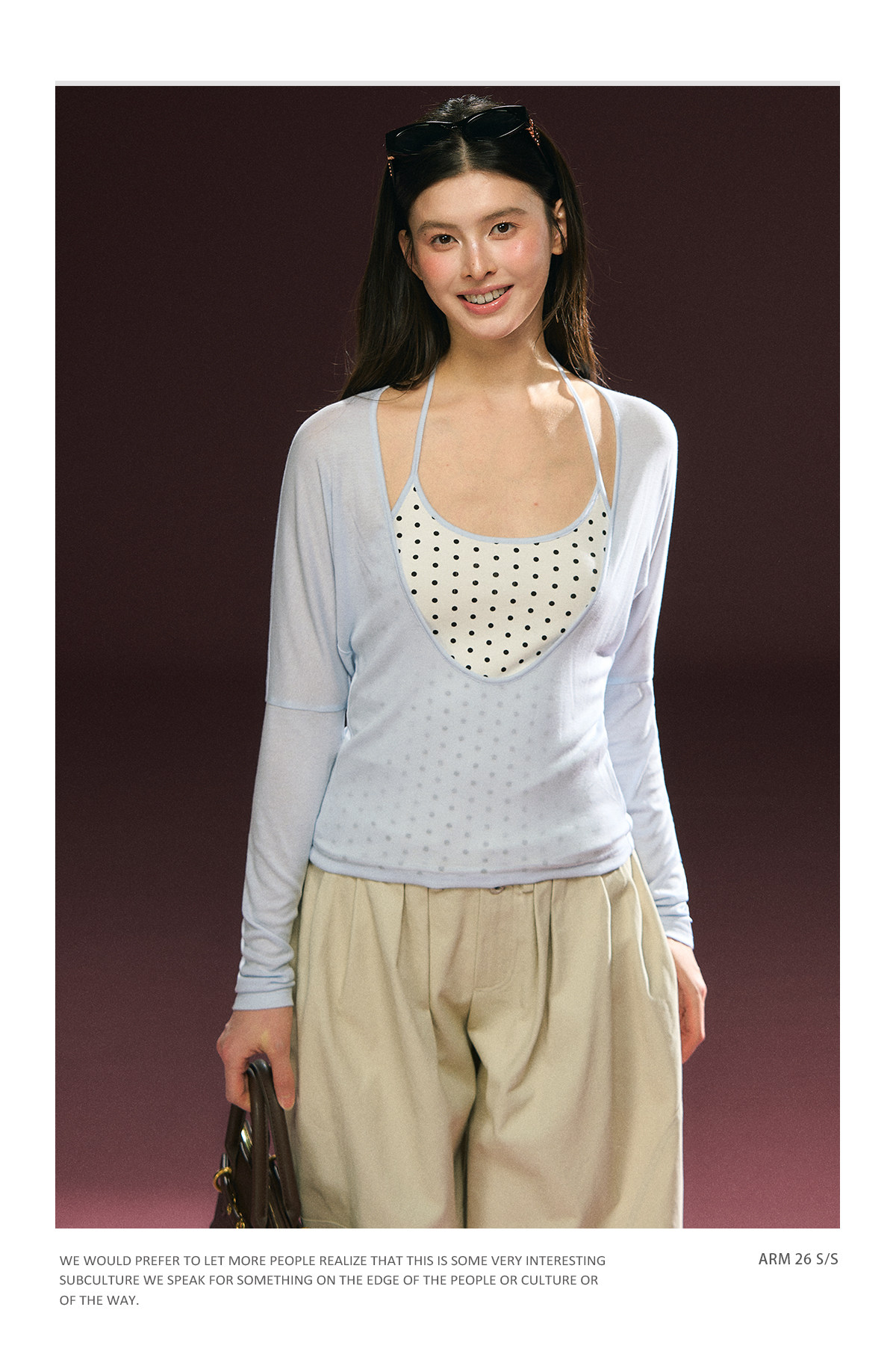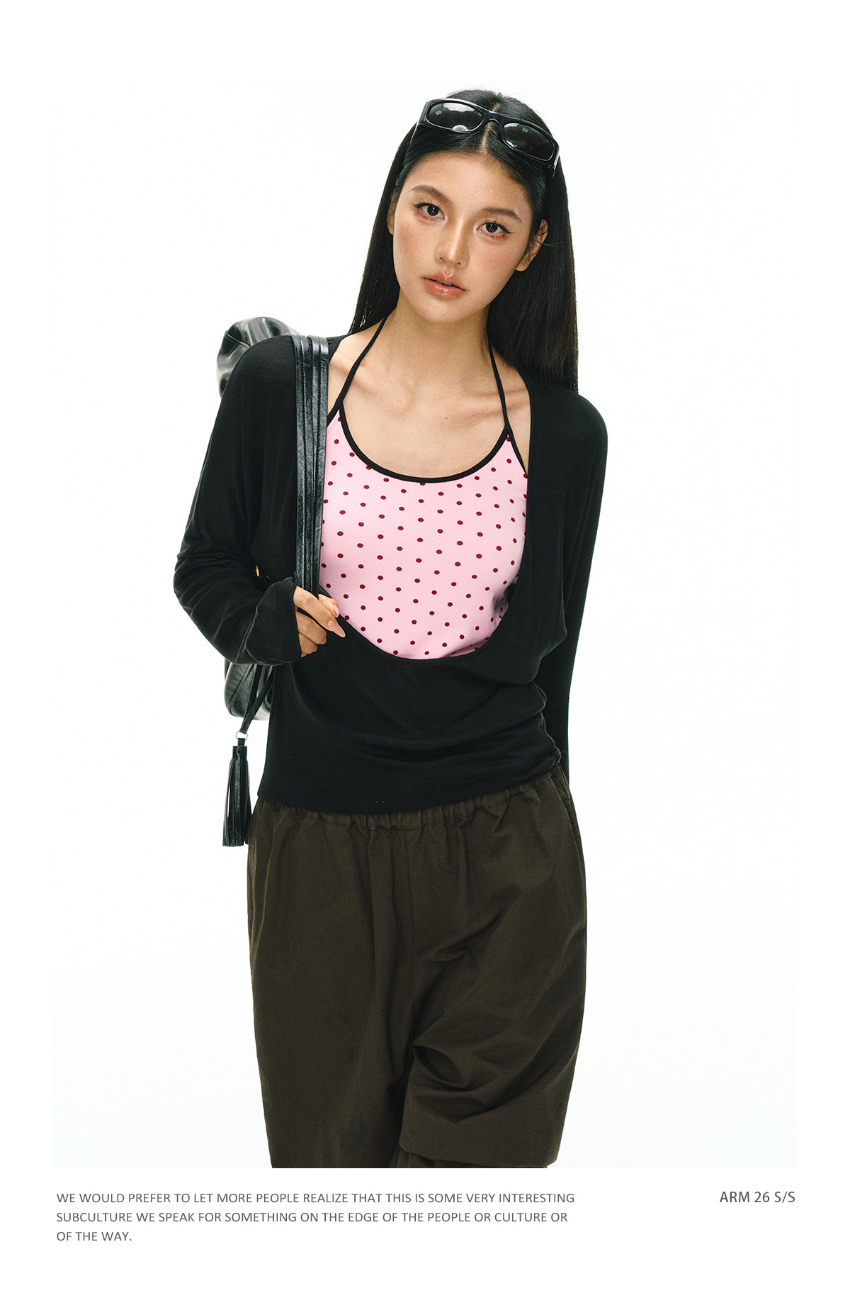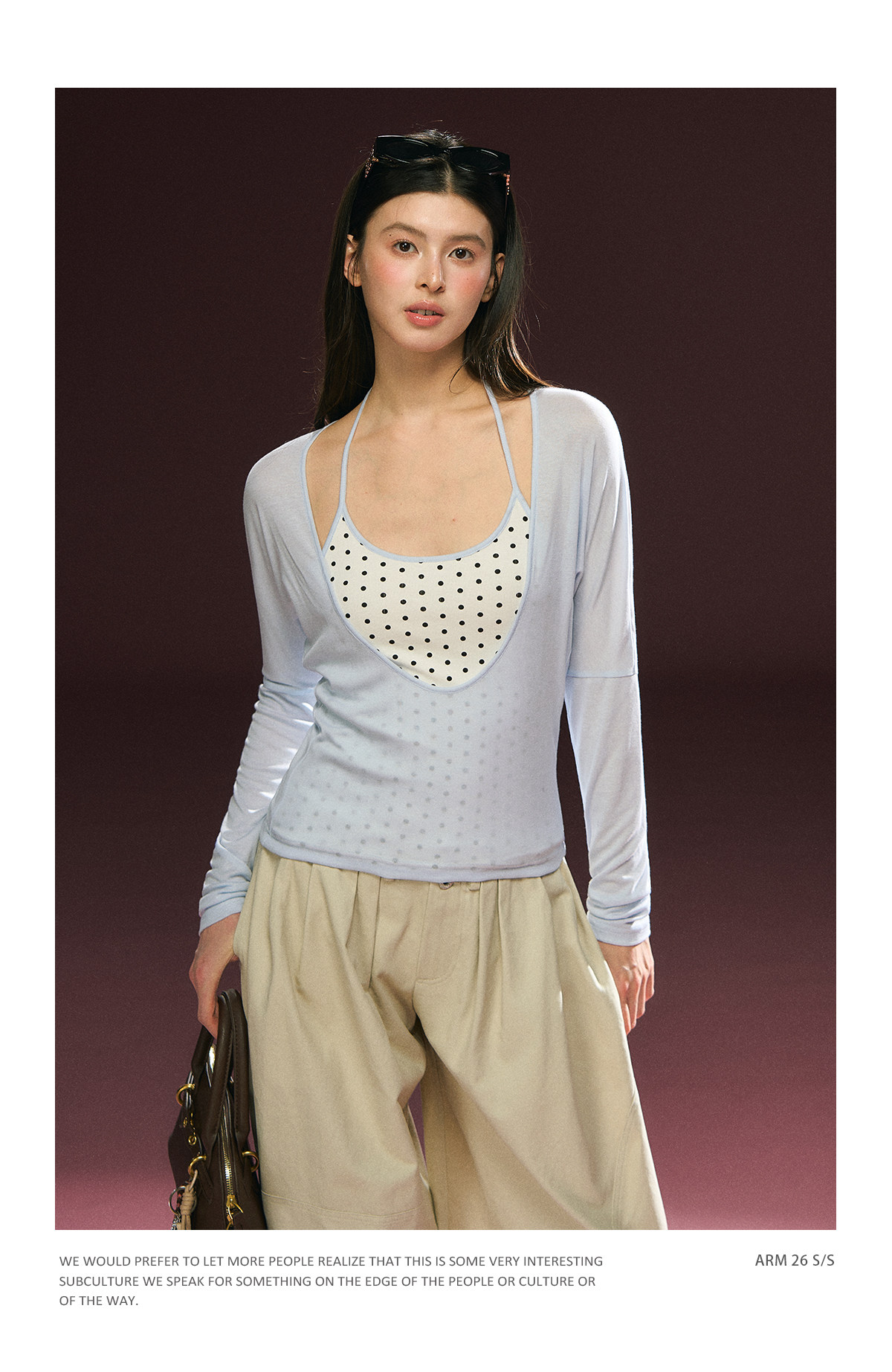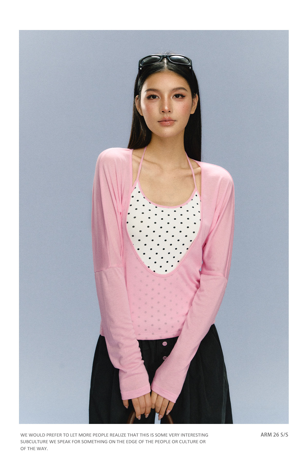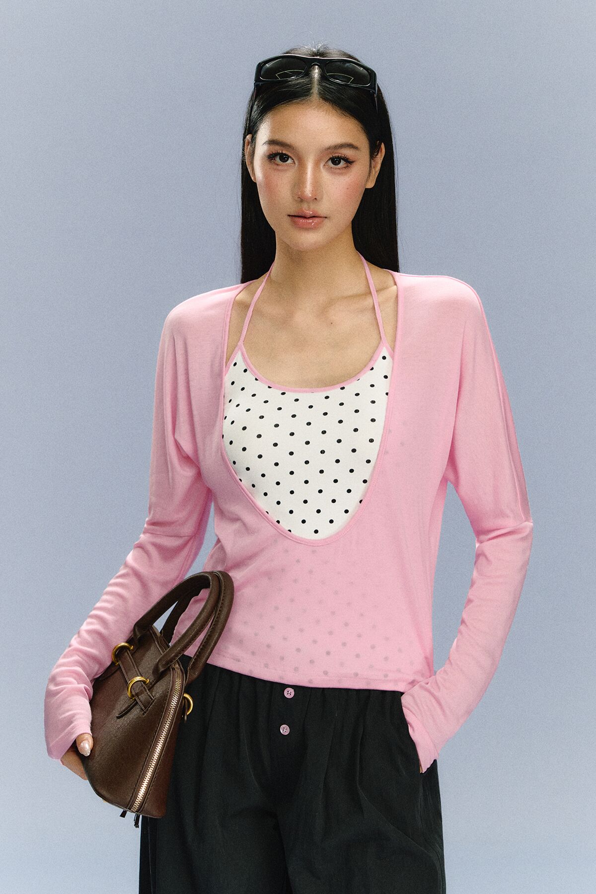 Ariseism 美式复古波点假两件长袖T恤女春季新款修身上衣