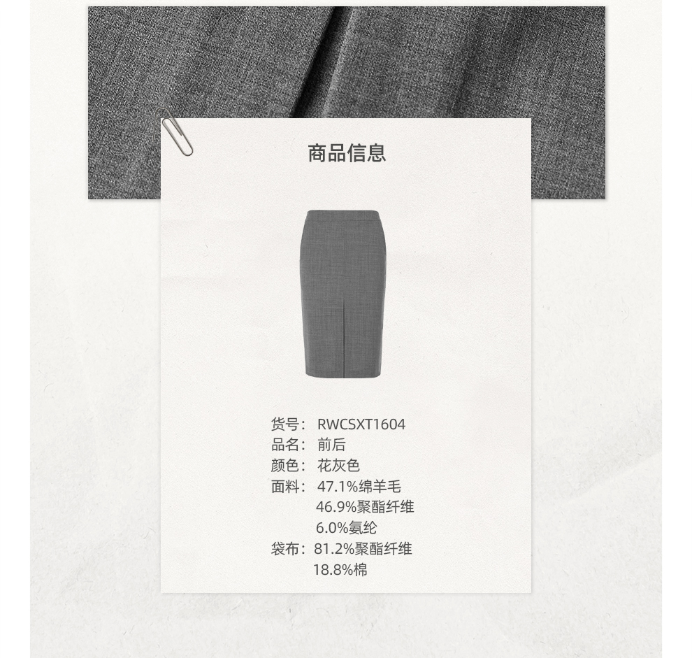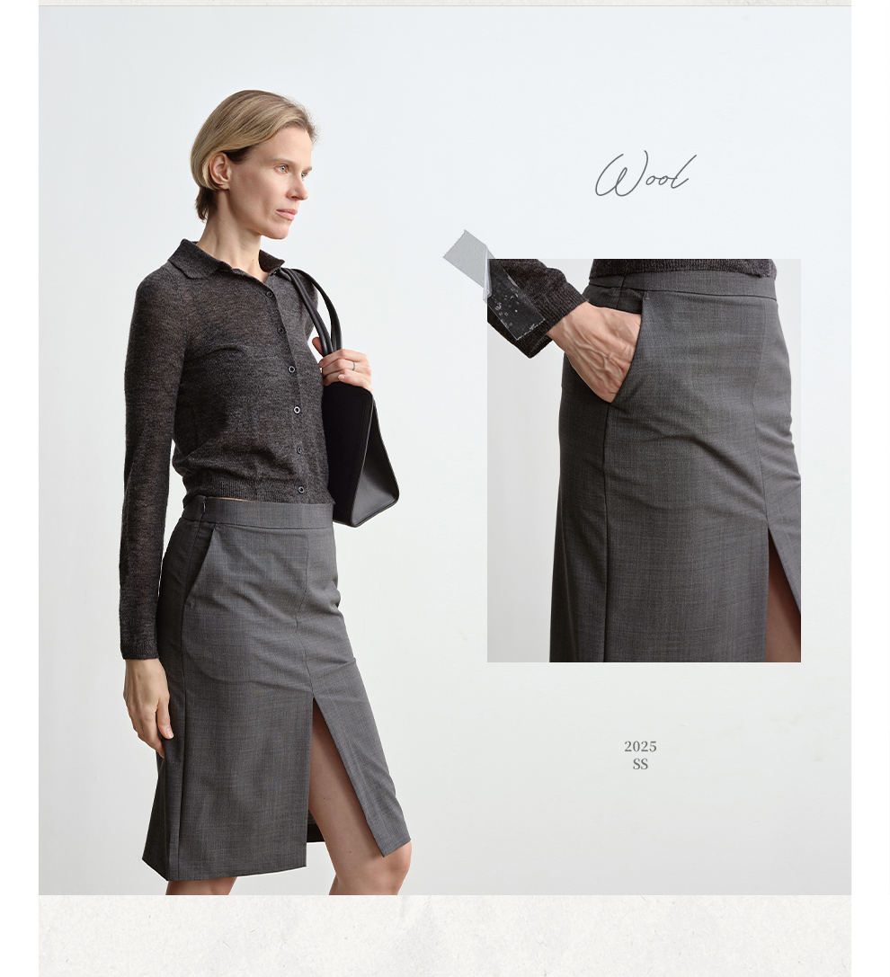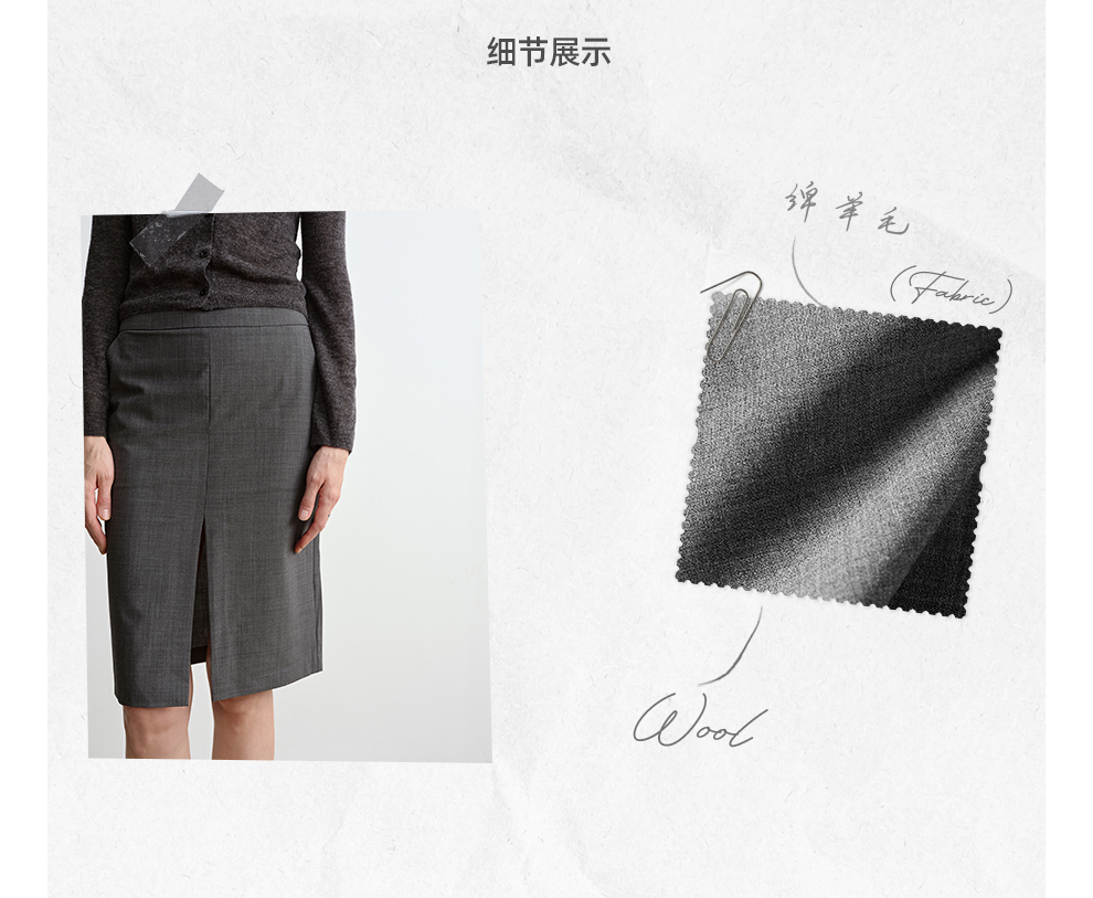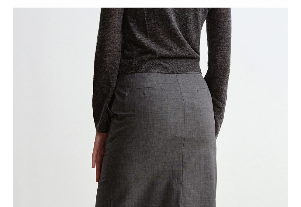 ROMI STUDIO“气质优雅”可机洗绵羊毛混纺前开叉半身裙 RWCSXT1604(现货)
