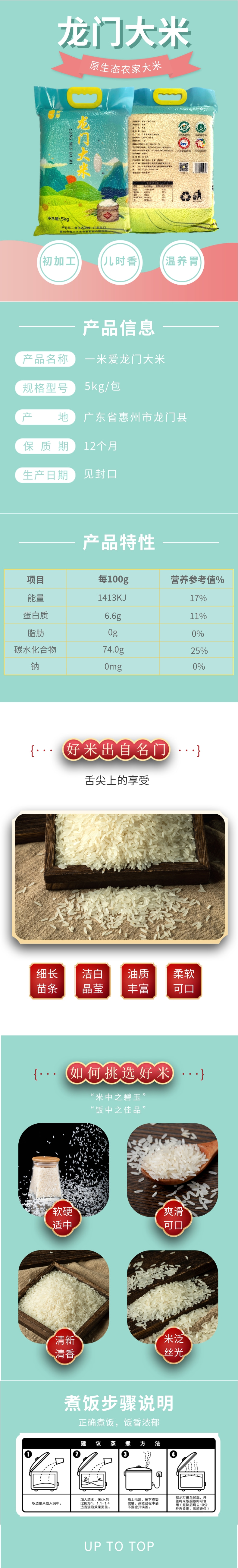 【顺丰包邮】广东惠州龙门一米爱龙门大米(真空包装)5kg/袋