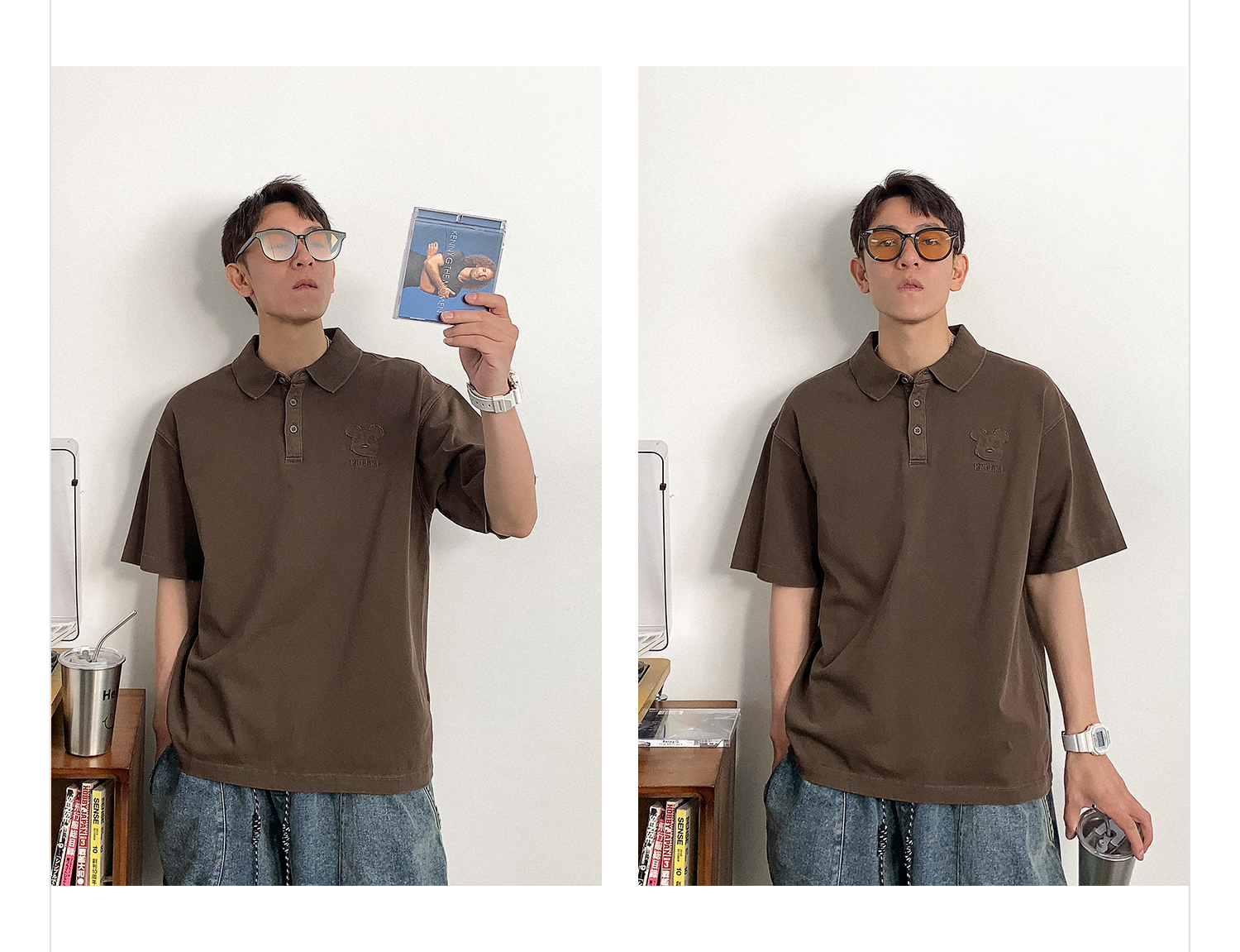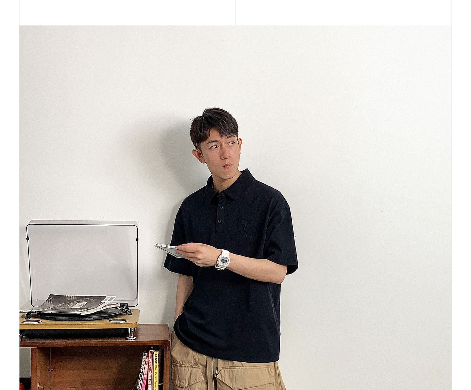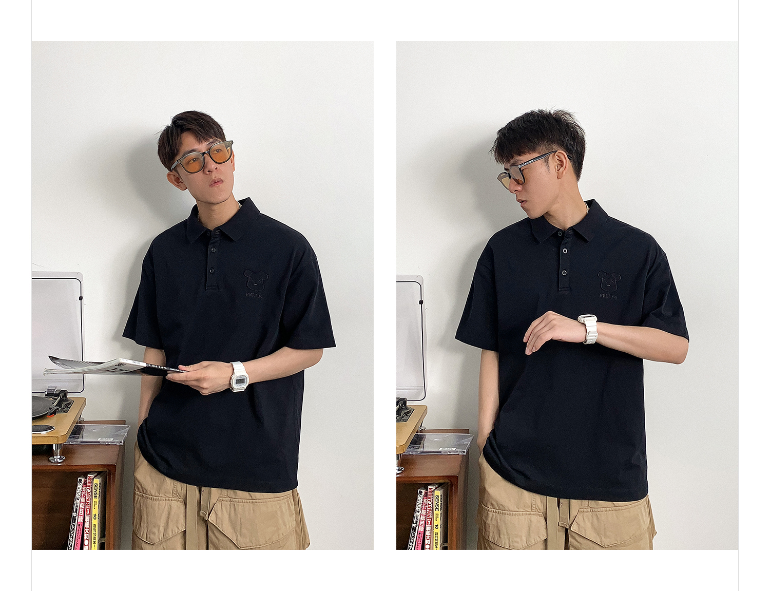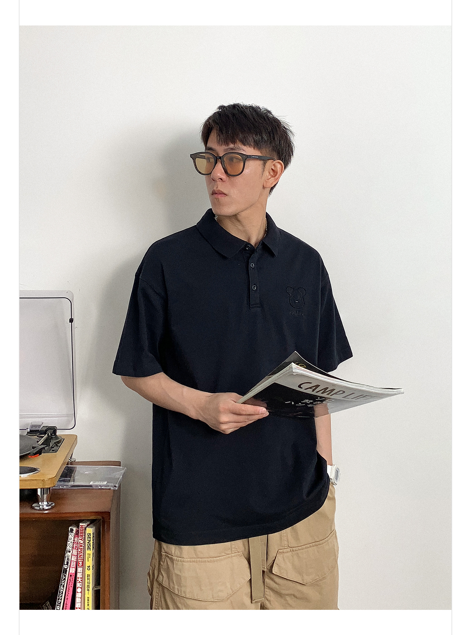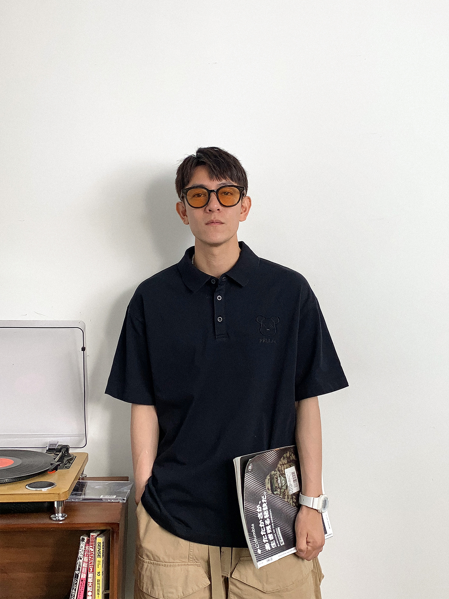 徐太浪日系简约黑色短袖Polo衫男夏季潮牌美式休闲小熊翻领保罗衫