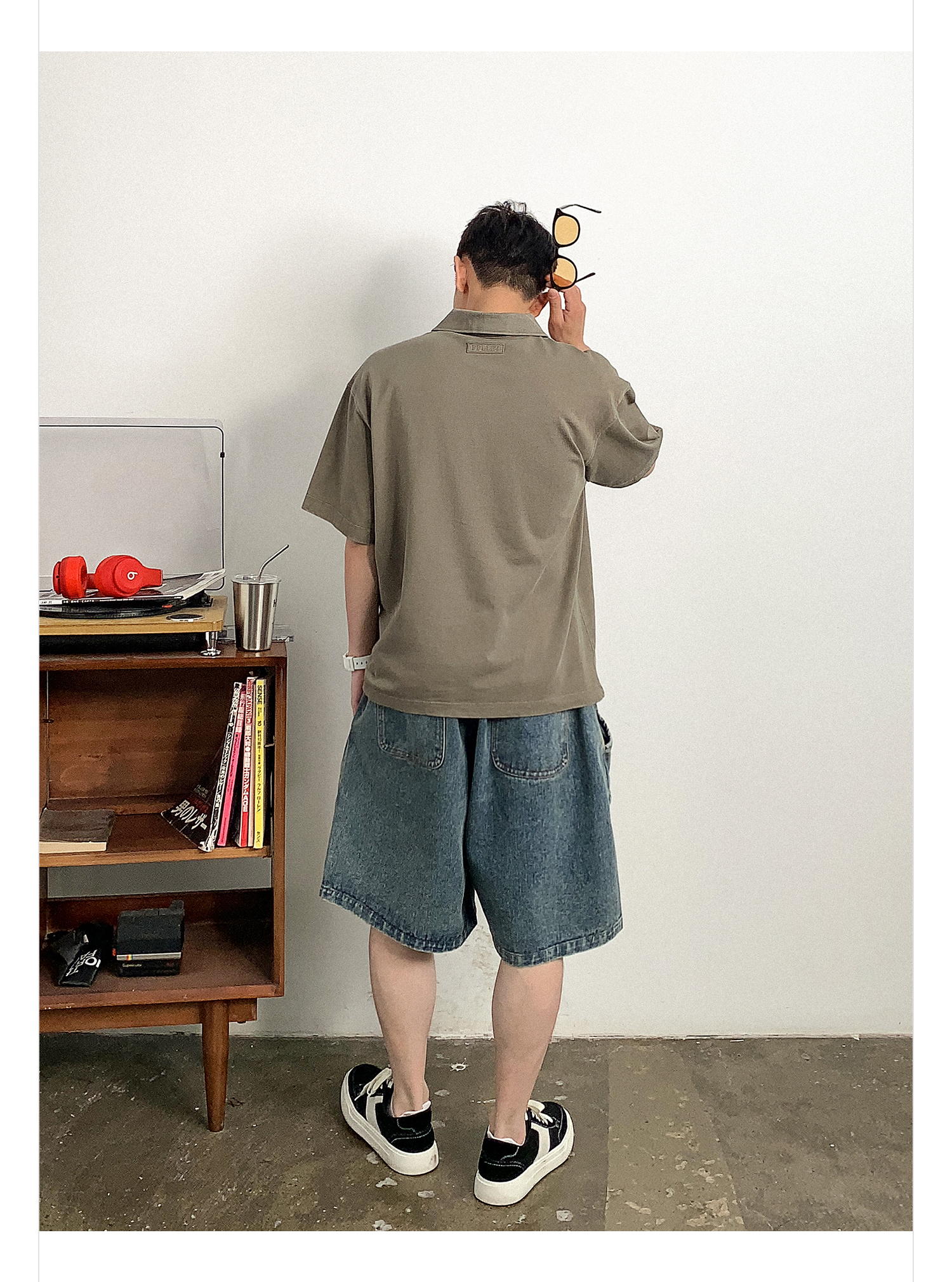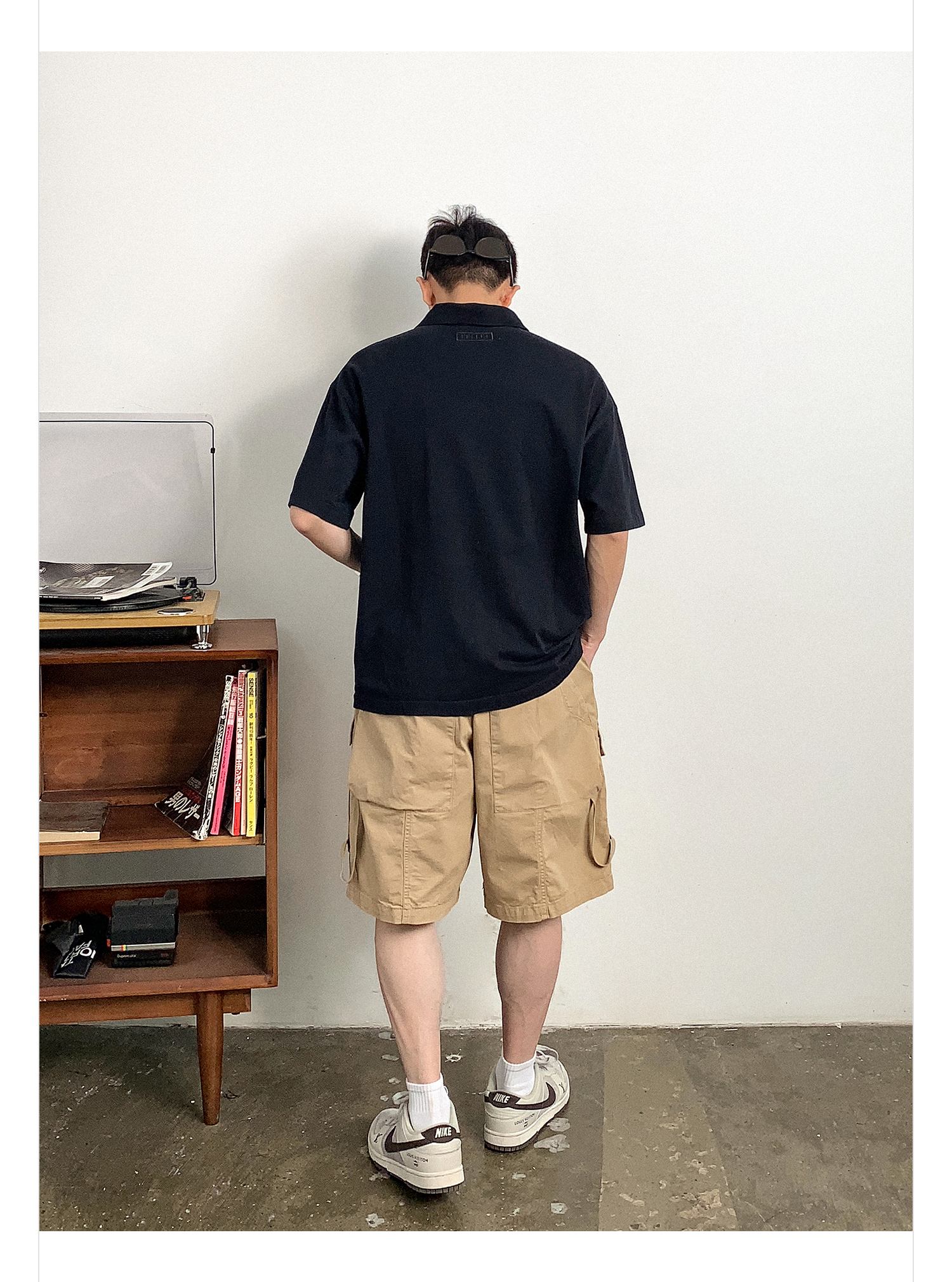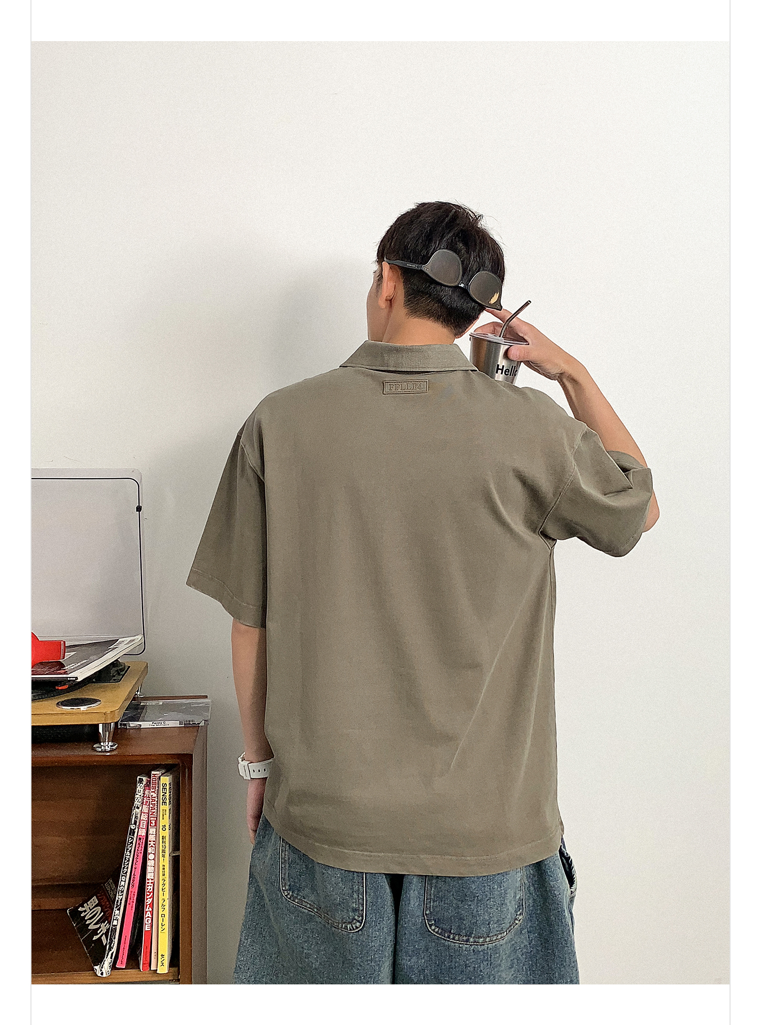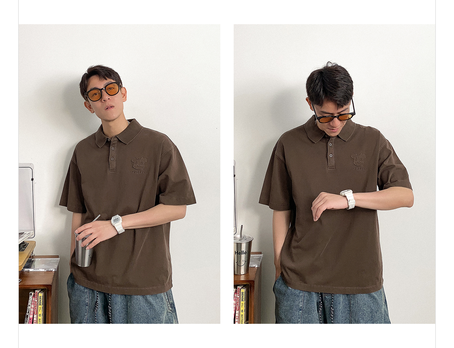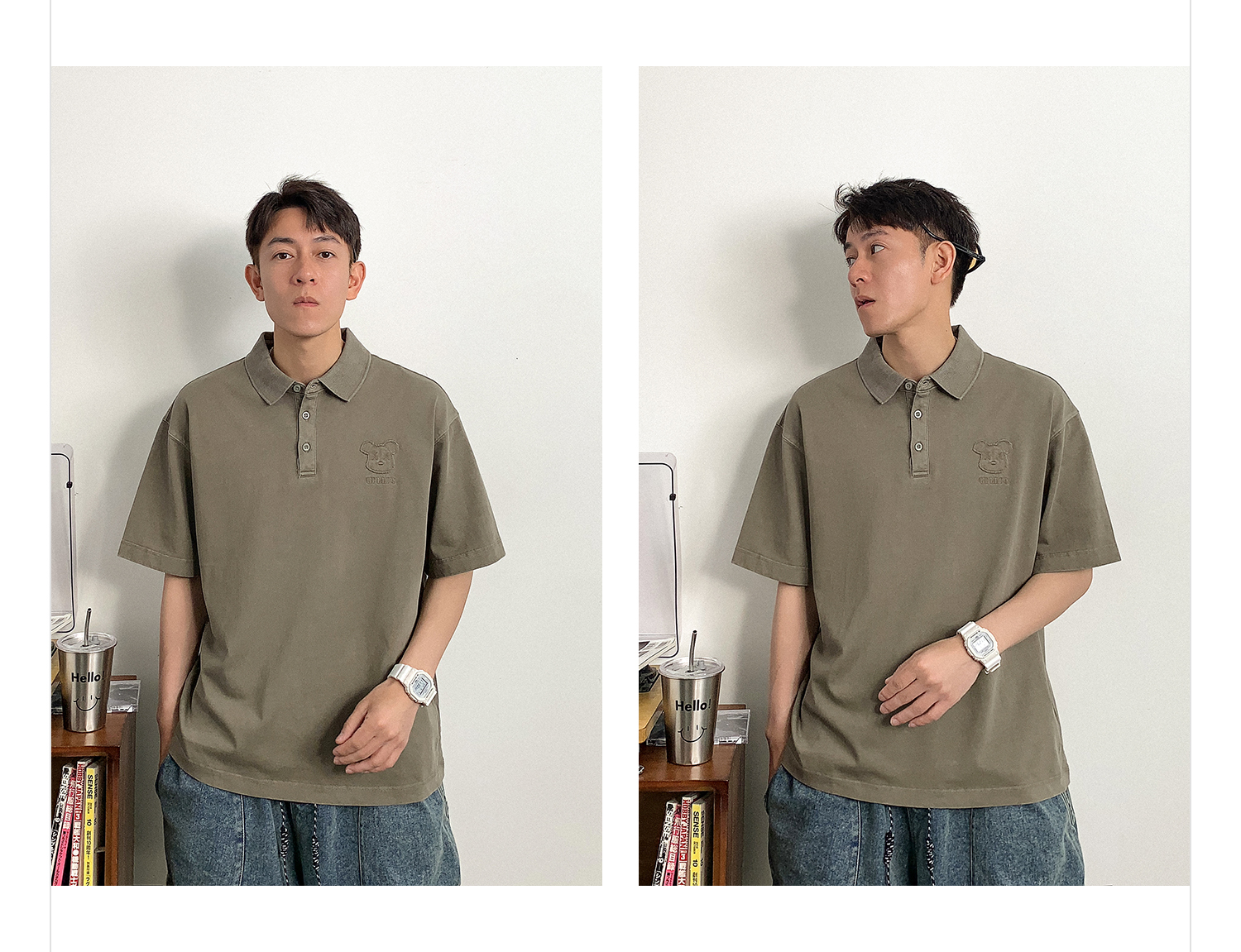 徐太浪日系简约黑色短袖Polo衫男夏季潮牌美式休闲小熊翻领保罗衫