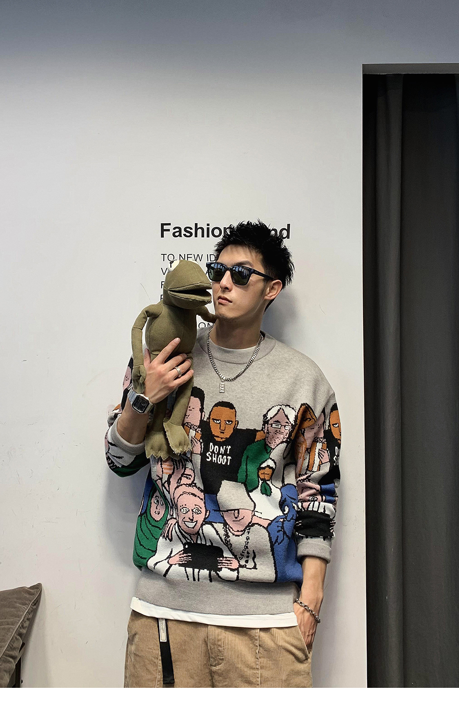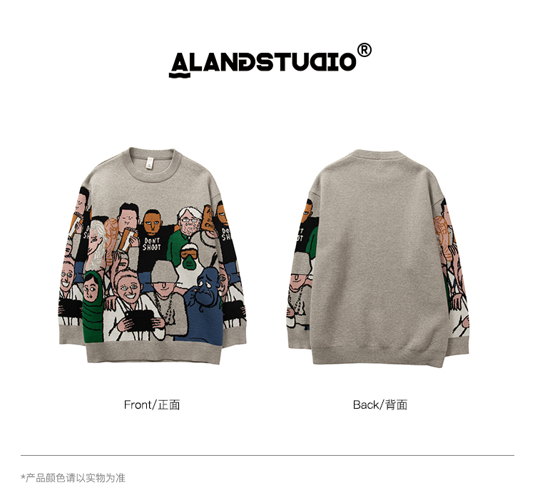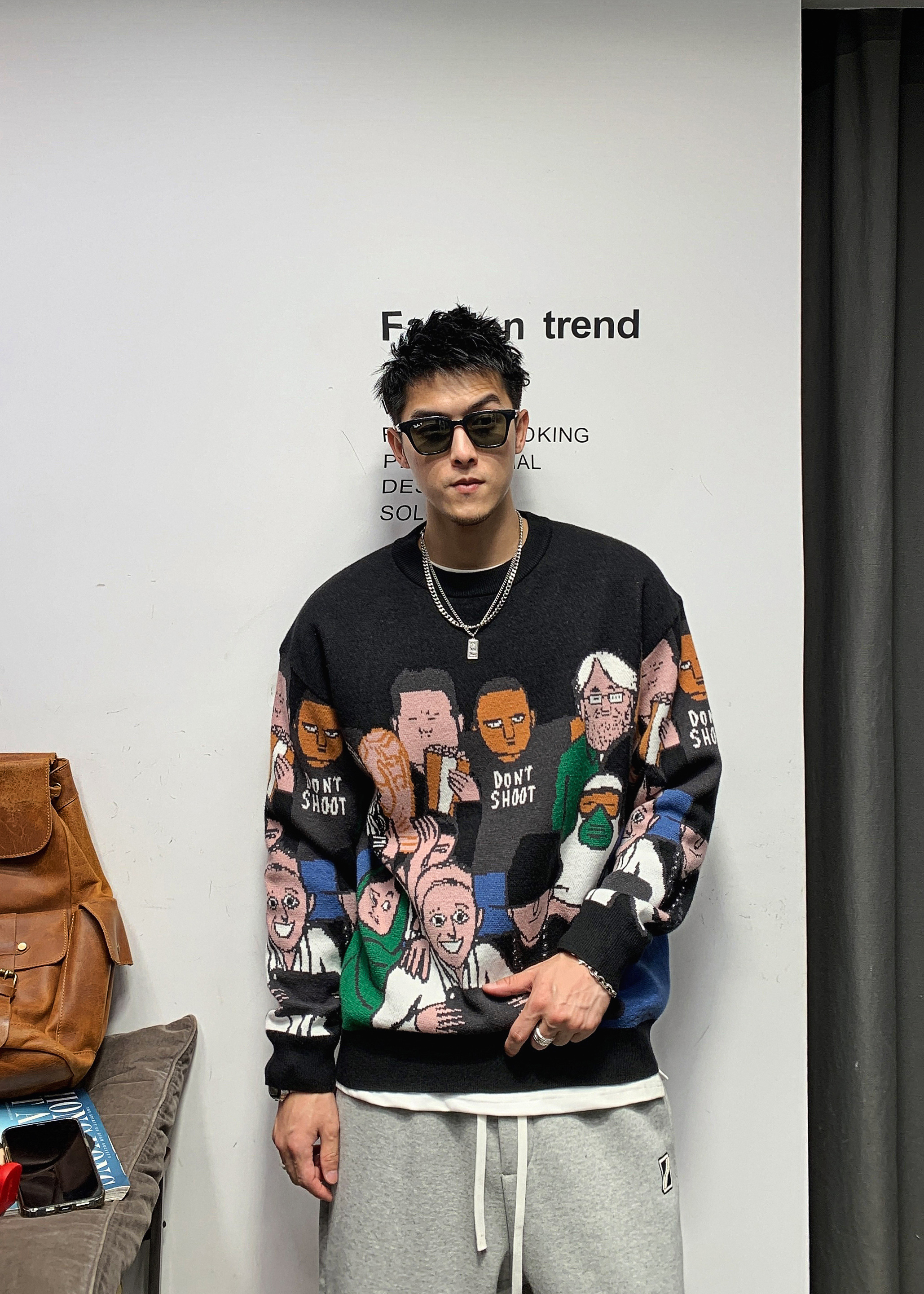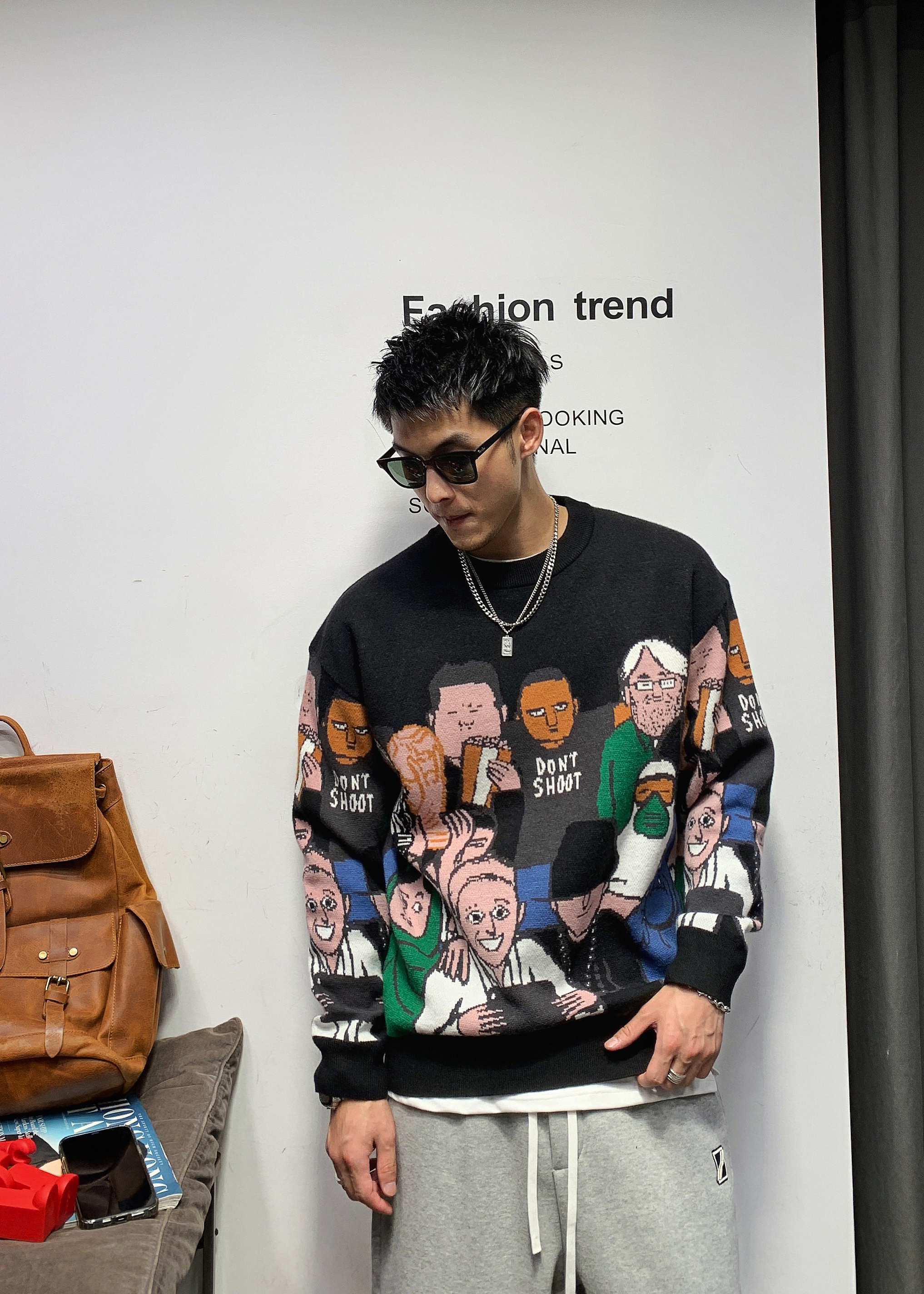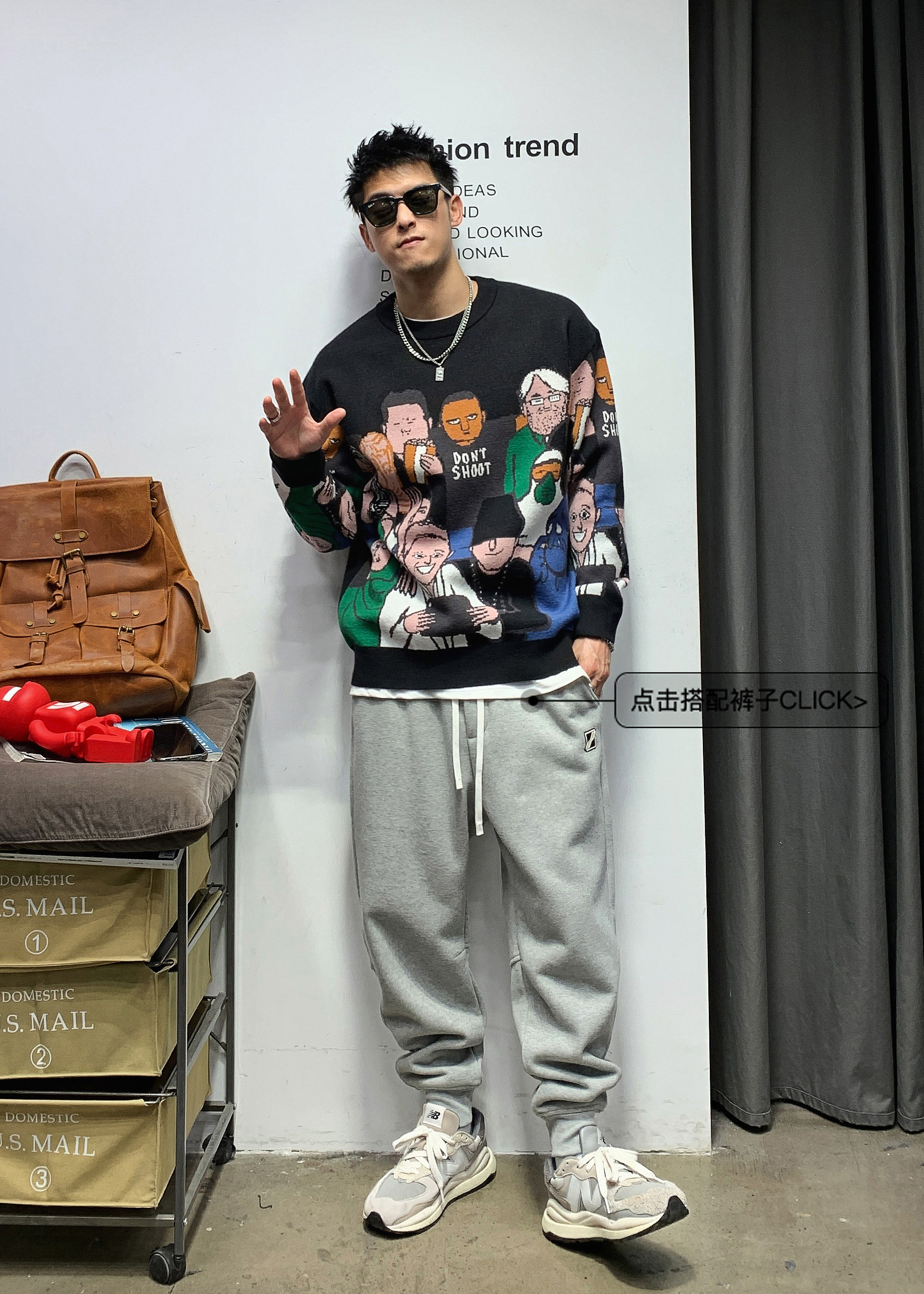 徐太浪加厚毛衣春2023新款男士针织打底衫美式复古圆领套头上衣潮