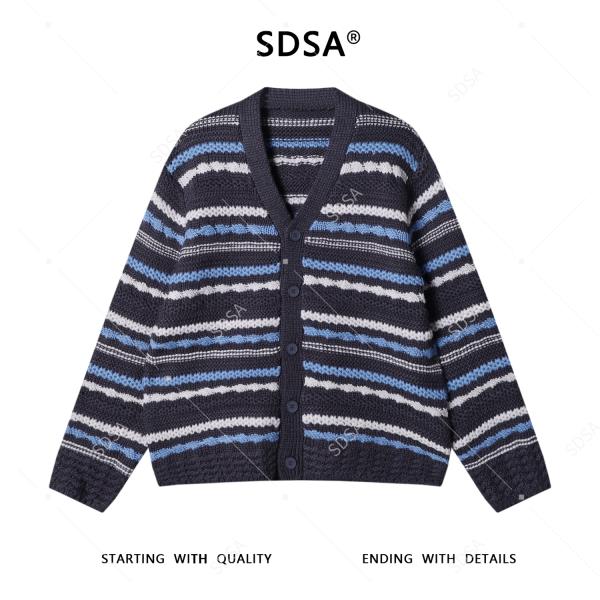 72598SDSA男士秋冬新款痞帅男装潮牌撞色条纹针织衫纽扣开衫V领毛衣潮