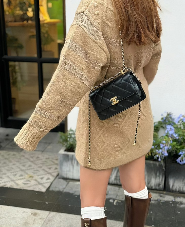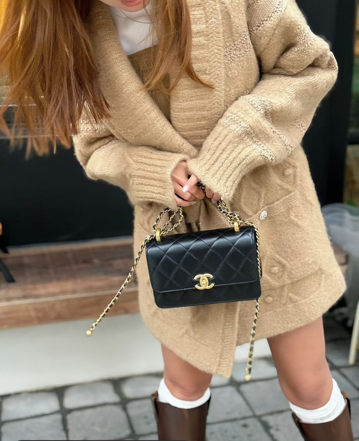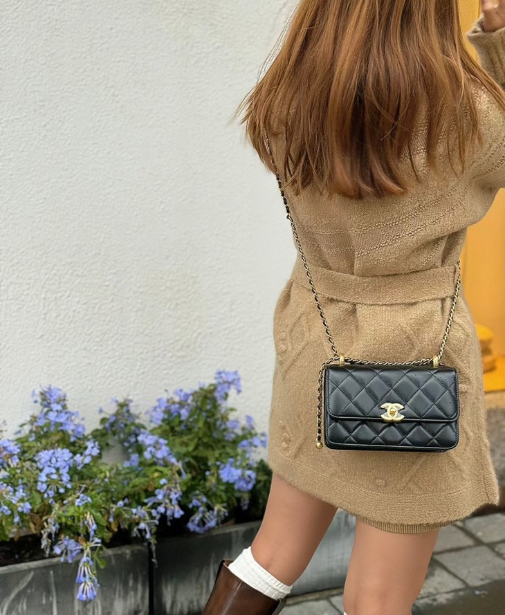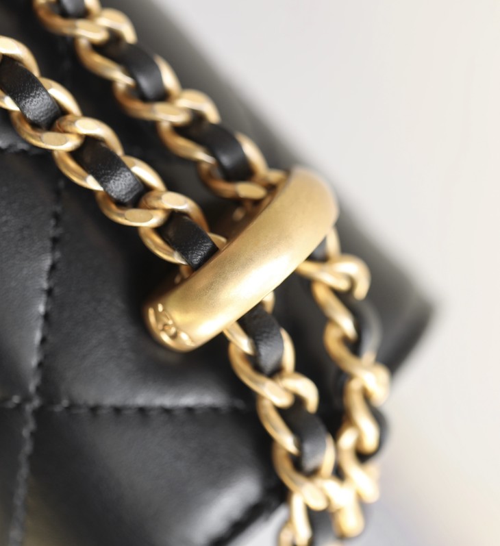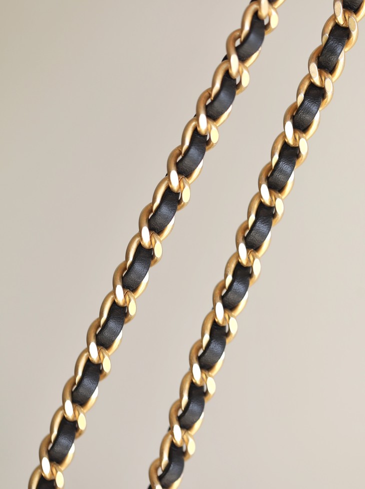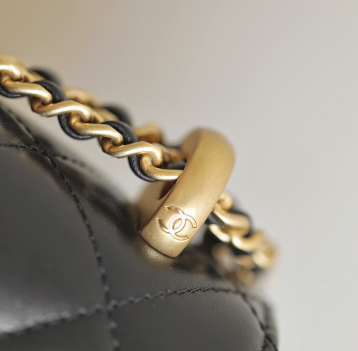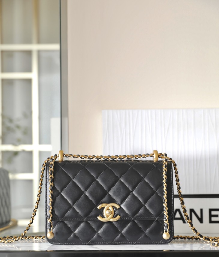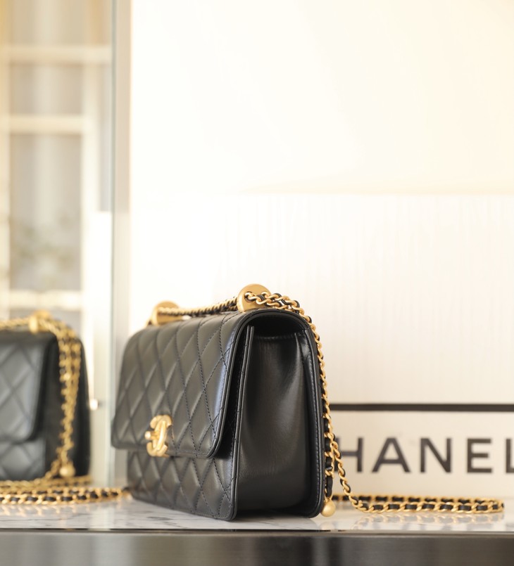 新品到货𝗖𝗵𝗮𝗻𝗲𝟭 𝟮𝟰𝗖早春 双金珠口盖包 黑色 专柜售价𝟦𝟨𝟪𝟢𝟢𝗋𝗆𝖻购入开发〰️ 全新𝟤𝟦𝖢金珠双链设计魅力无敌❕ 抽绳式调节设计链条长短〰️ 轻松驾驭各种背法,随心所向 斜挎,单肩、腋下包简直绝了 五金:厚镀𝟤𝟦𝗄复古金 皮料:𝖠𝗇𝗍𝗂𝖻𝖺亮面𝗓𝗉小牛皮