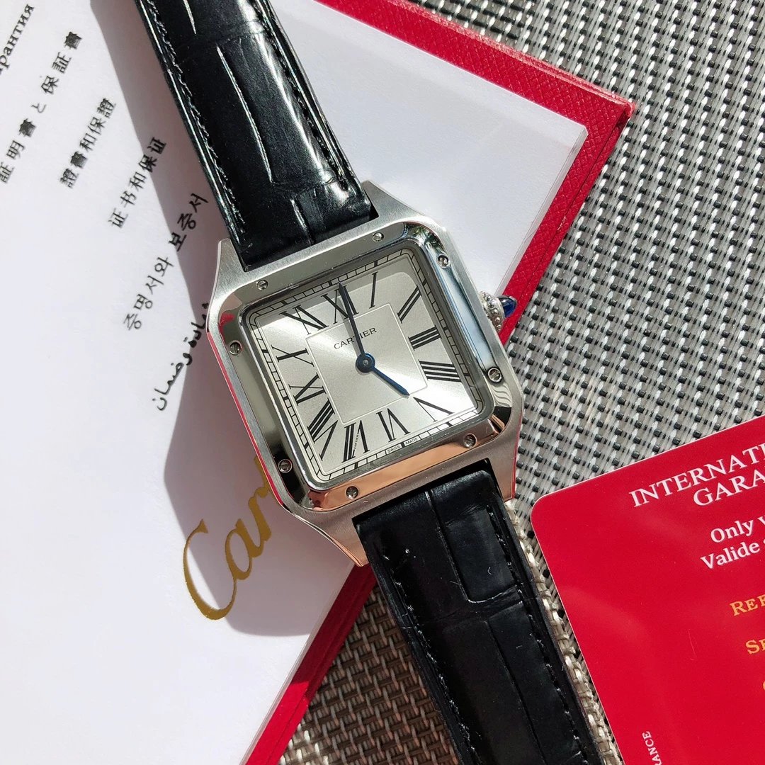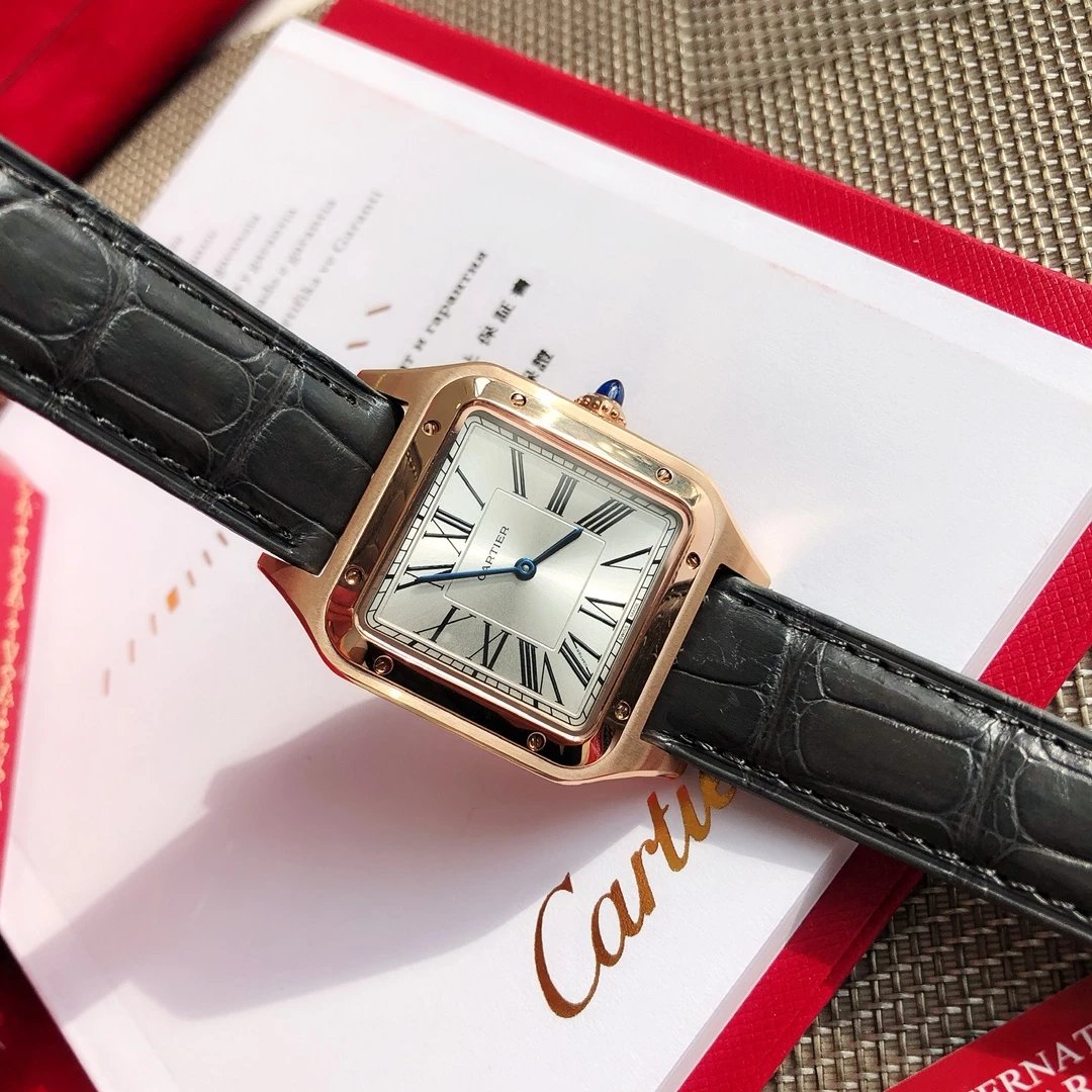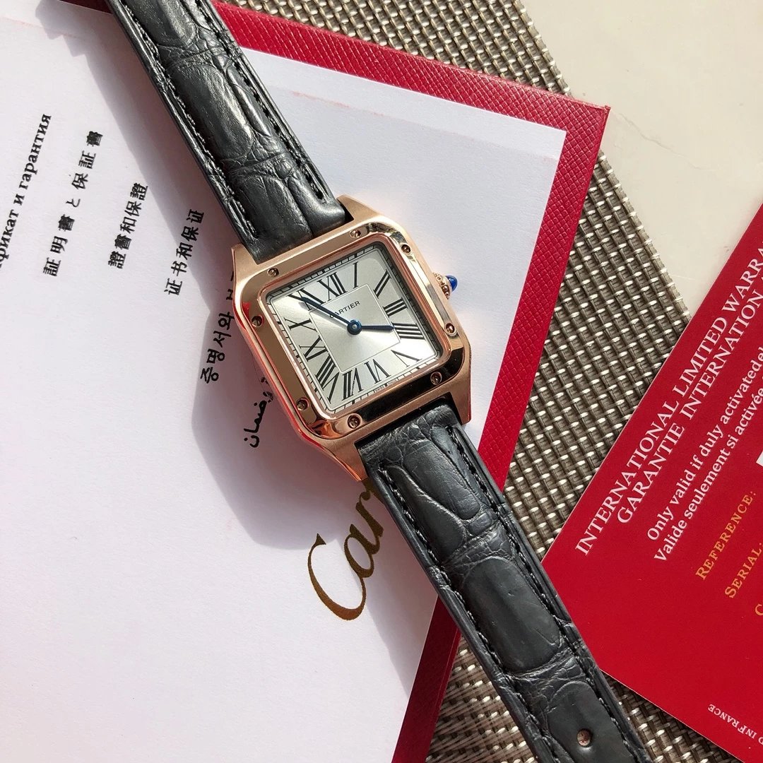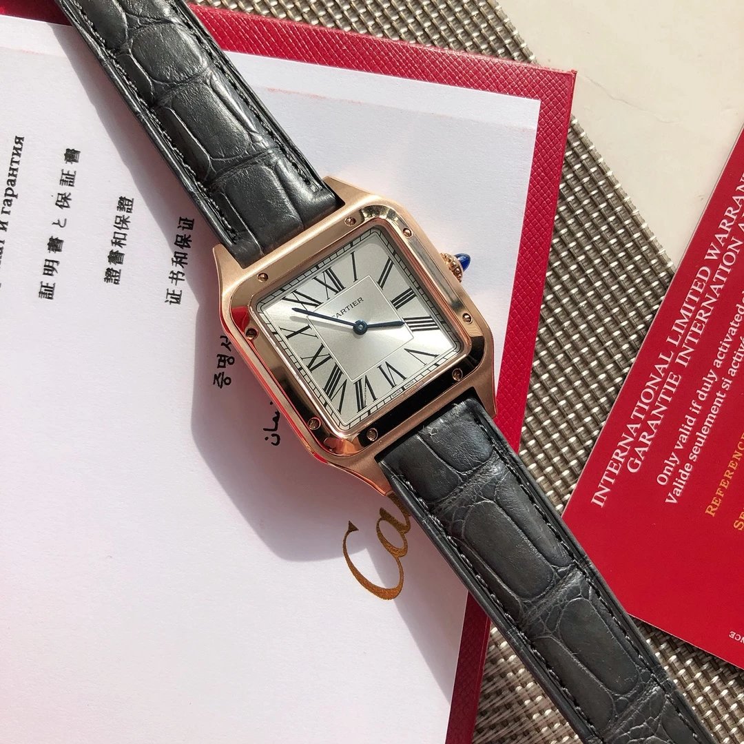 卡地亚-高端硬货又一重磅来袭!卡地亚山度士 杜蒙系列鳄鱼皮带手表欧洲渠道!其他尺寸联系客服(ZT*SH)