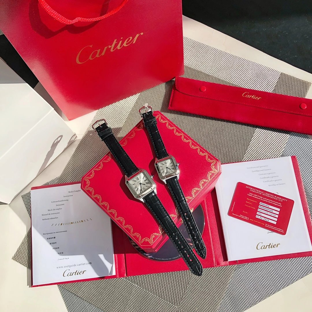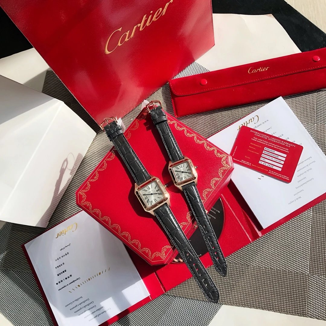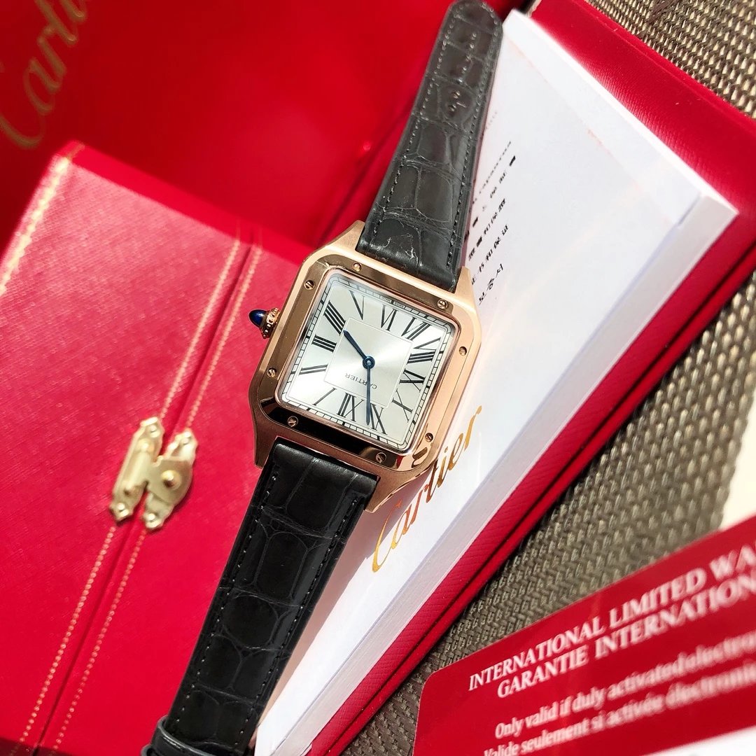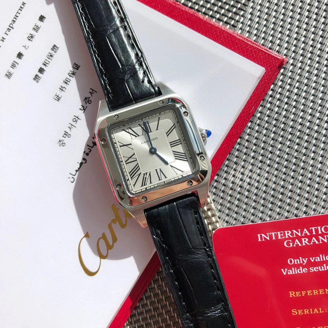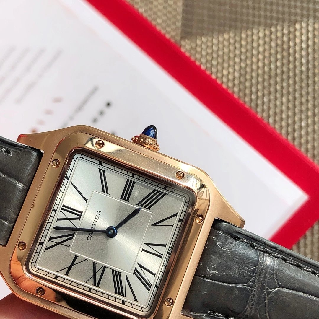卡地亚-高端硬货又一重磅来袭!卡地亚山度士 杜蒙系列鳄鱼皮带手表欧洲渠道!其他尺寸联系客服(ZT*SH)