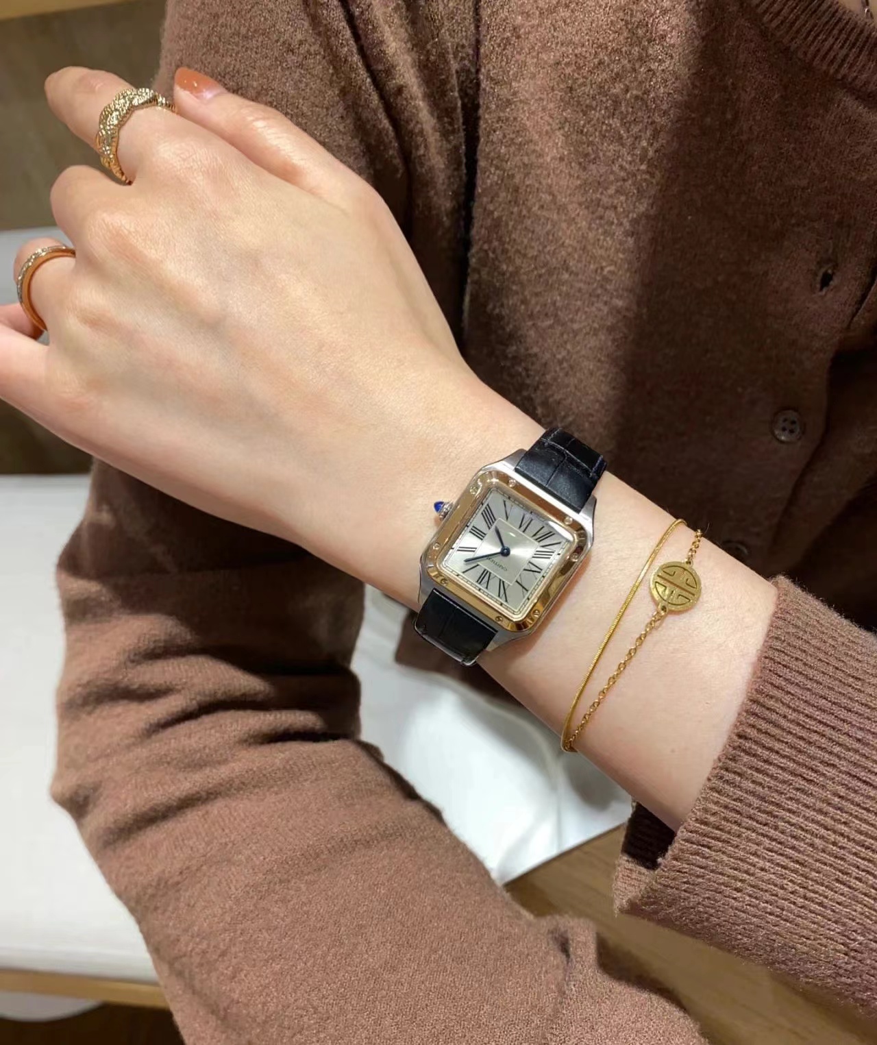 卡地亚杜蒙系列鳄鱼皮带手表欧洲渠道,每到年底国外很多代工都会流点这种很贵的表出来