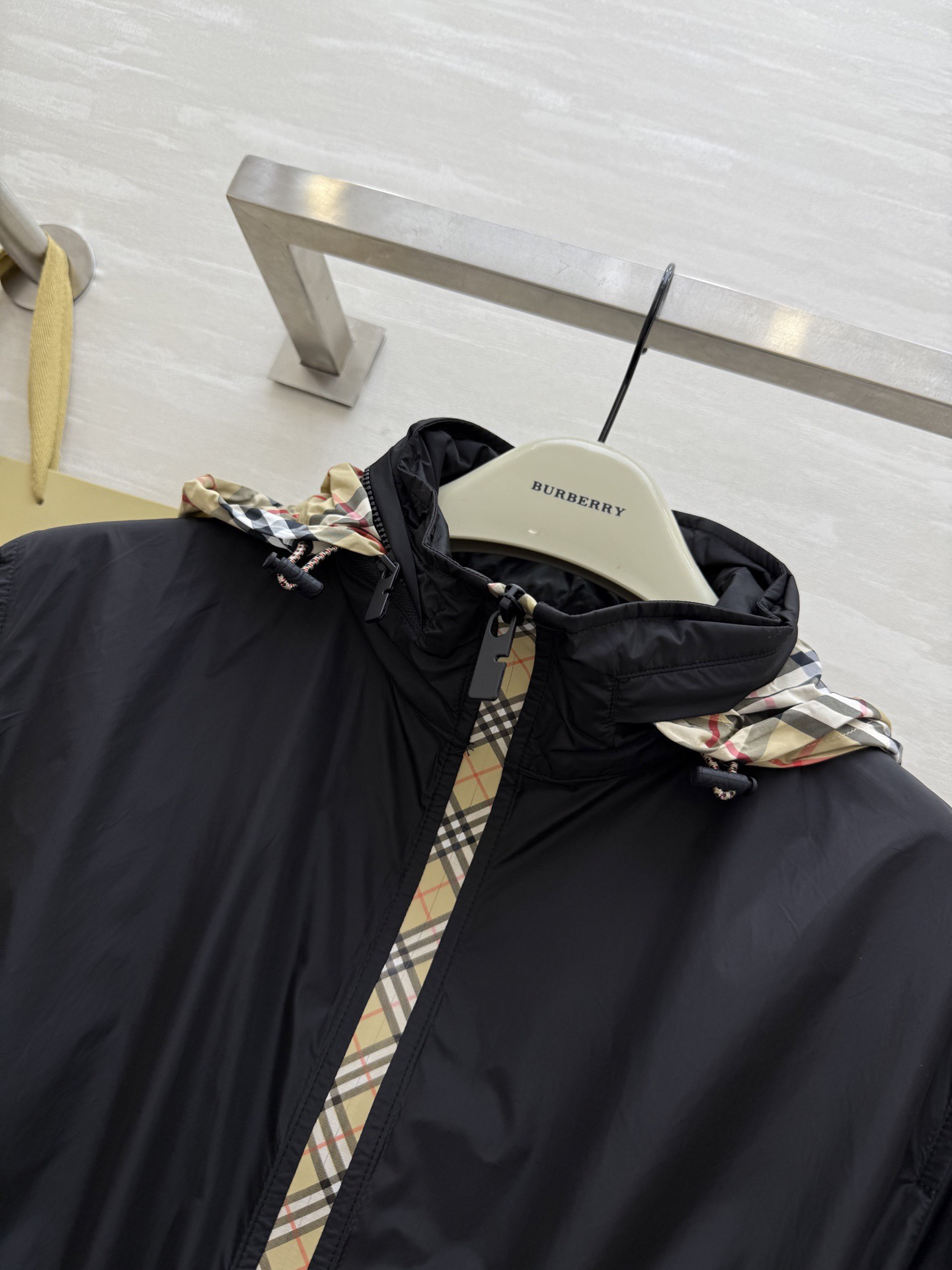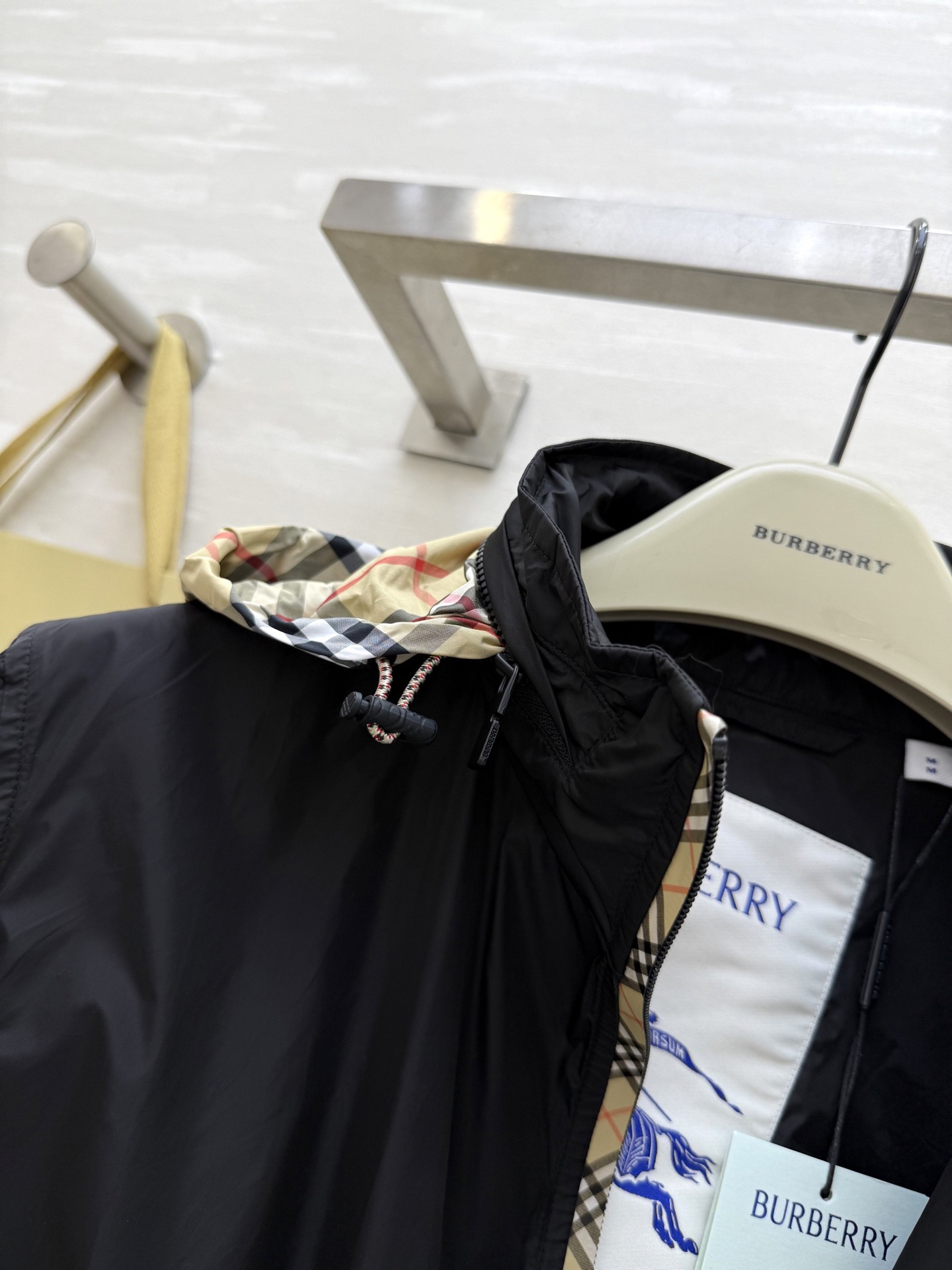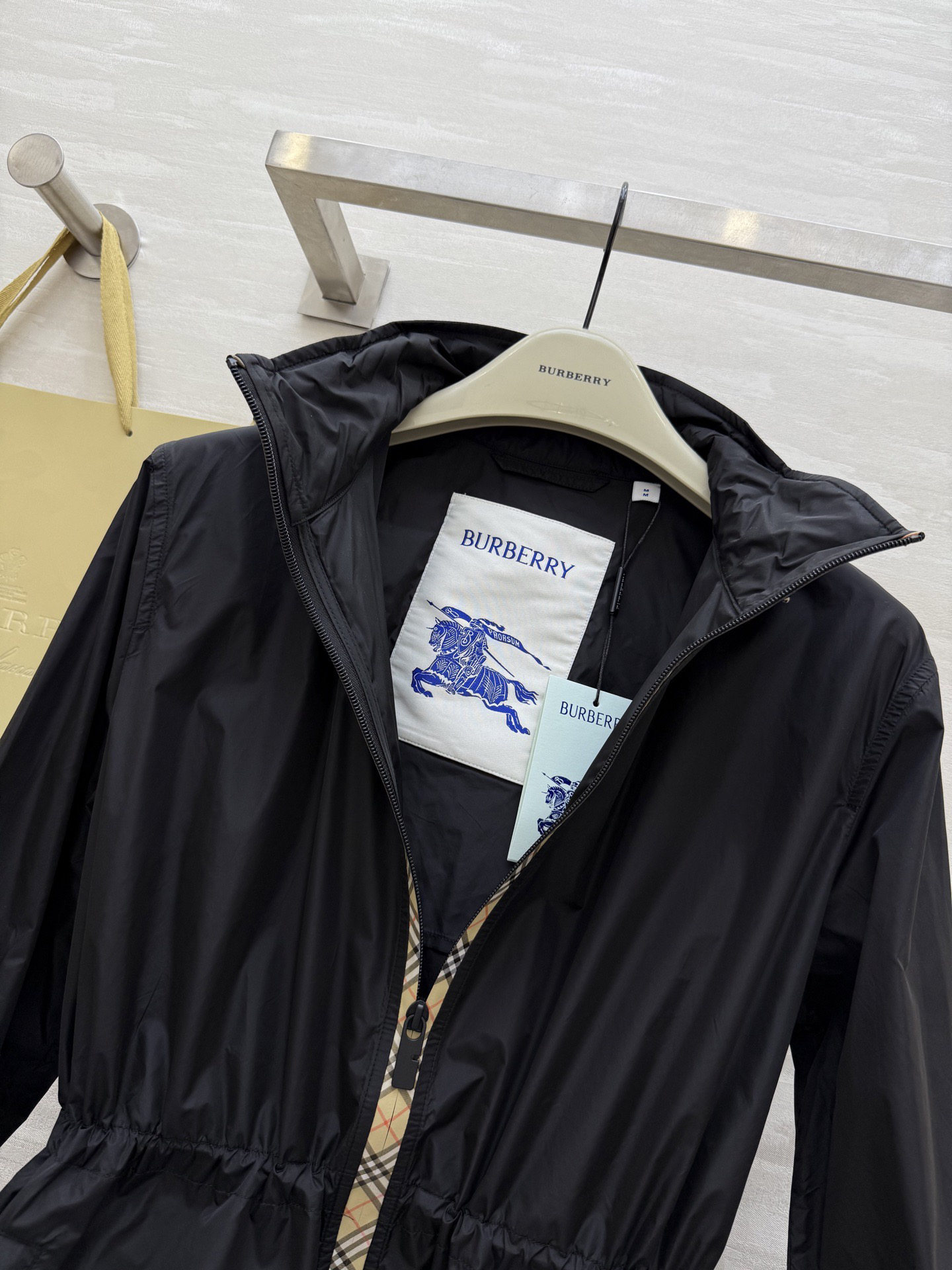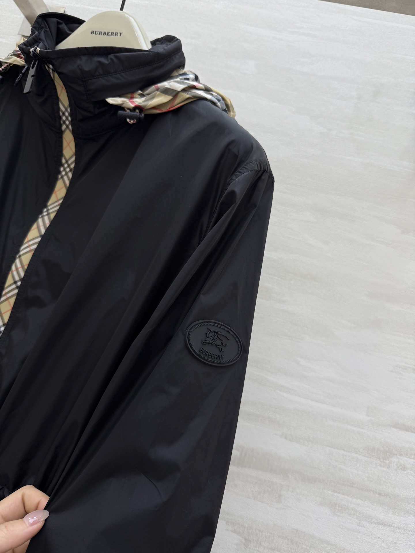 #市面最高版本 、不接急单。 BURBERR♡新款 轻薄抽绳中长款外套 格纹细节控看这里!轻薄外套巧搭经典格纹饰边 独特设计瞬间点亮造型 层次丰富又不失时尚感 黑与米色双色任选 轻松适配多种场合 出街吸睛力MAX~每一件都好爱,快来冲~ 高品质定制 现货首发size:SMLXL(M码肩宽:45,胸围:108,衣长:69)p410