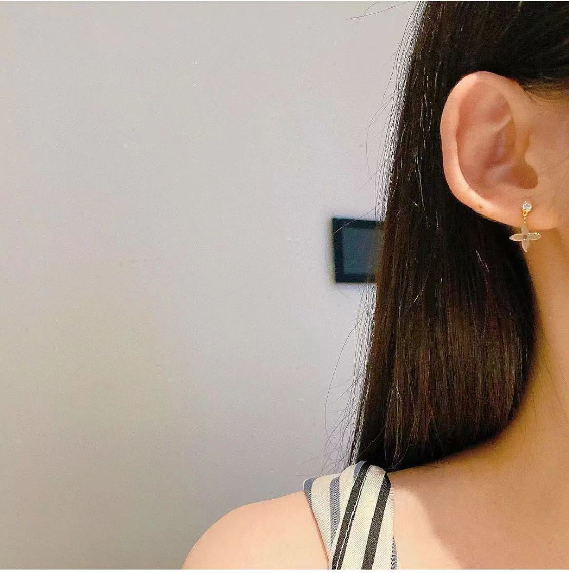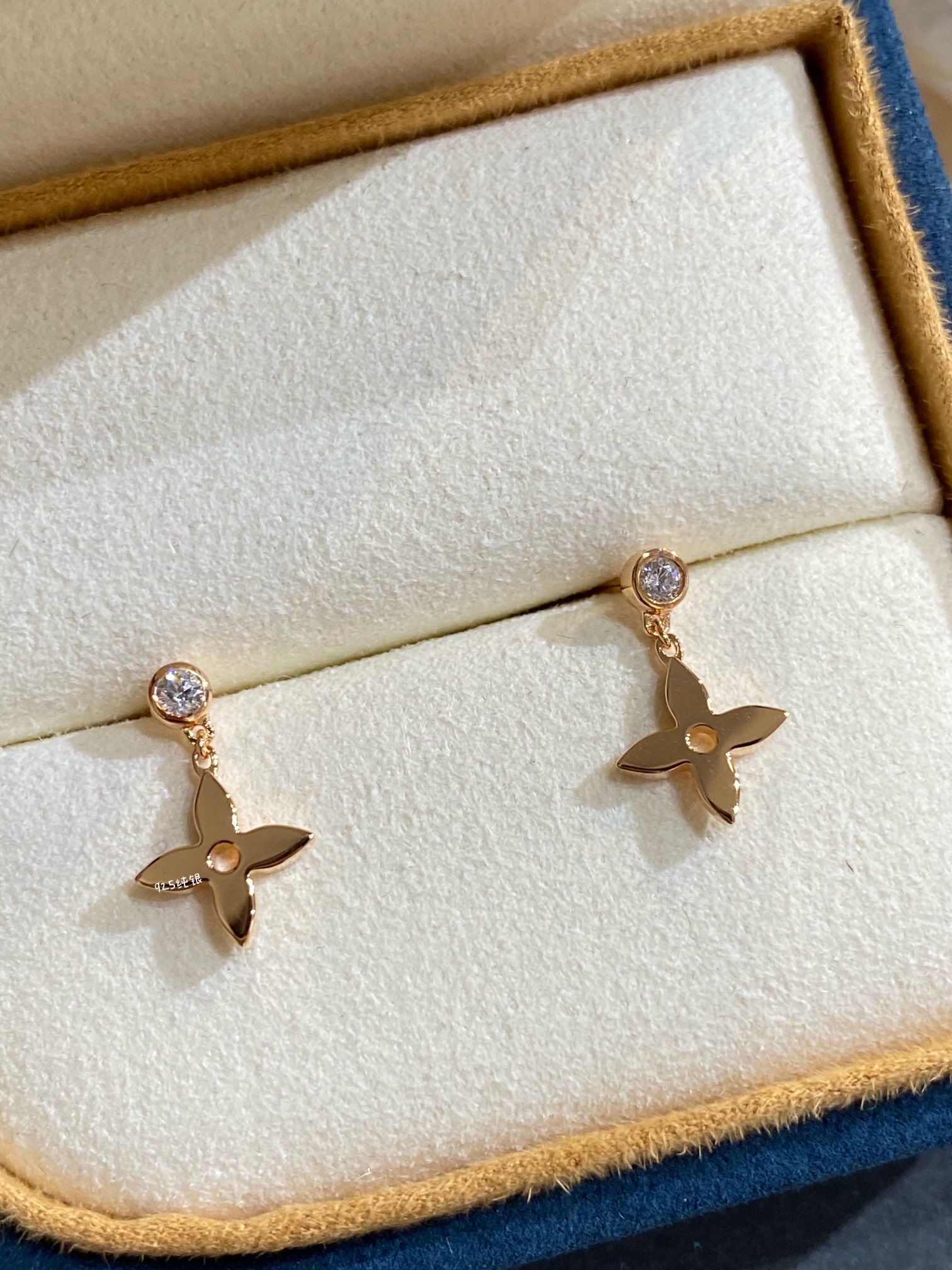 经典老花mini耳环,妩媚、俏丽,Idylle Blossom系列Monogram花卉,充满生命力。整系列都是非常立体的花卉珠宝,必须使用cnc精雕来完成,除了工艺,花卉的形状也是非常重要的,修身的花型和钻石呼应,耳畔熠熠生辉,上身和专柜O差别