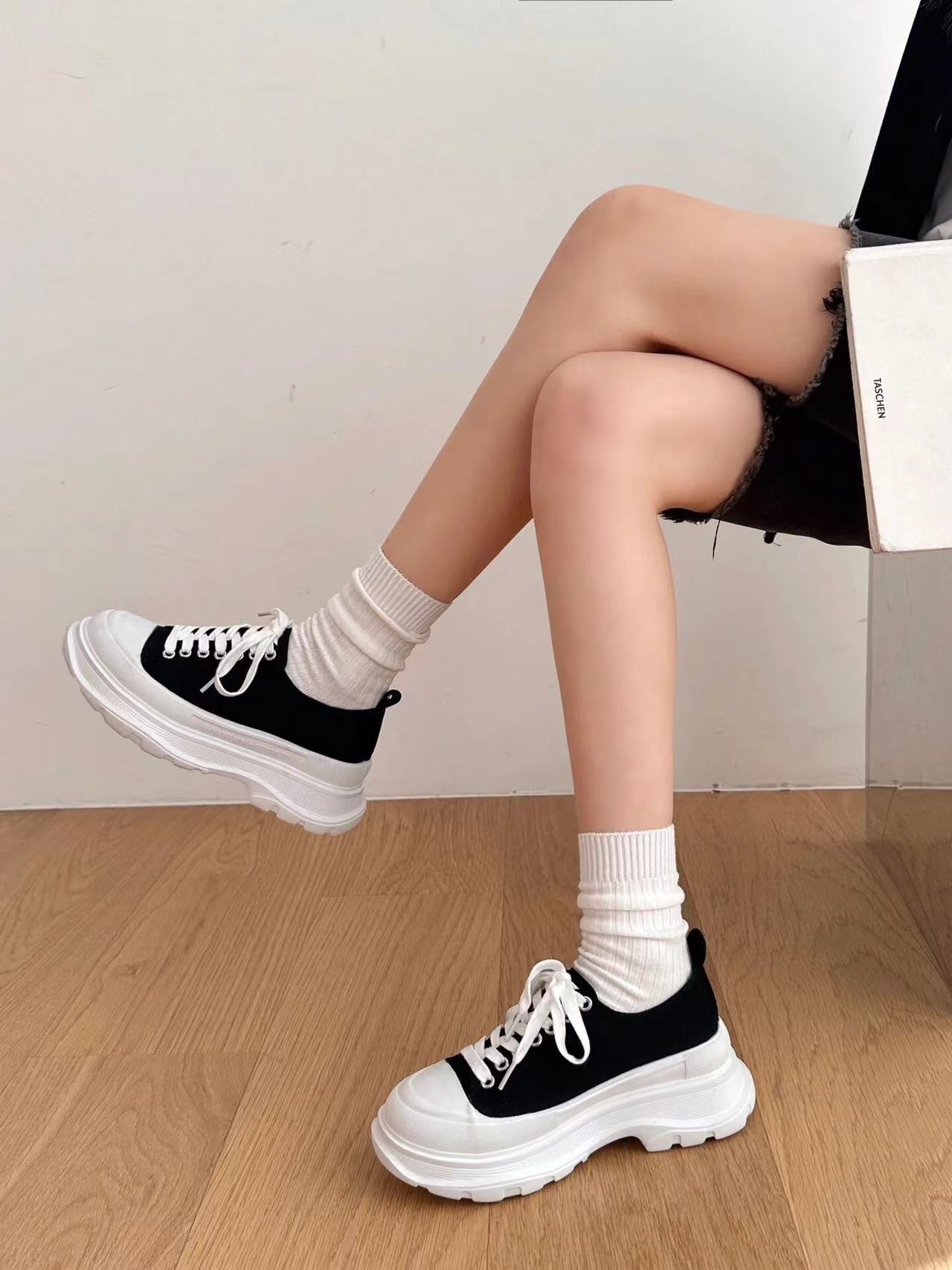 Alexander Mcqueen 麦昆•经典百搭款布鞋 特定防污.防褶皱软牛皮 混种羊皮里 独家开模 TPU+PU防耐黄,双层底.. 回弹度极佳!两层底的软硬度不同的,上脚舒服度极高,跑步🏃✈户外运动首选单品 潮流与时尚并存, Size:女码35—39 男码40—44