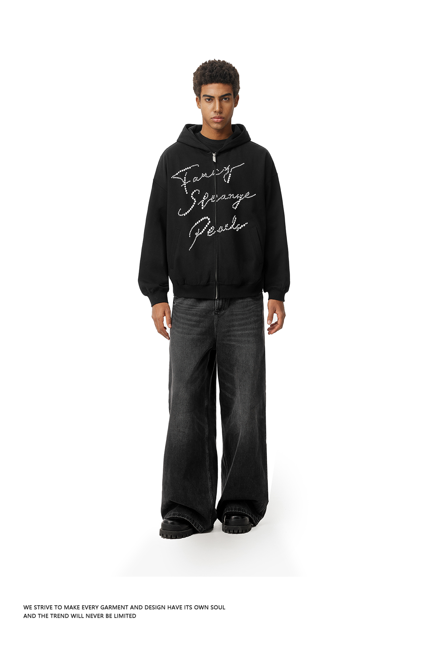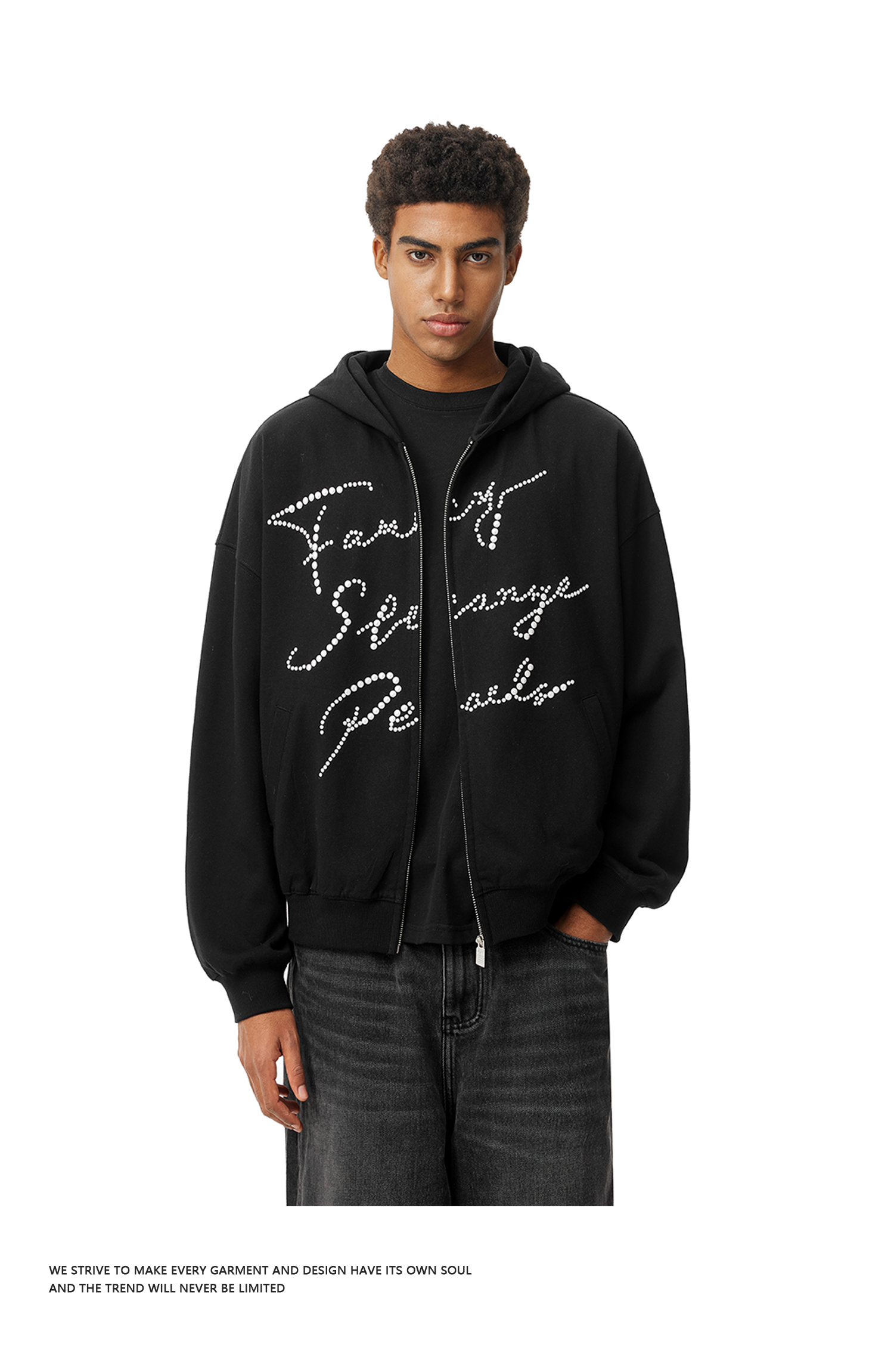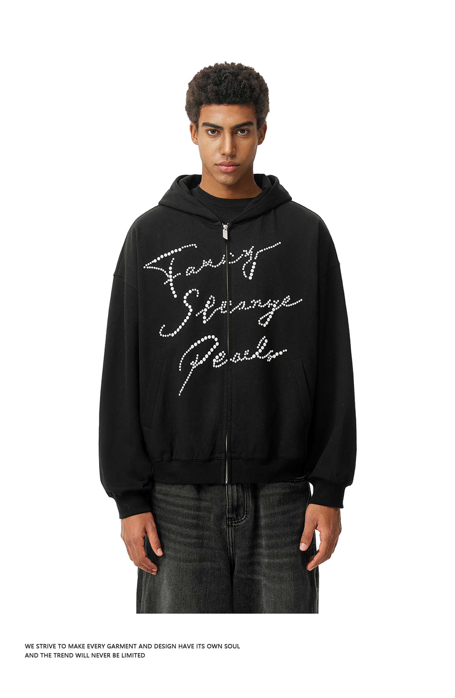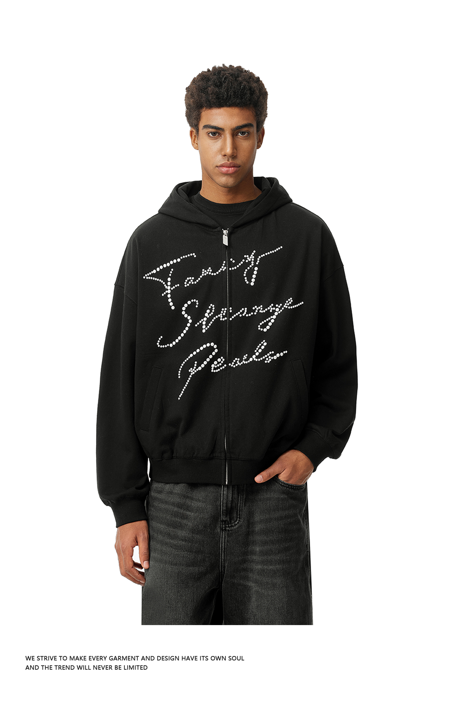 FDR官方店 美式复古烫珍珠卫衣外套男女秋冬宽松百搭情侣开衫上衣