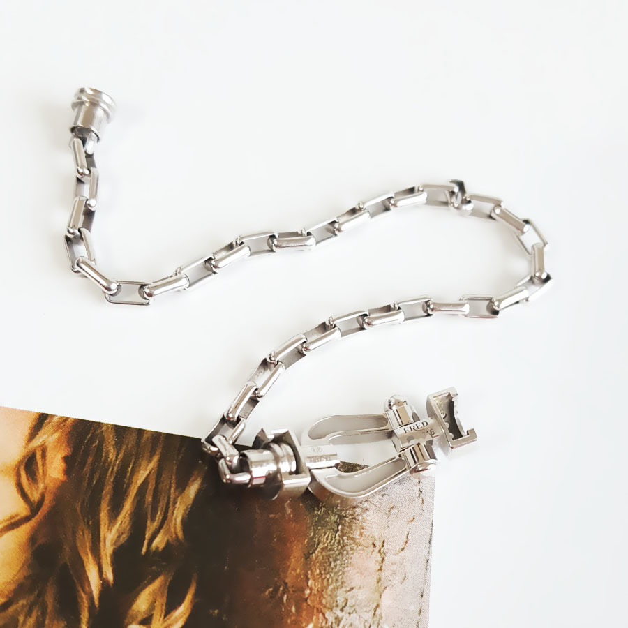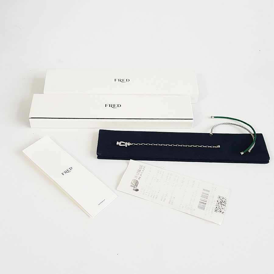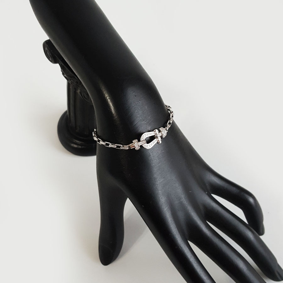 【95新】FRED斐登Force 10系列0B0077 18K白金满钻中号Force 10马蹄扣手链中性款现售价:24500!020325TB10