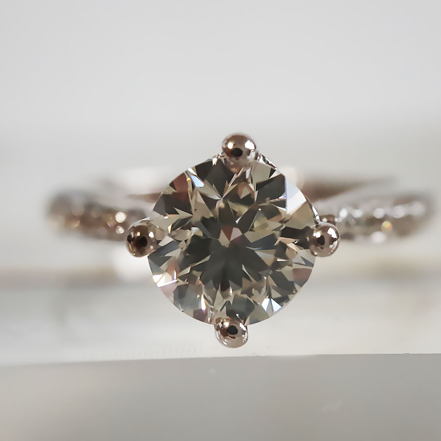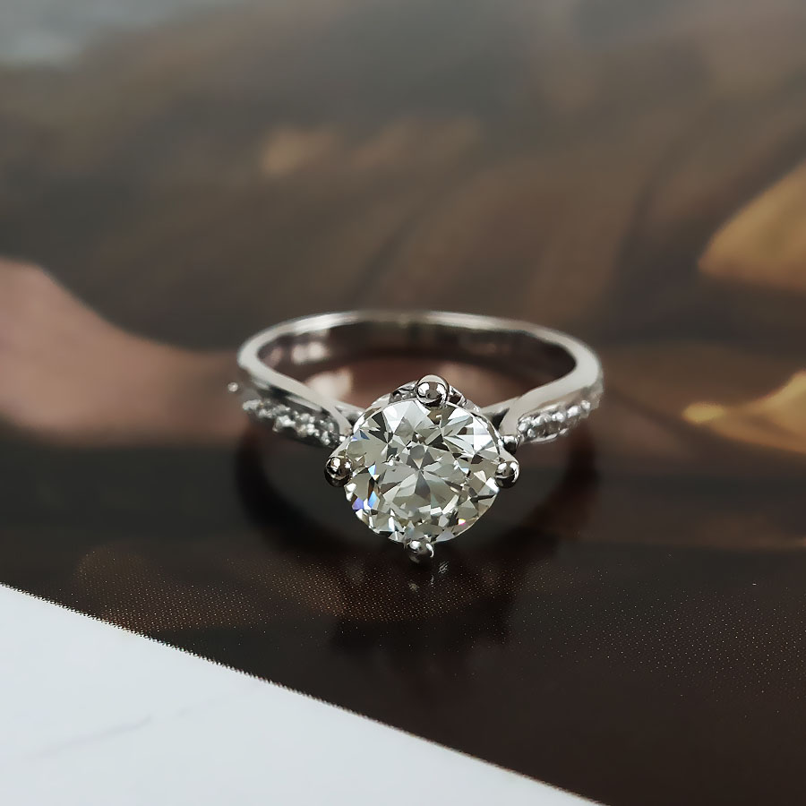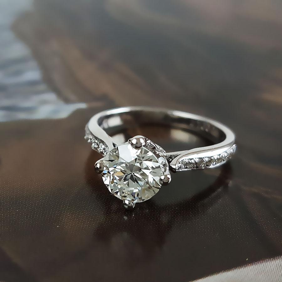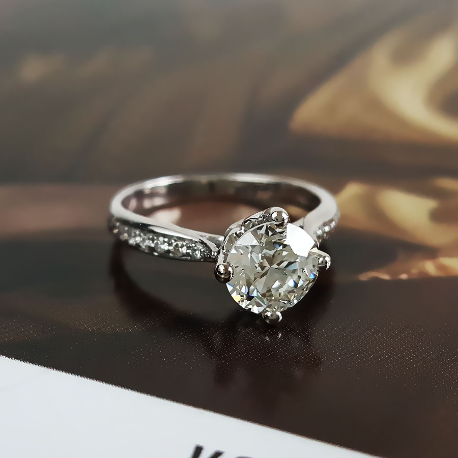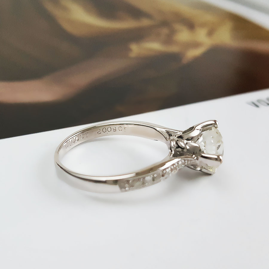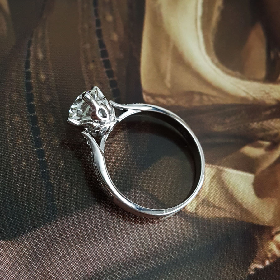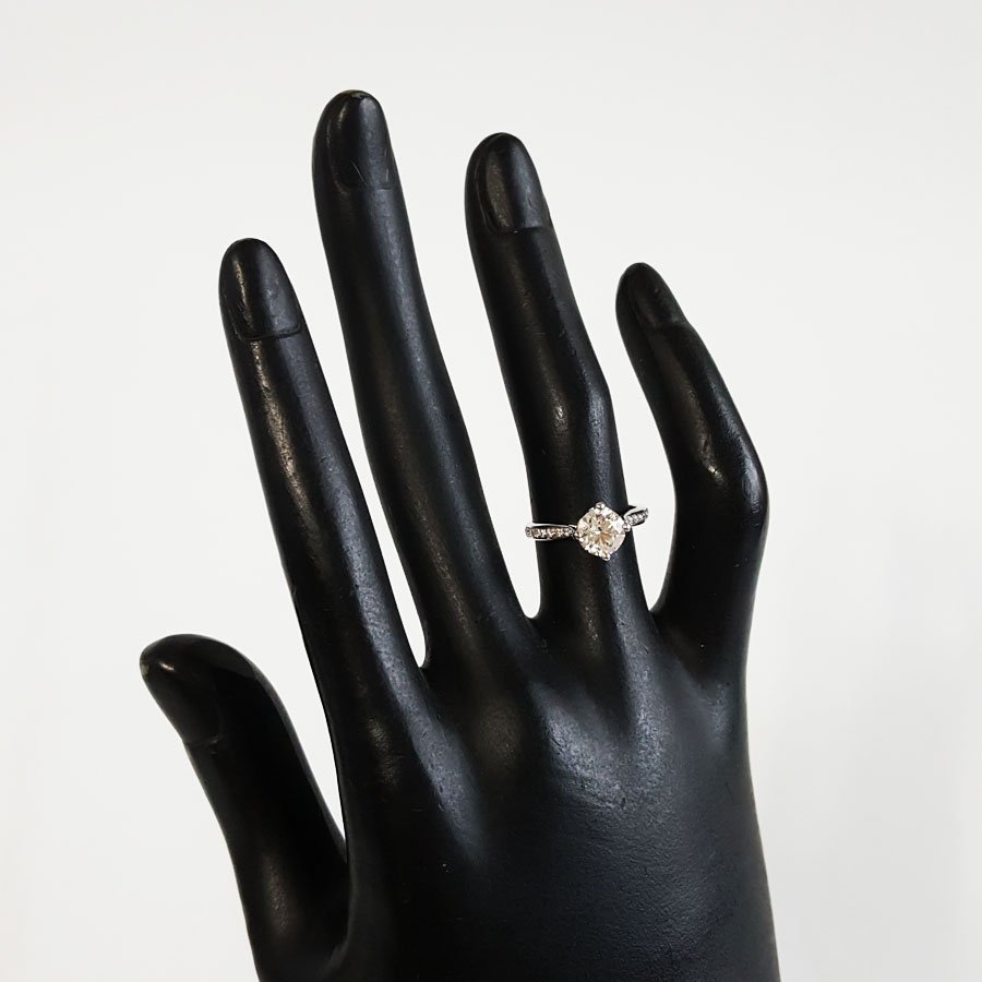 名称 | AU750白金简约时尚扭臂四爪款1.0克拉钻石戒指 |