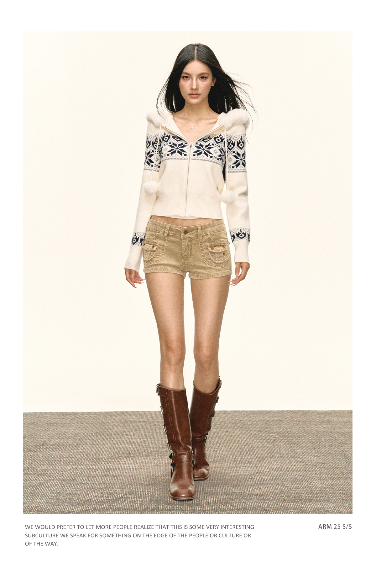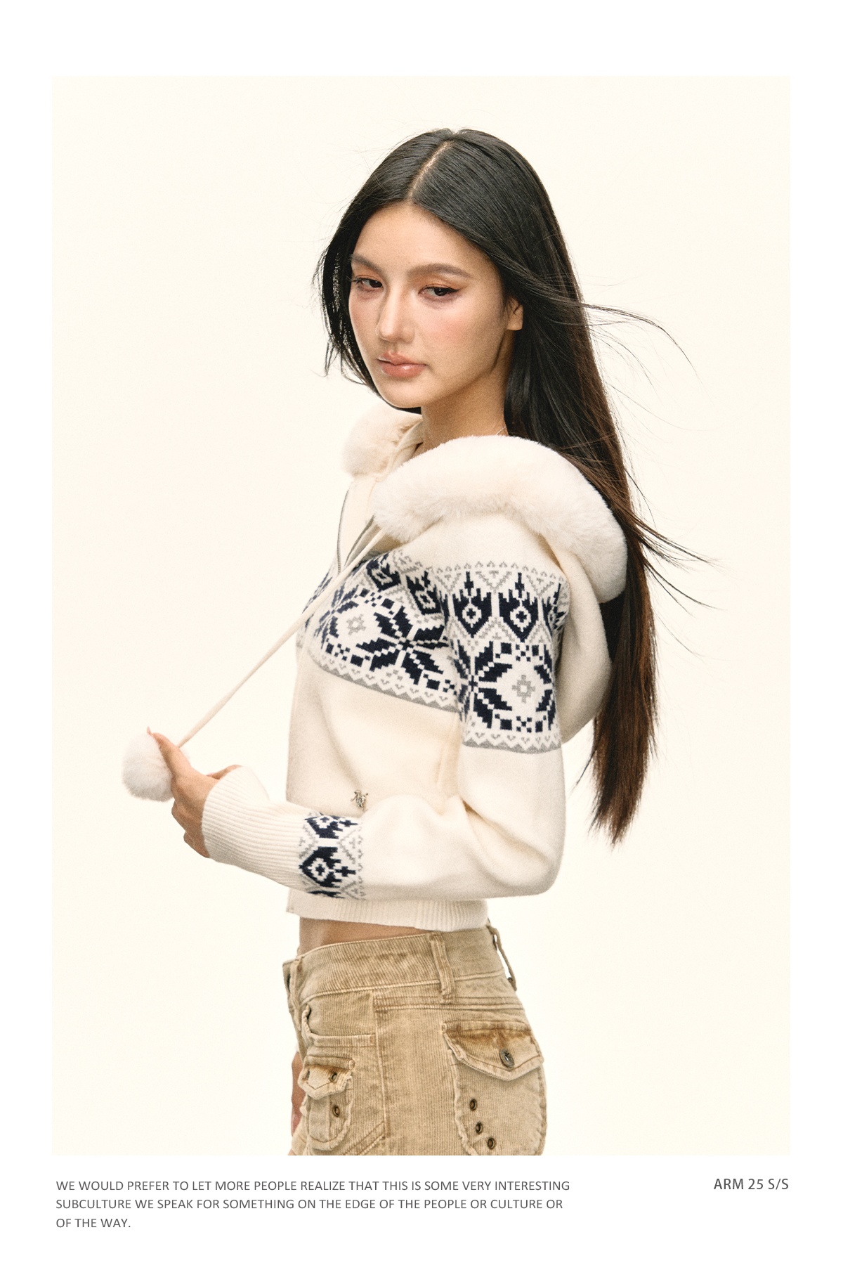 Ariseism 美式复古可脱卸毛领拉链开衫毛衣女春秋新款上衣