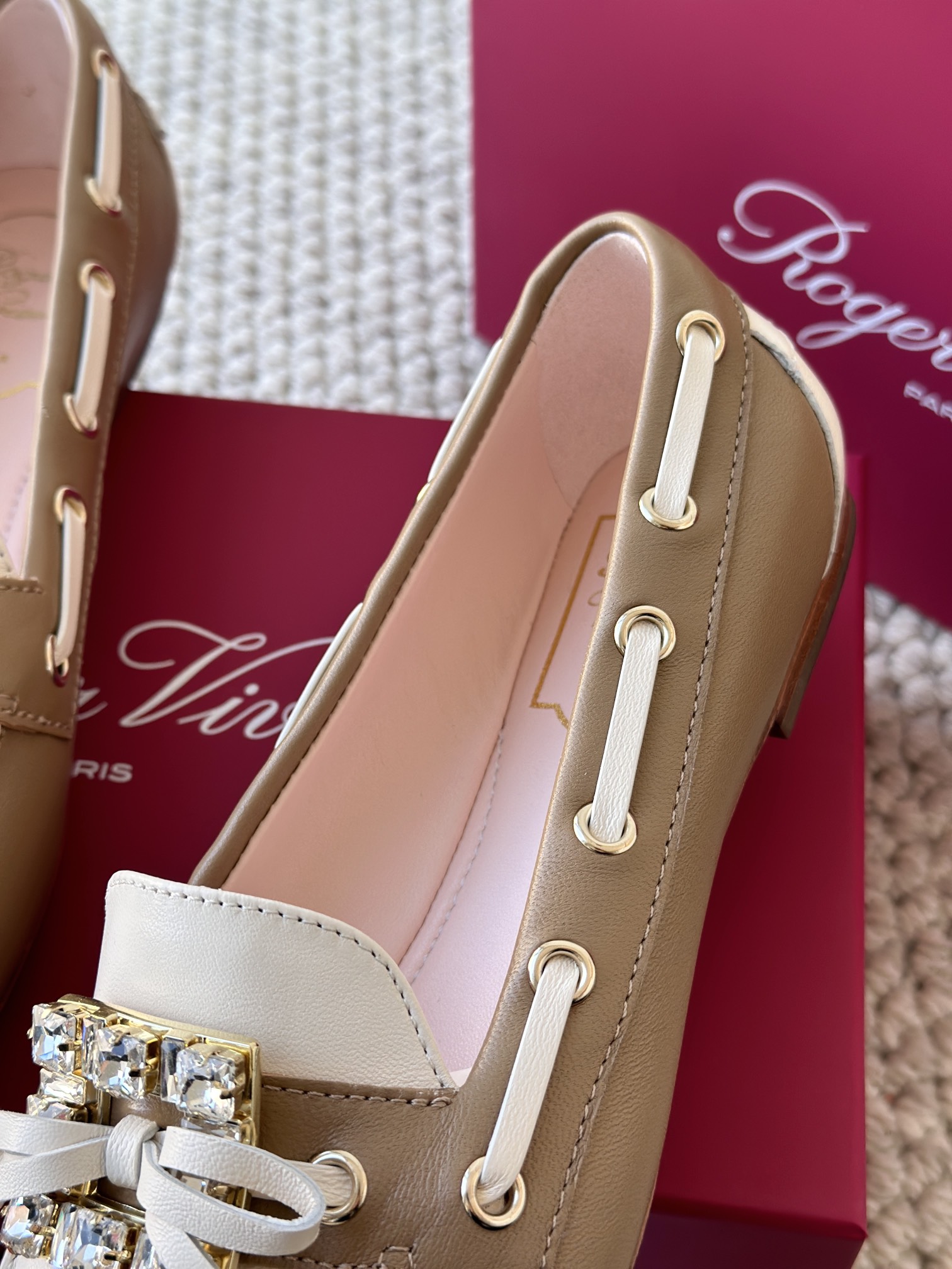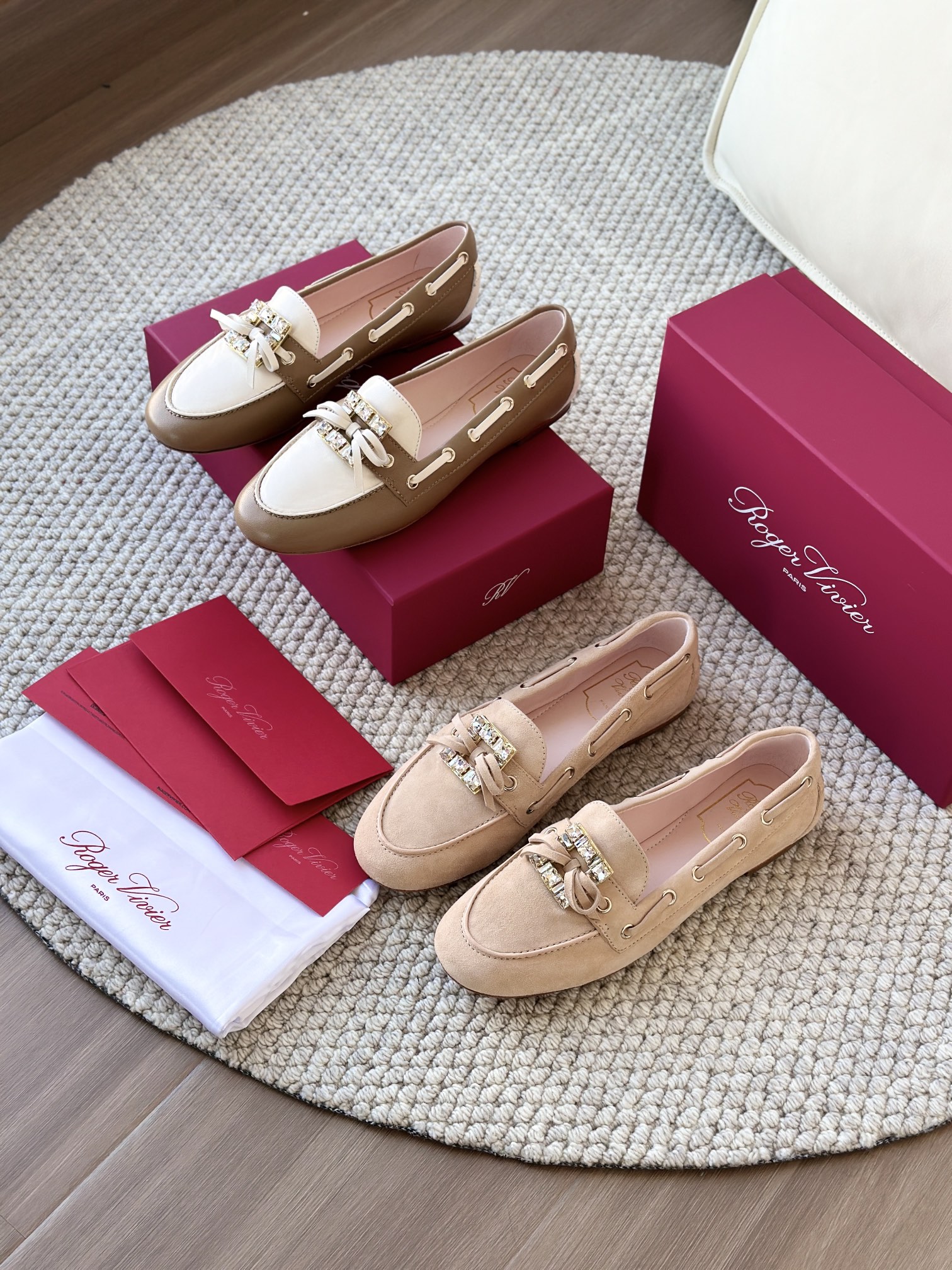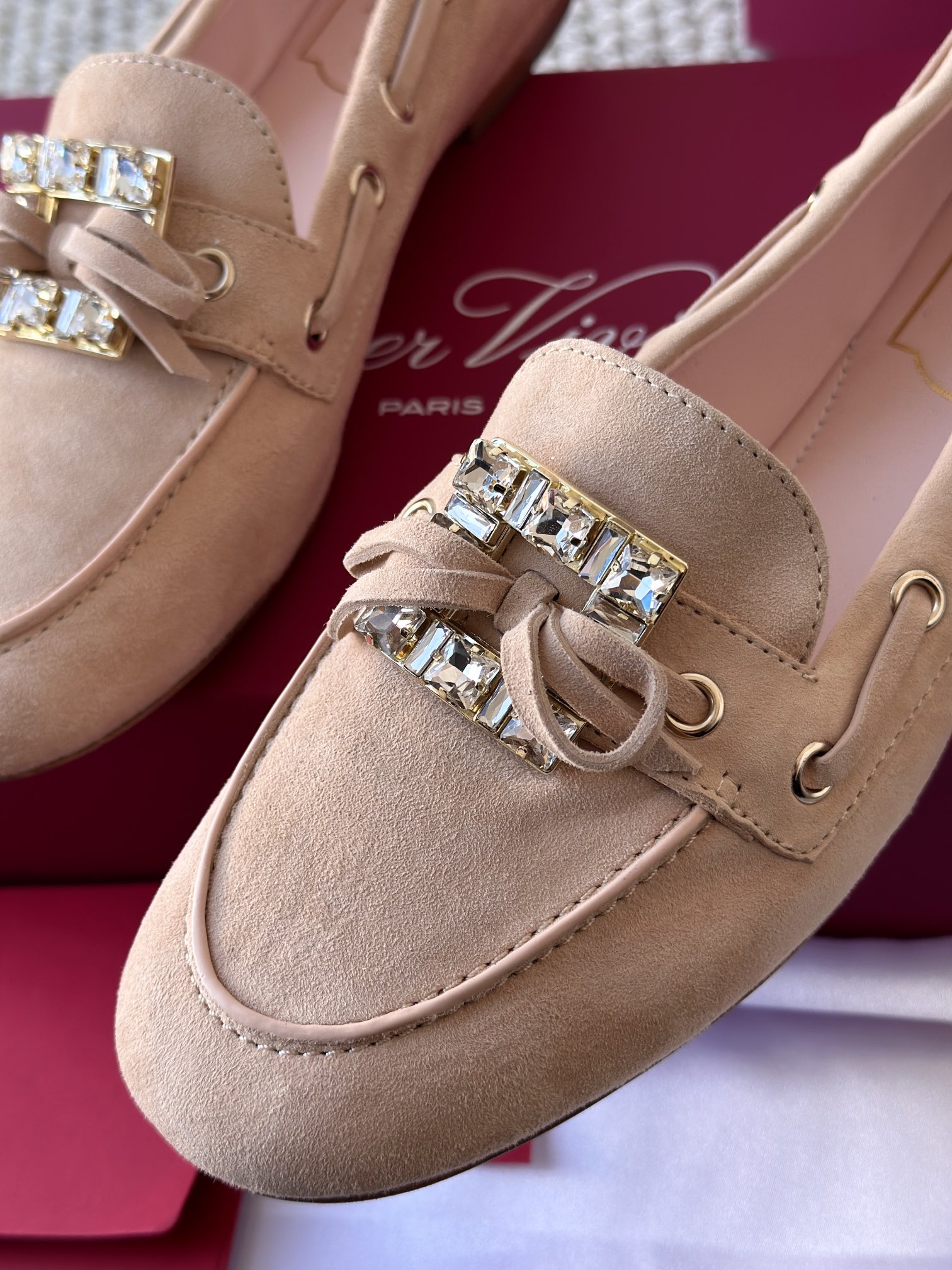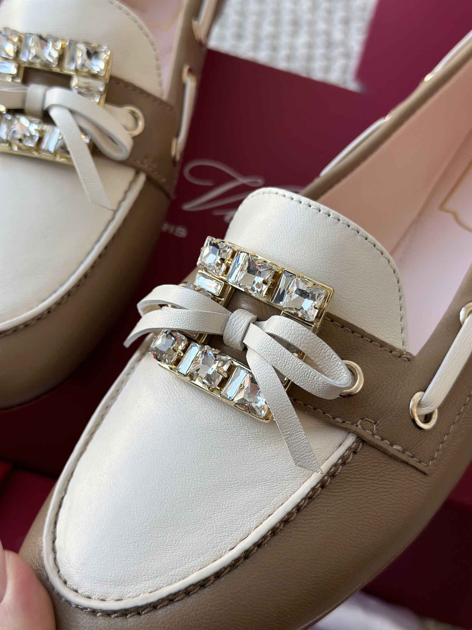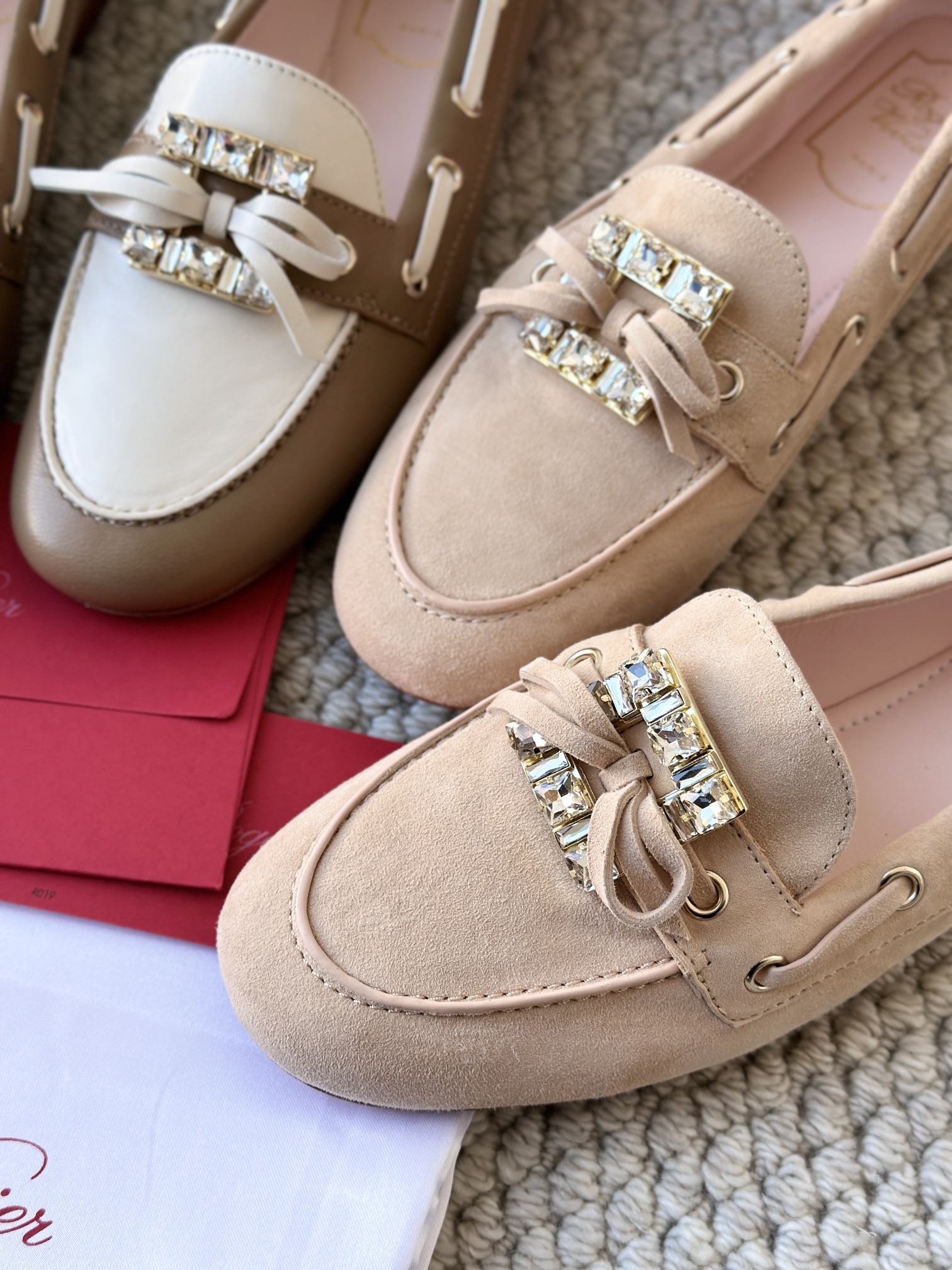 res Vivier 系列重新诠释经典乐福的魅力,手工制作,点缀mini水晶饰扣,闪耀动人搭配编制蝴蝶结,灵动可爱又不失优雅的气质